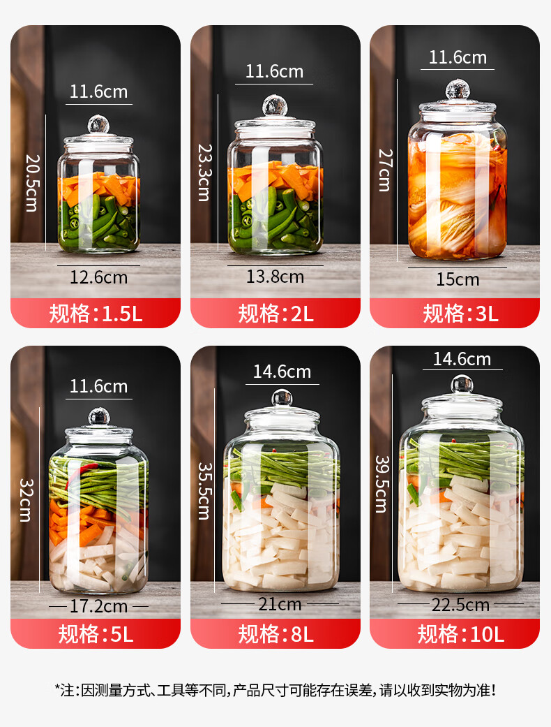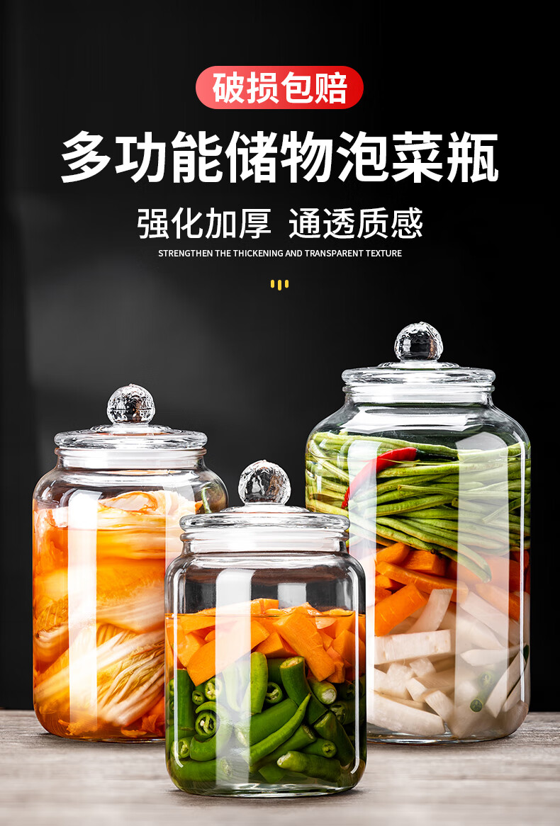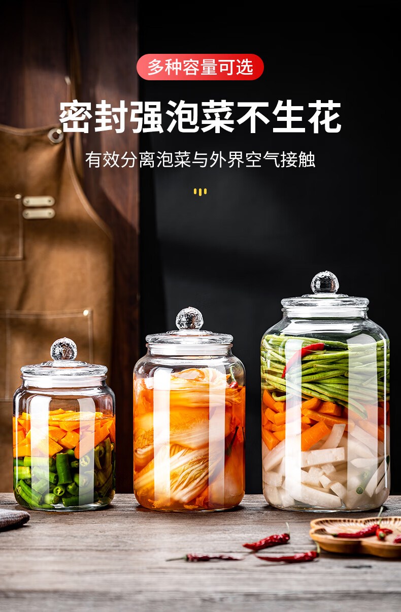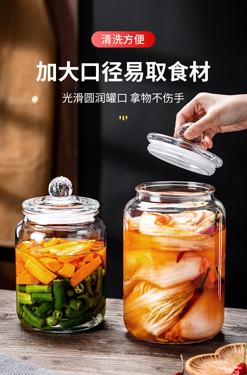 Han Chang quality pickle jar pickle jar household glass sealed jar pickle jar sauerkraut pickle storage jar upgraded thickened fresh lock 3 catties 1.5L