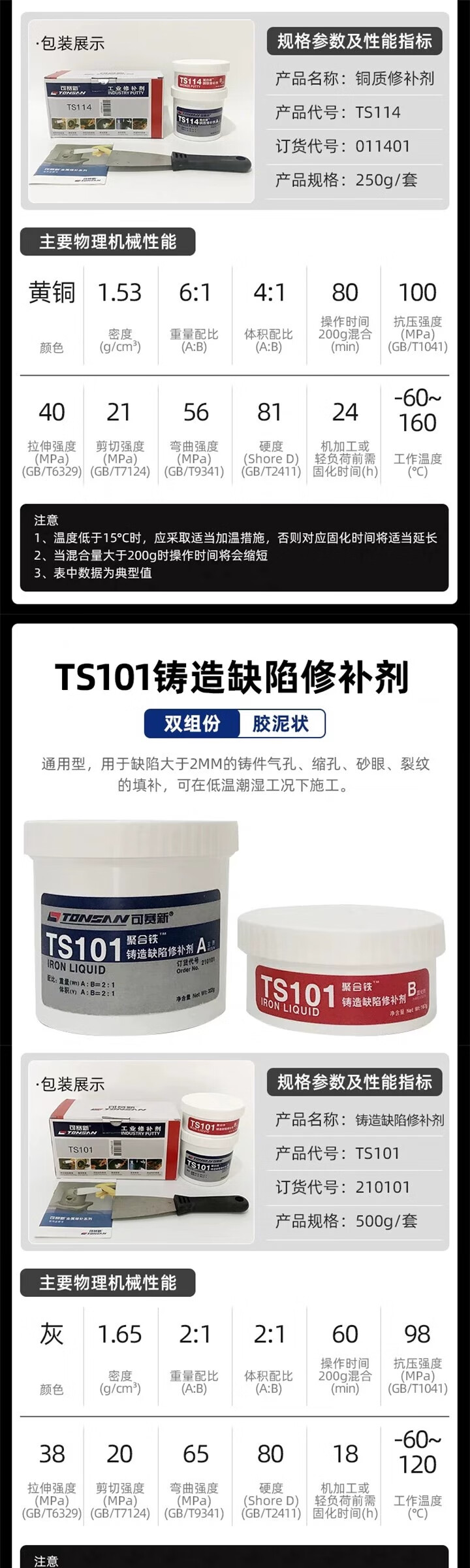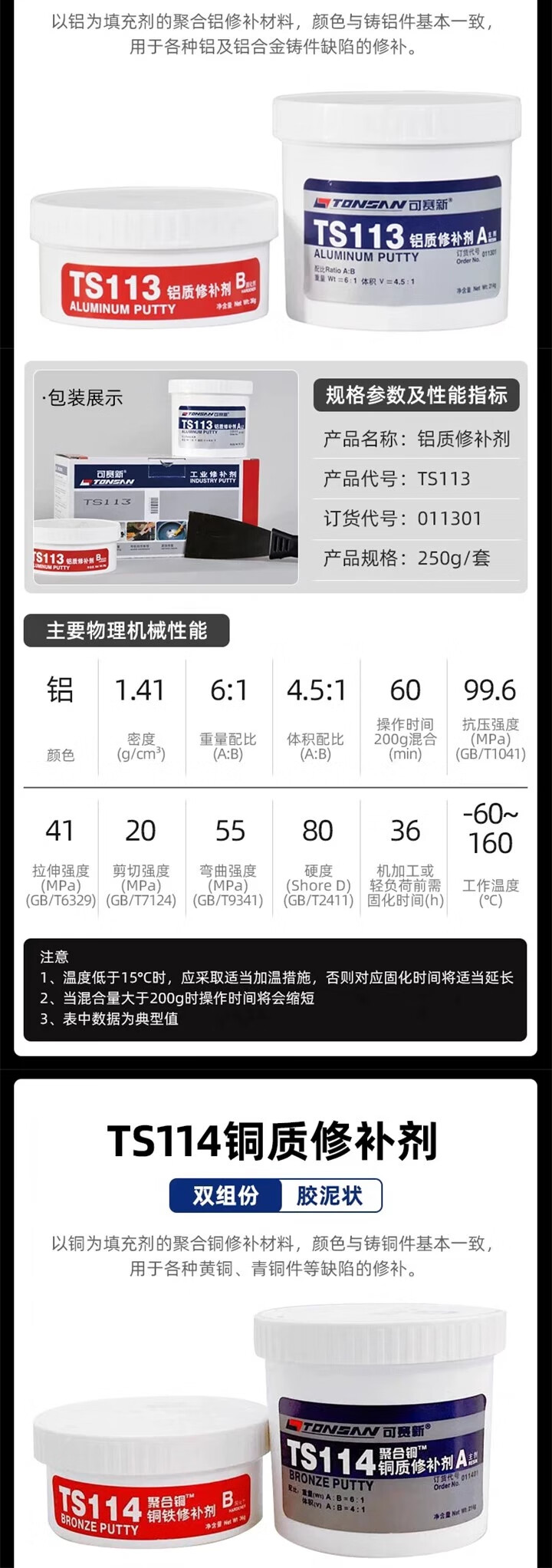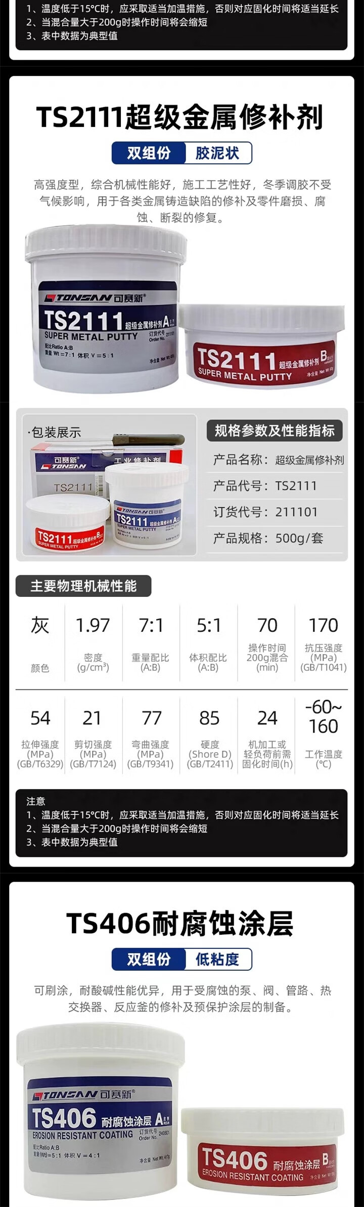Kesaixin aluminum industrial casting 416 high temperature resistant 406 metal repair agent TS406_corrosion resistant coating 500g
