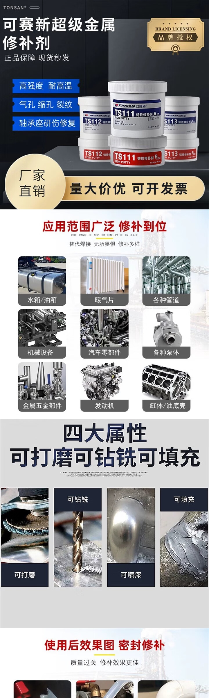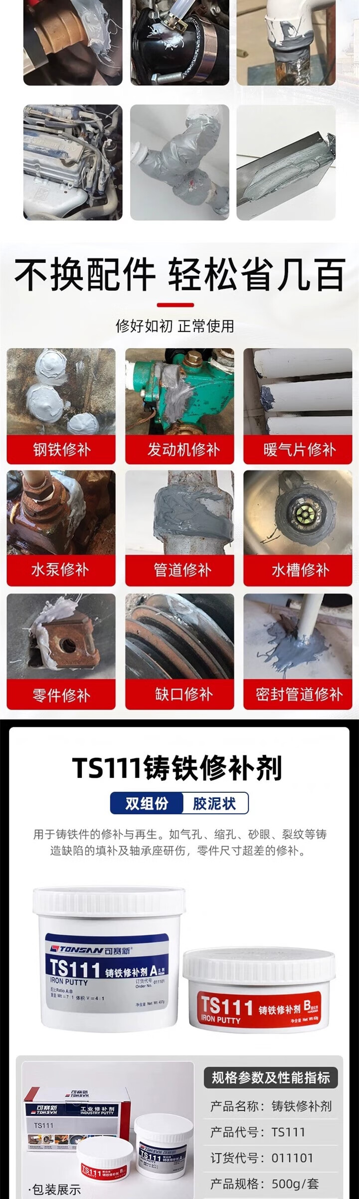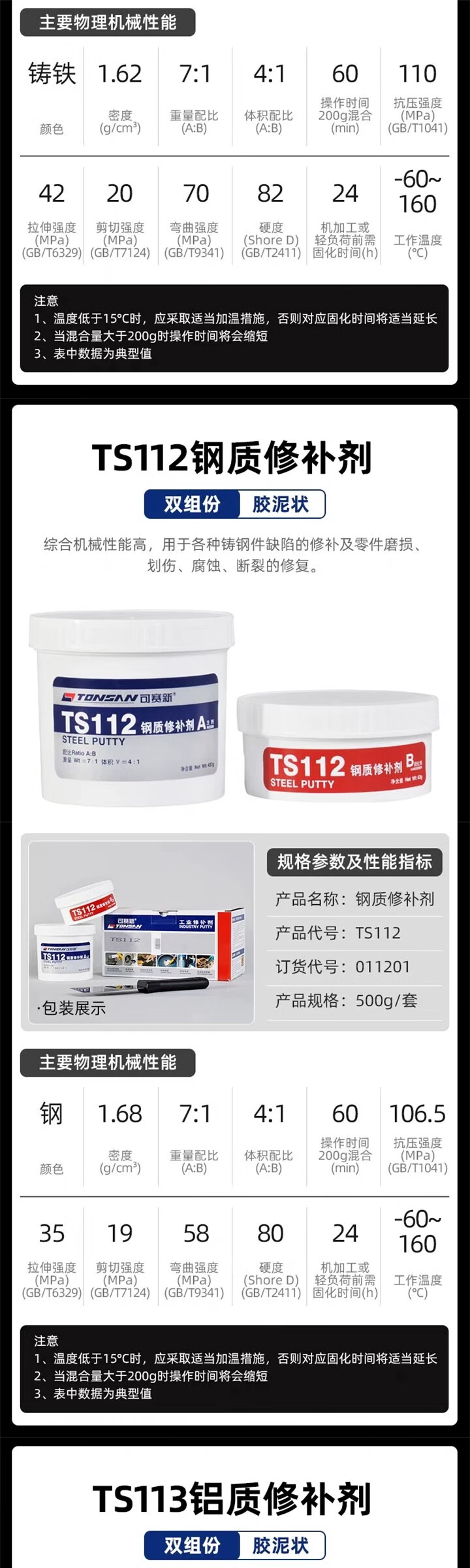 Kesaixin aluminum industrial casting 416 high temperature resistant 406 metal repair agent TS406_corrosion resistant coating 500g