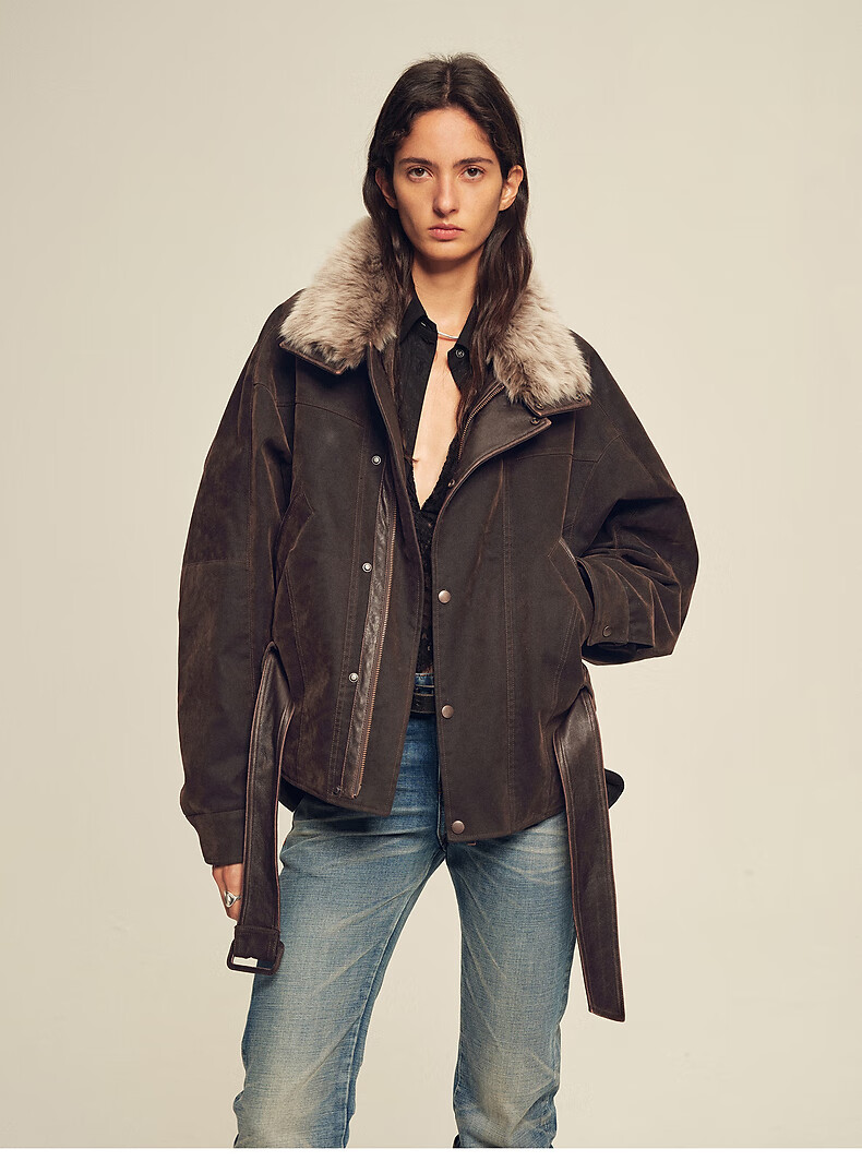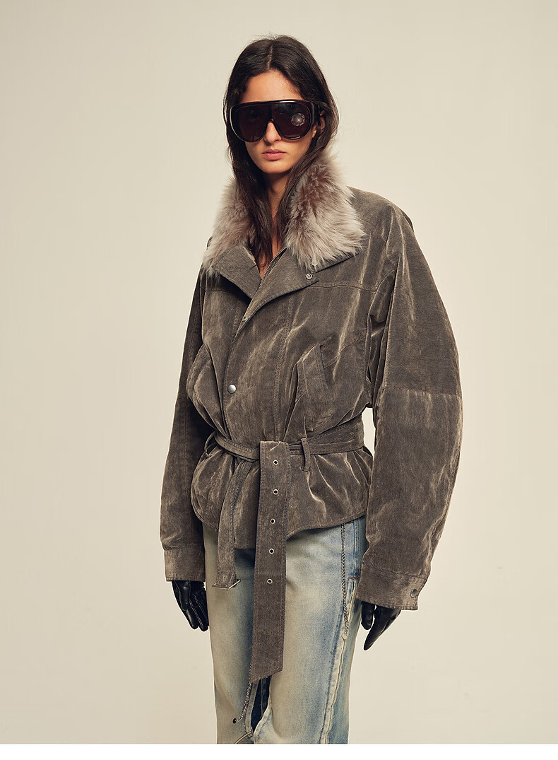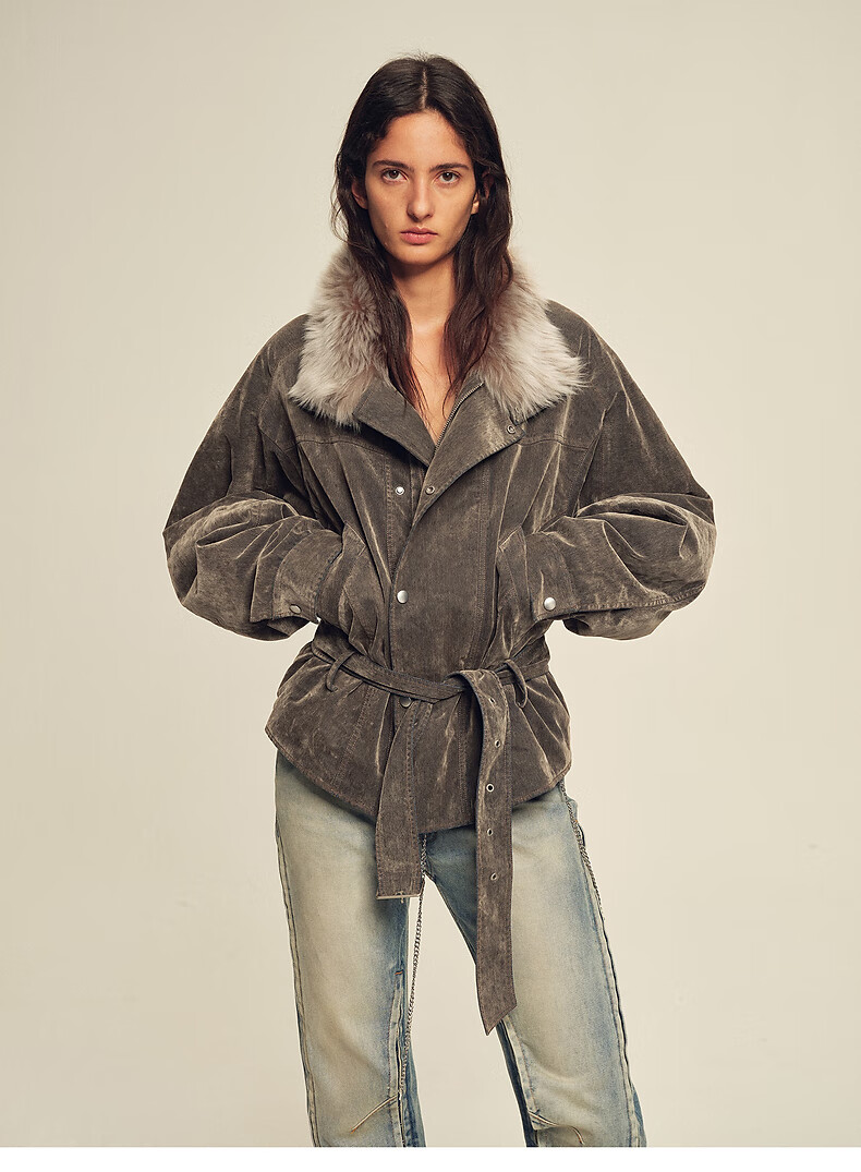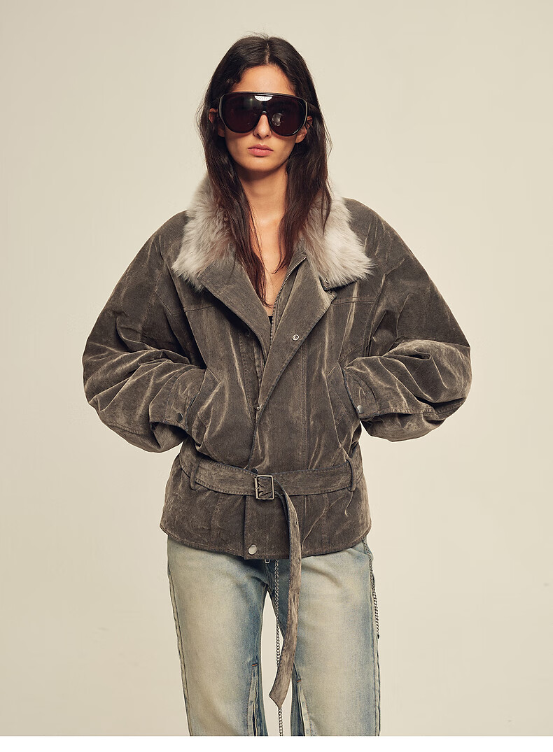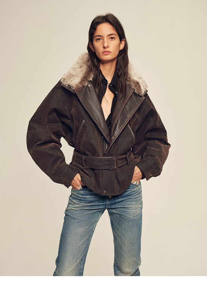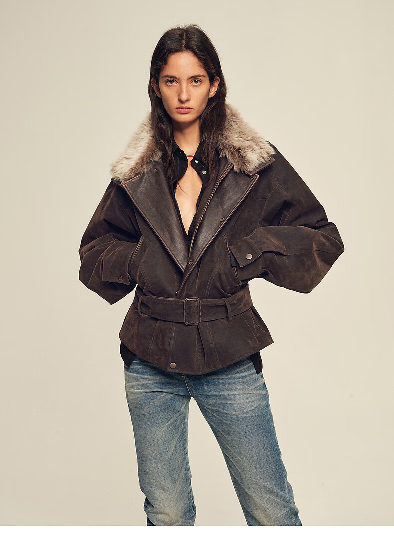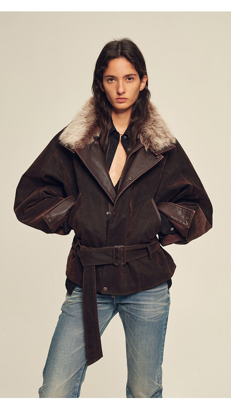 Fu Zhien CHIC PARKA modern traveler detachable toca fur collar fur goose down parka jacket dark coffee S