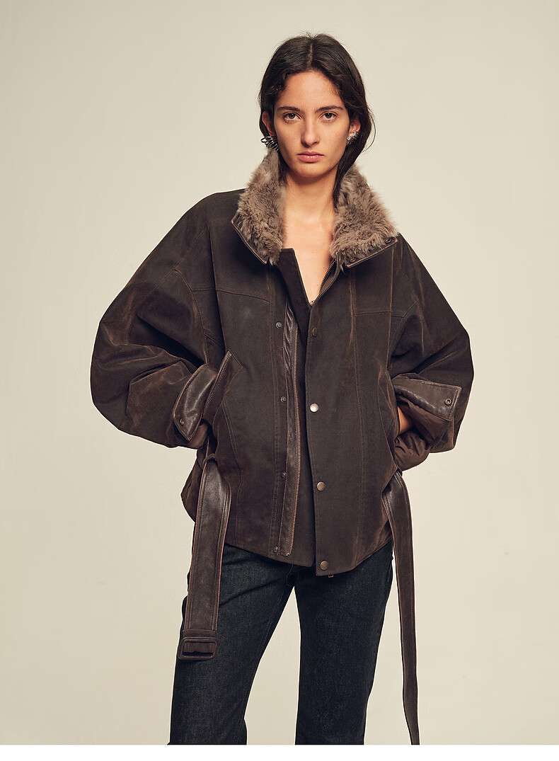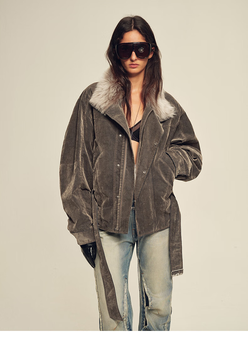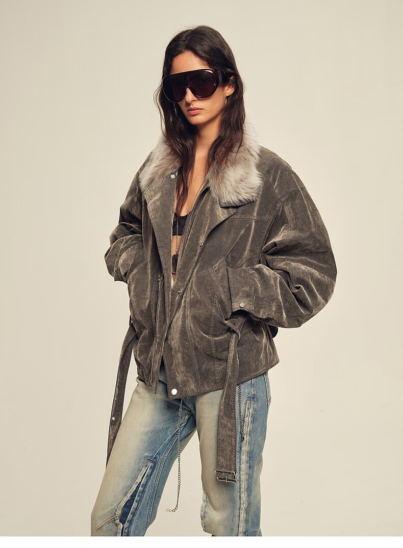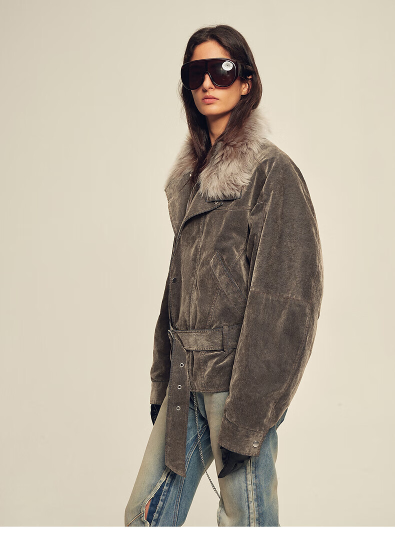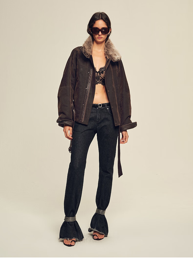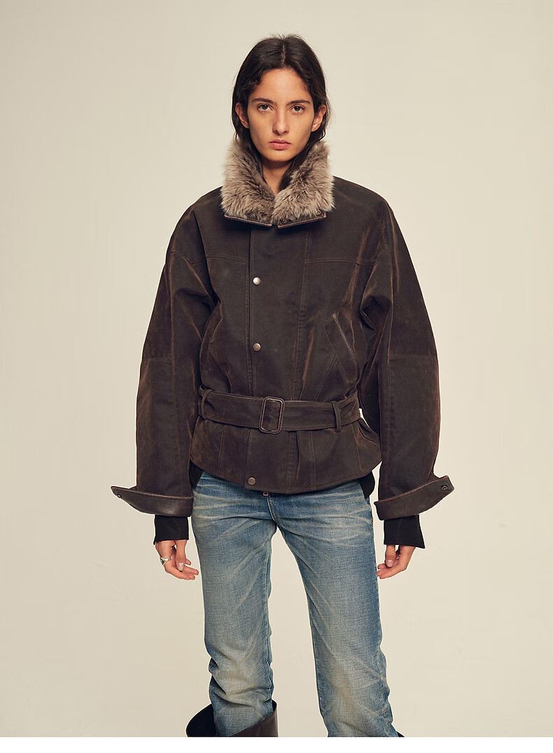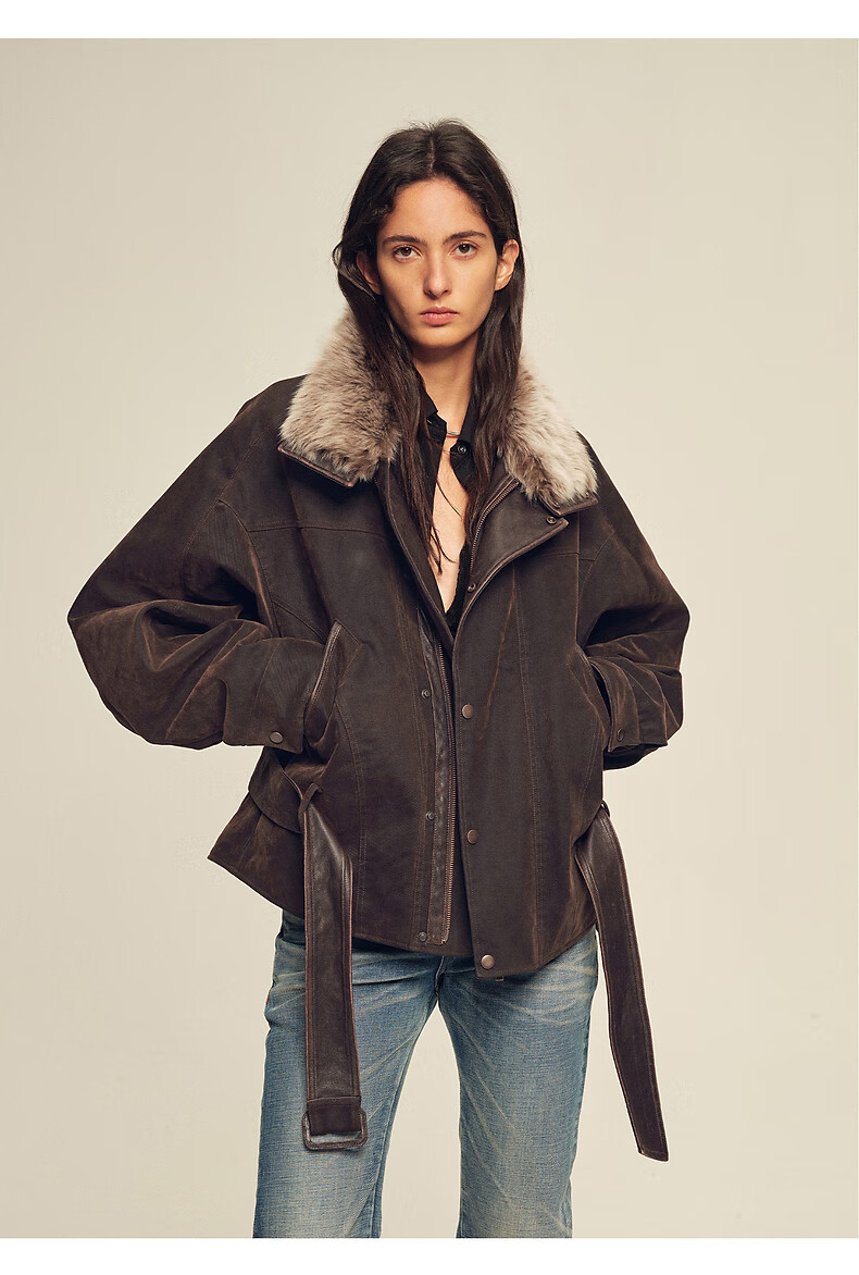 Fu Zhien CHIC PARKA modern traveler detachable toca fur collar fur goose down parka jacket dark coffee S