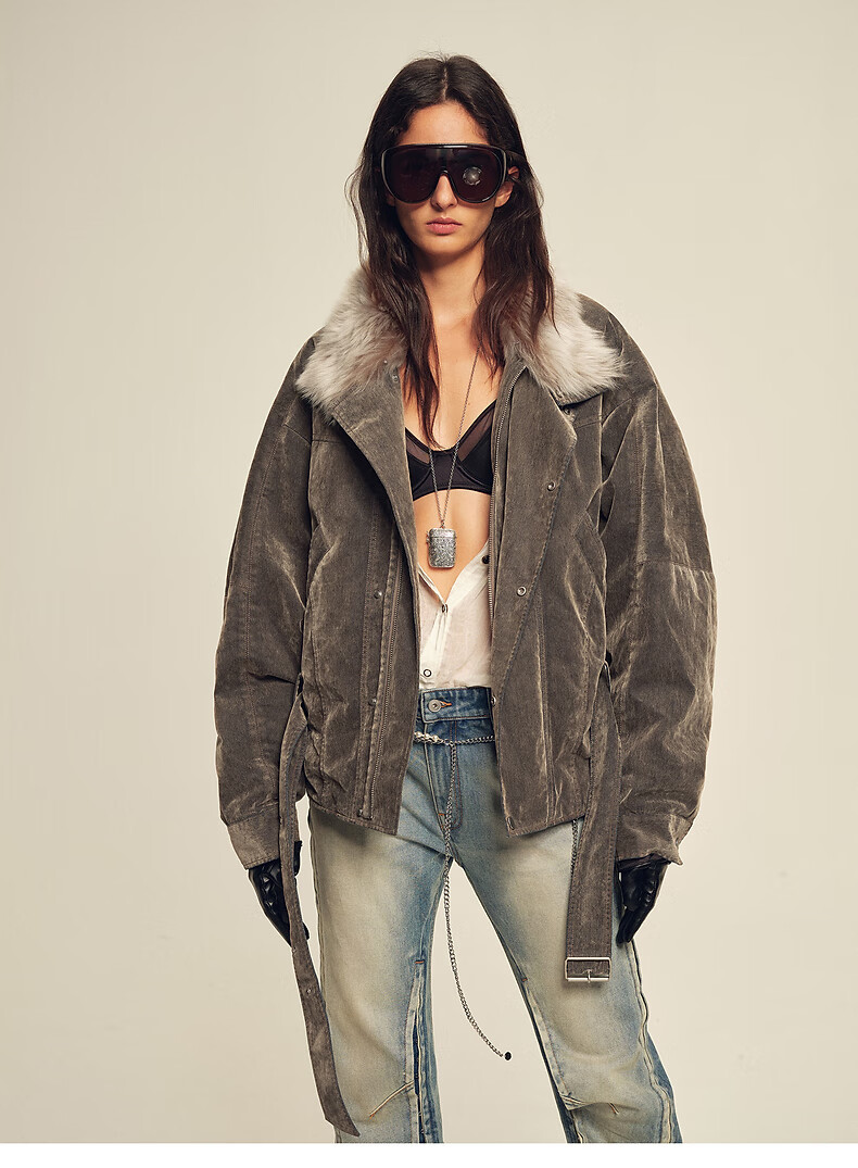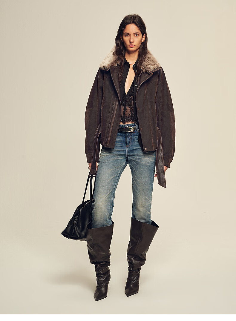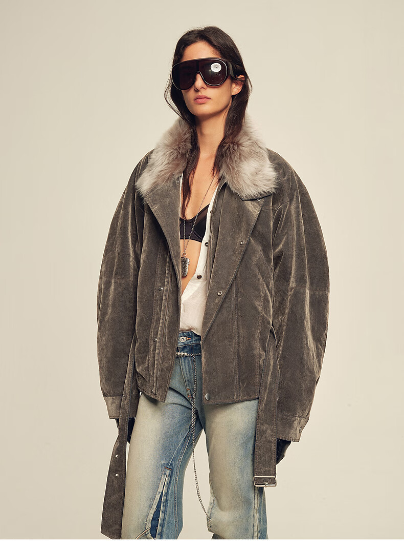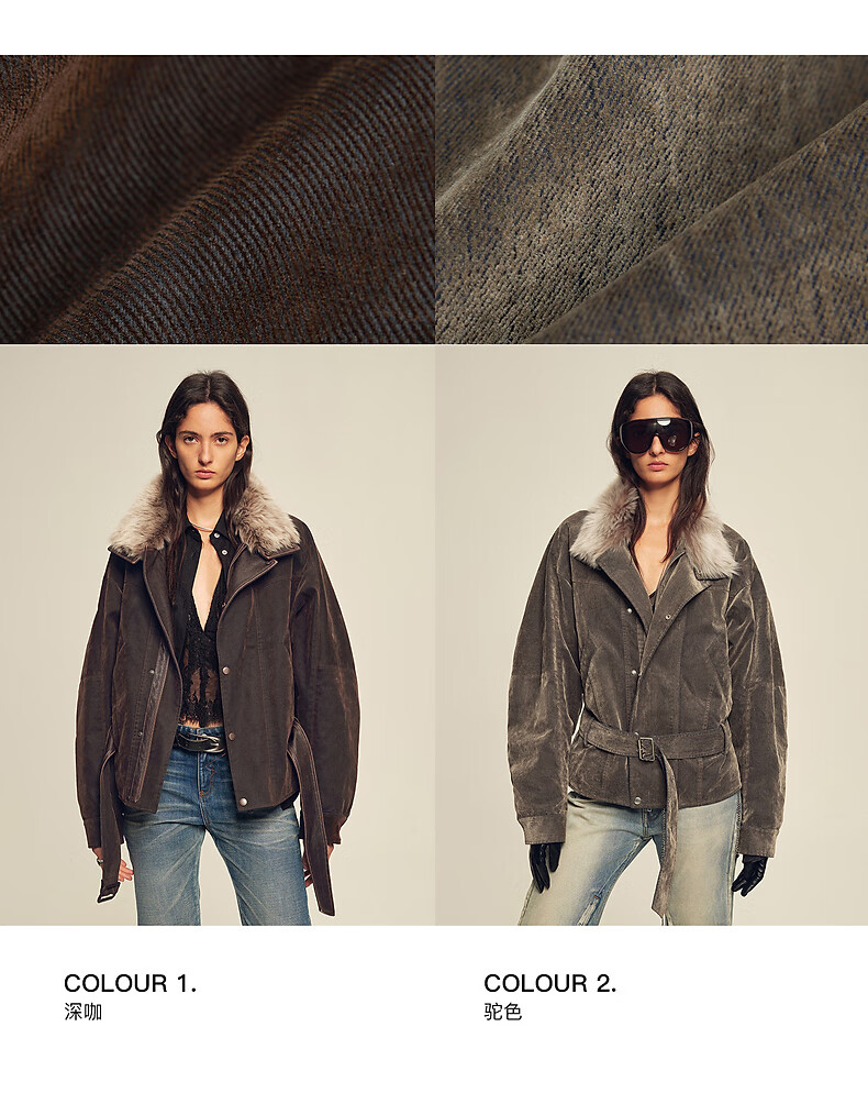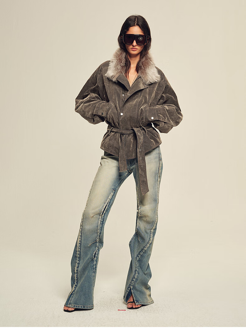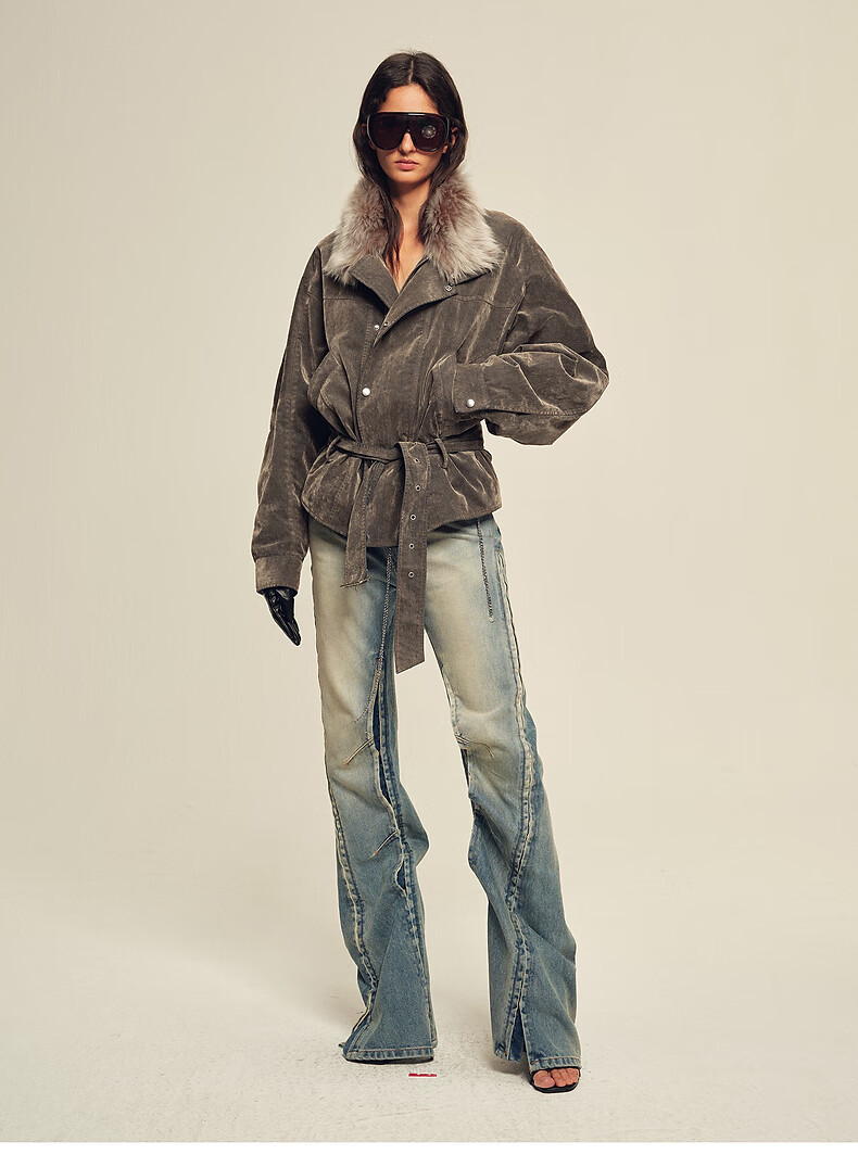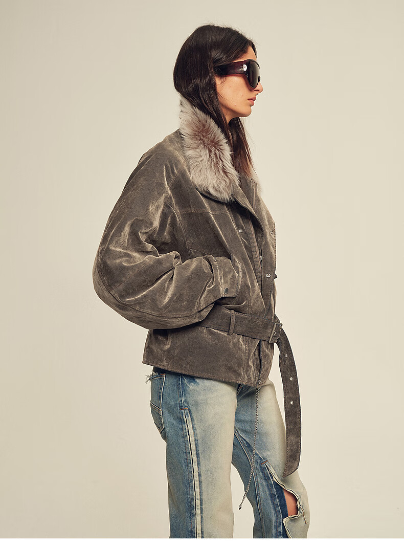 Fu Zhien CHIC PARKA modern traveler detachable toca fur collar fur goose down parka jacket dark coffee S