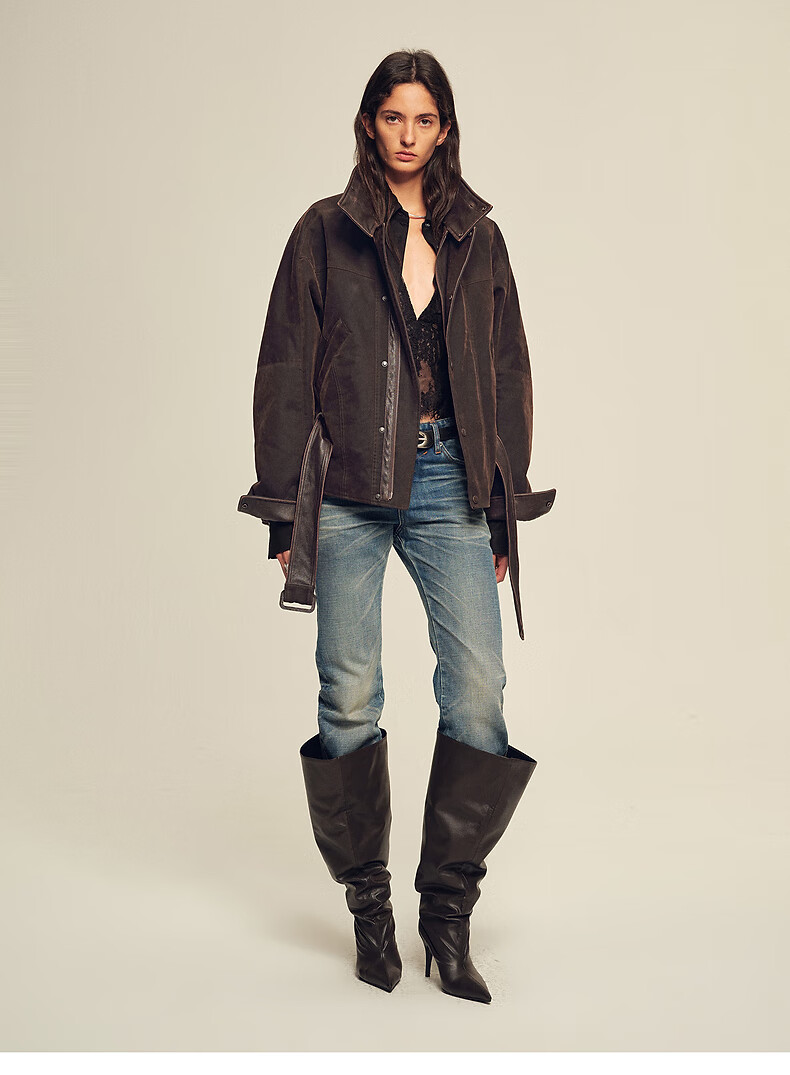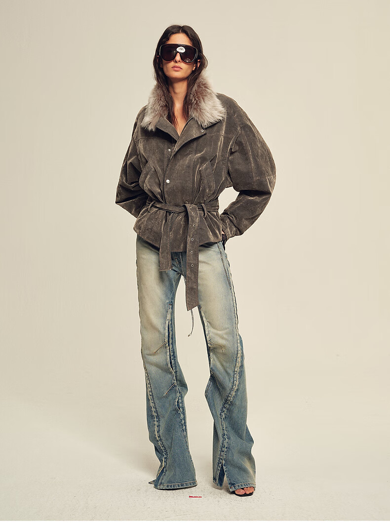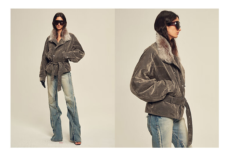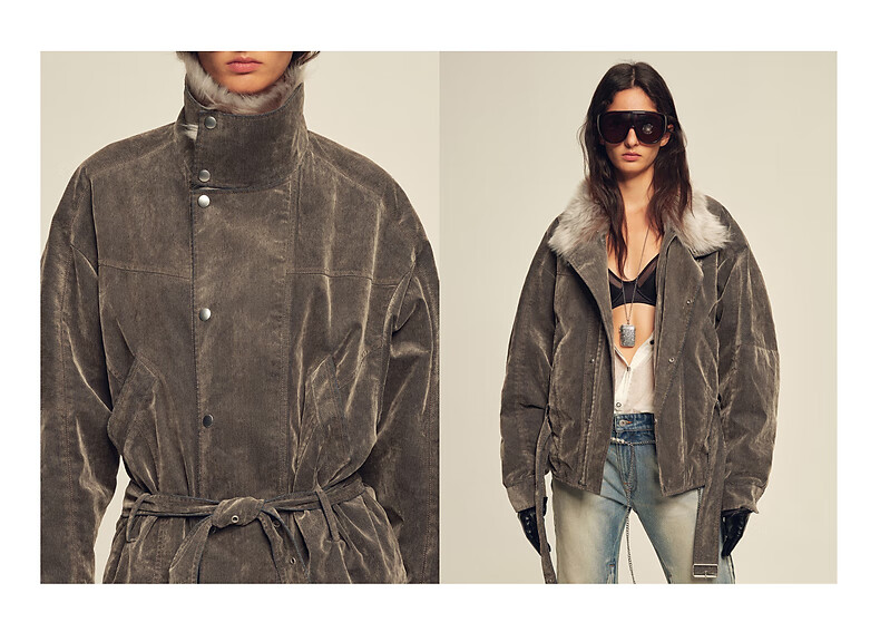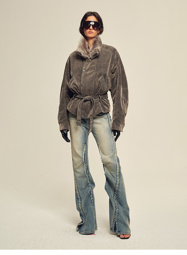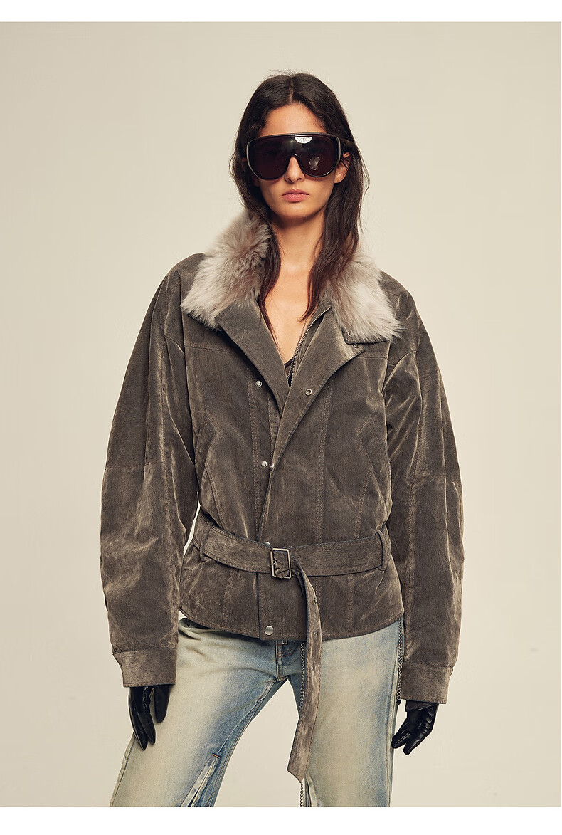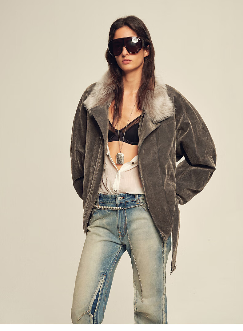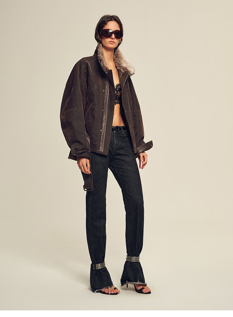 Fu Zhien CHIC PARKA modern traveler detachable toca fur collar fur goose down parka jacket dark coffee S