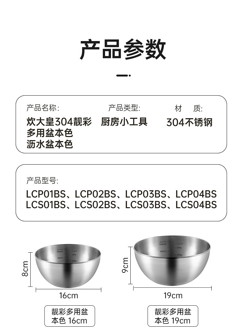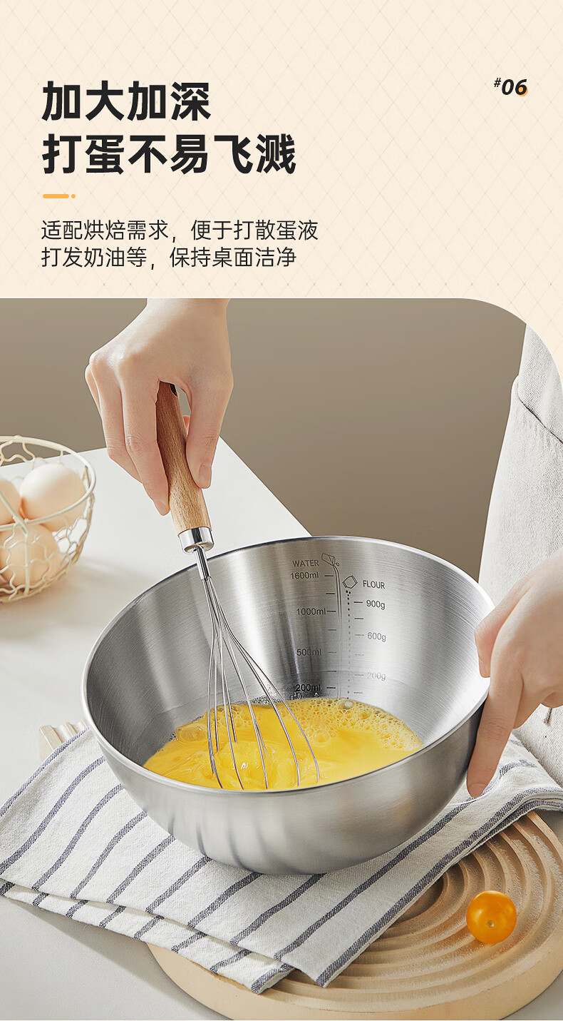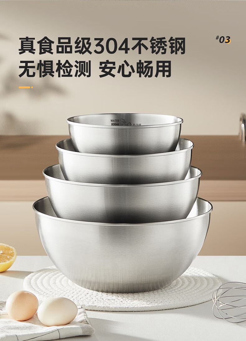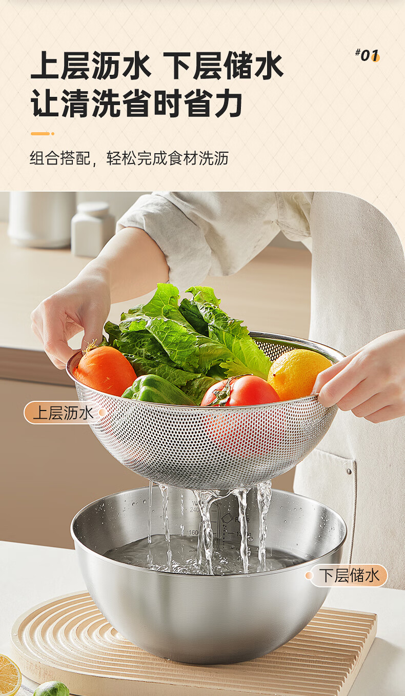 COOKER KING 304 stainless steel basin, vegetable basin, drain basket, egg beater and basin, new rice filter for home kitchen, 304 stainless steel mixed color medium size 4-piece set, basin + drain basket