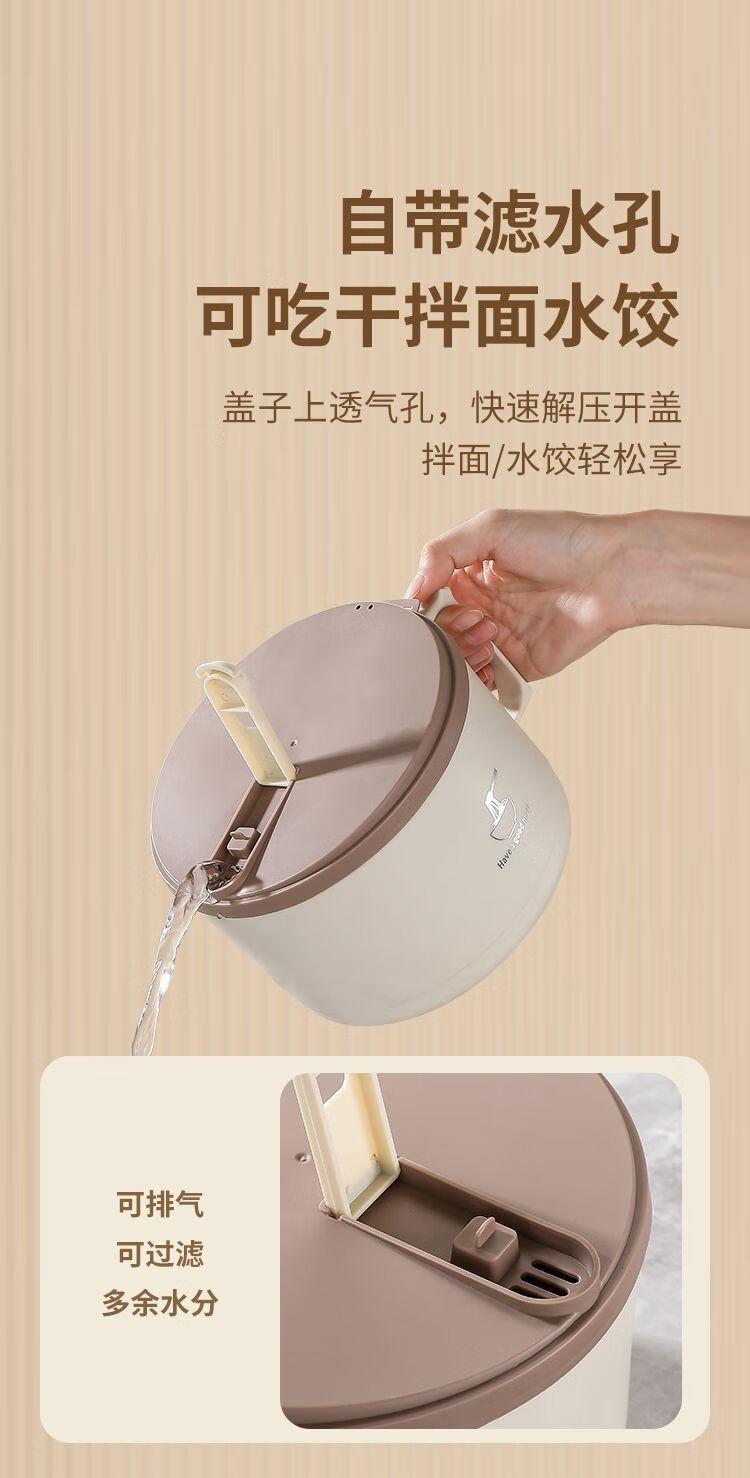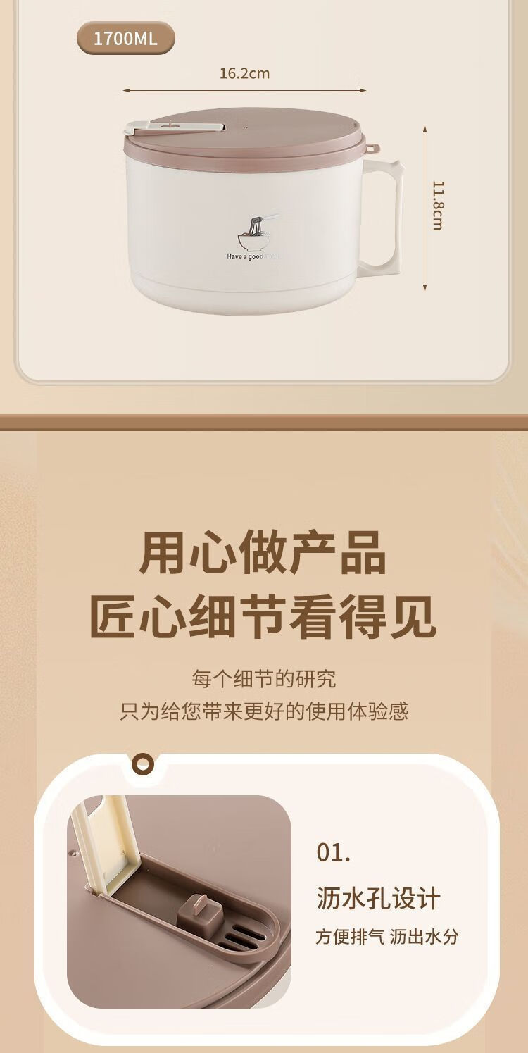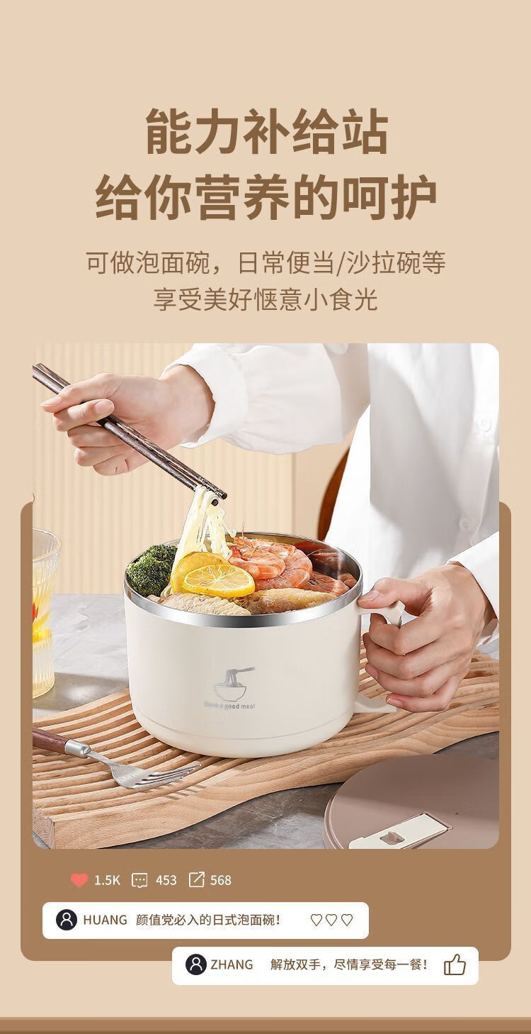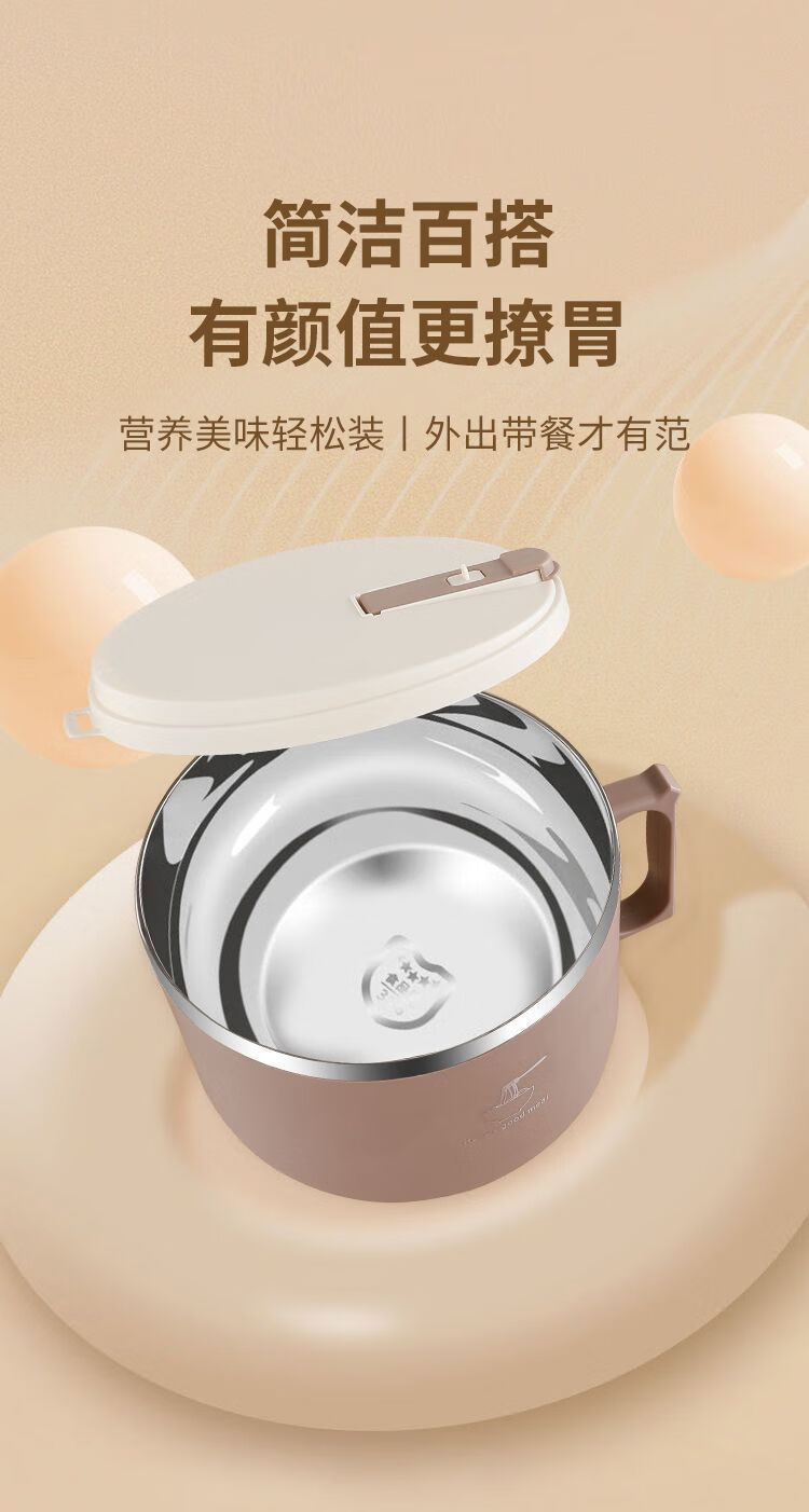 Nikki Bear instant noodle bowl, large student dormitory with lid, large capacity 304 stainless steel fast food cup for one person, canteen meal, thickened off-white, 304 liner, 1700ML