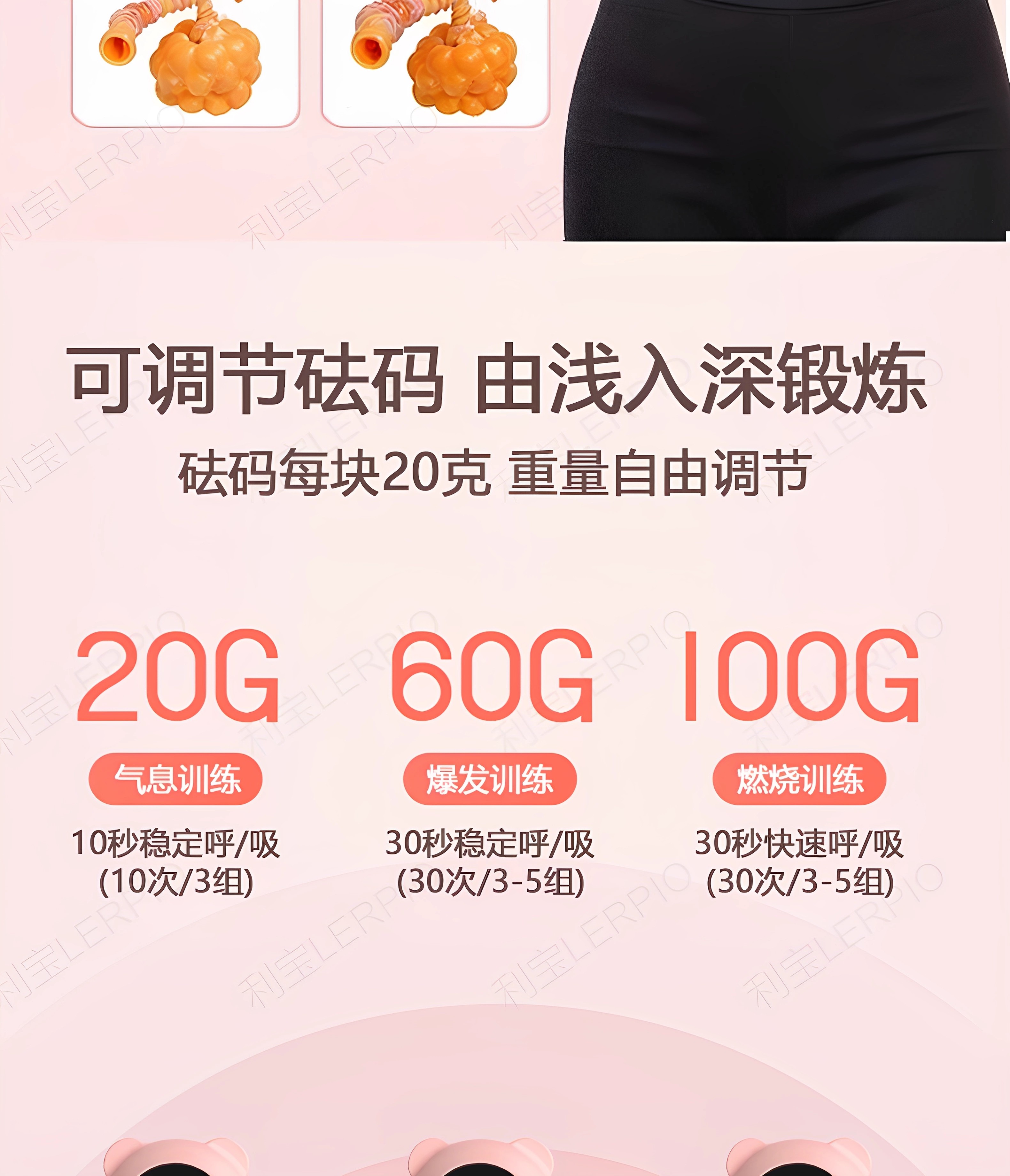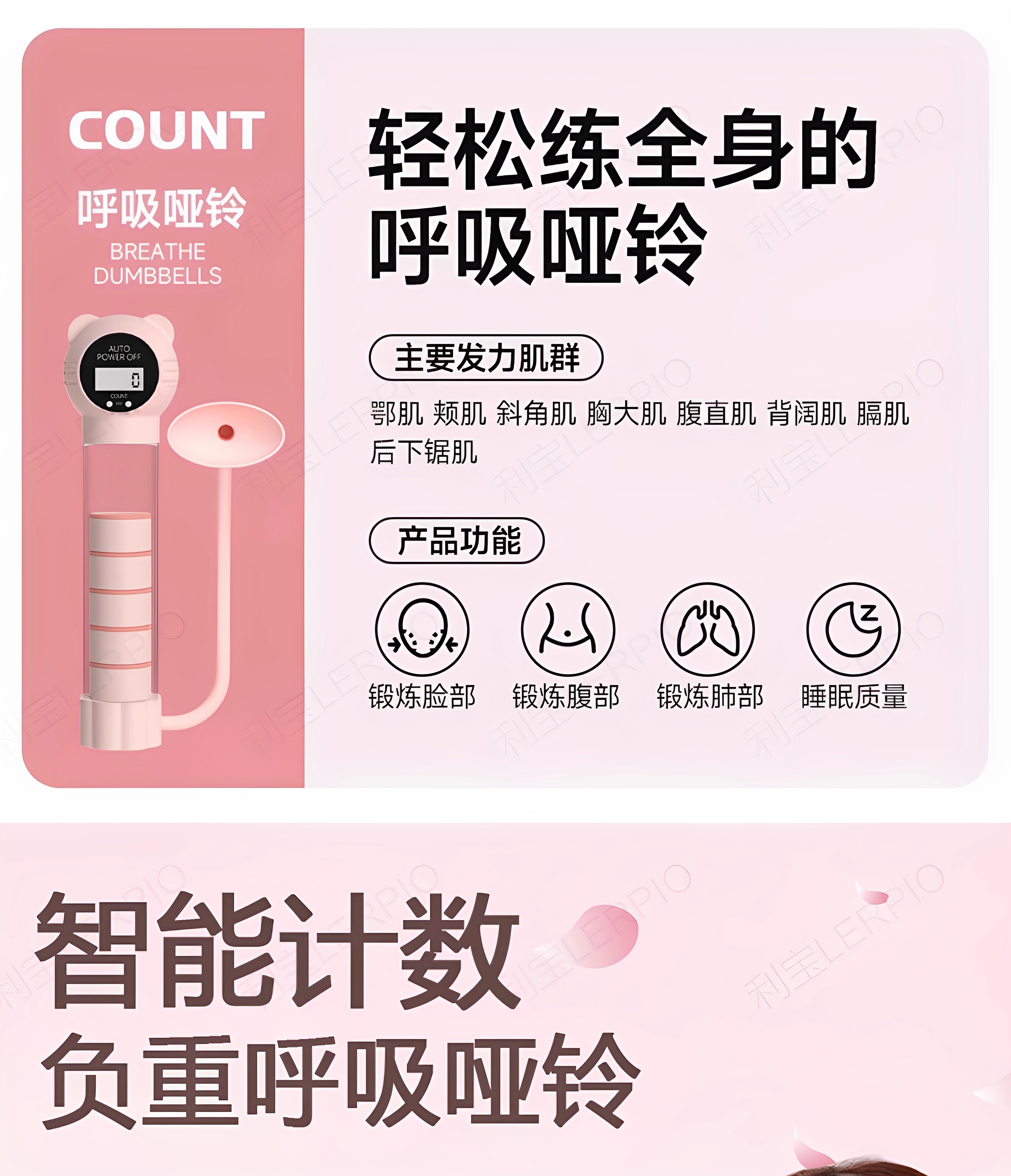 Youchili Breathing Dumbbell Abdominal Weight-bearing Breathing Exercise Cardio Pulmonary Capacity Trainer Abdominal Muscle Vest Line Sports and Fitness Equipment Falling Cherry Powder New Counting Model-Free 100g Weight Mouthpiece*2+Cleaning Brush*1+Storage Bag*1+Hose*1