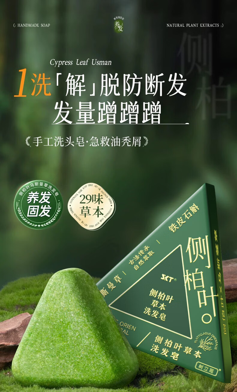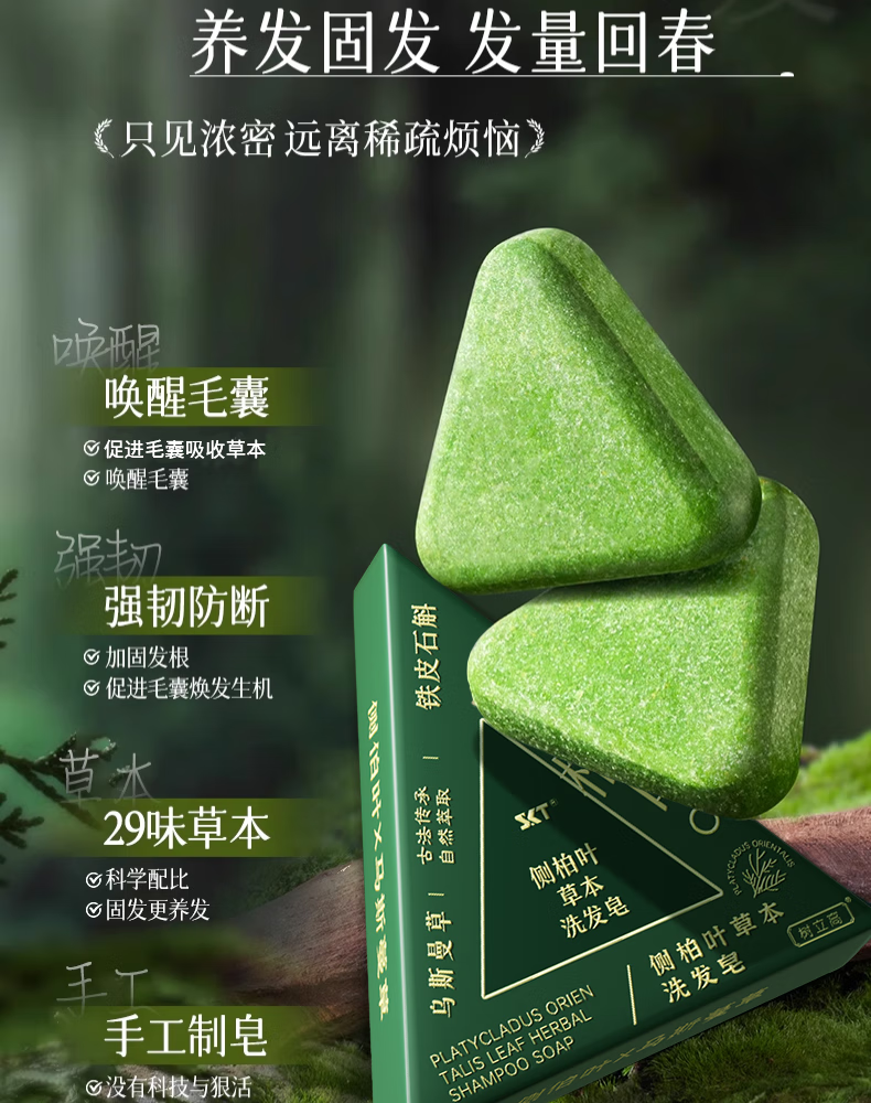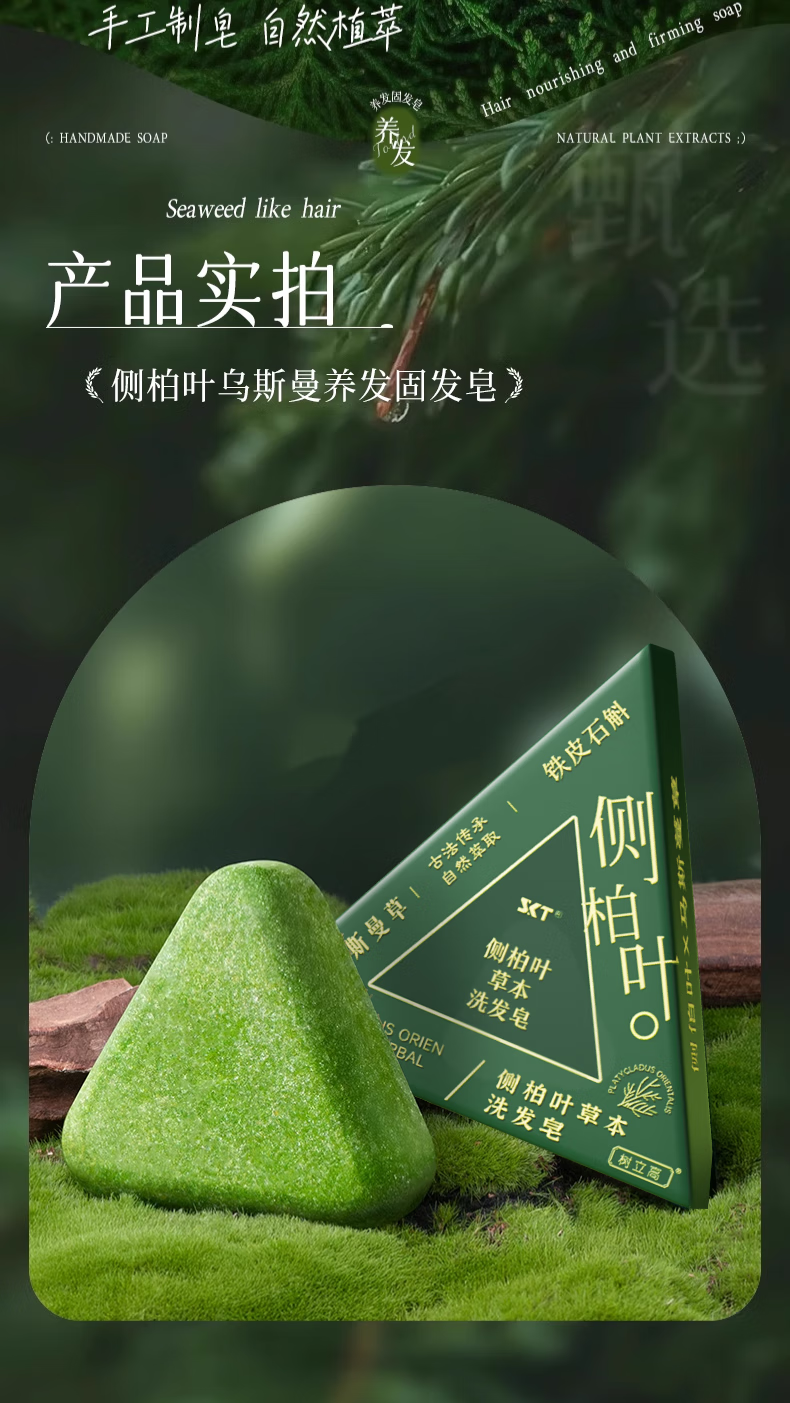 Platycladus orientalis leaf Xinjiang Usman herbal dark green shampoo soap Polygonum multiflorum anti-dandruff oil control shampoo 120g/box Platycladus orientalis leaf Usman soap 1 box