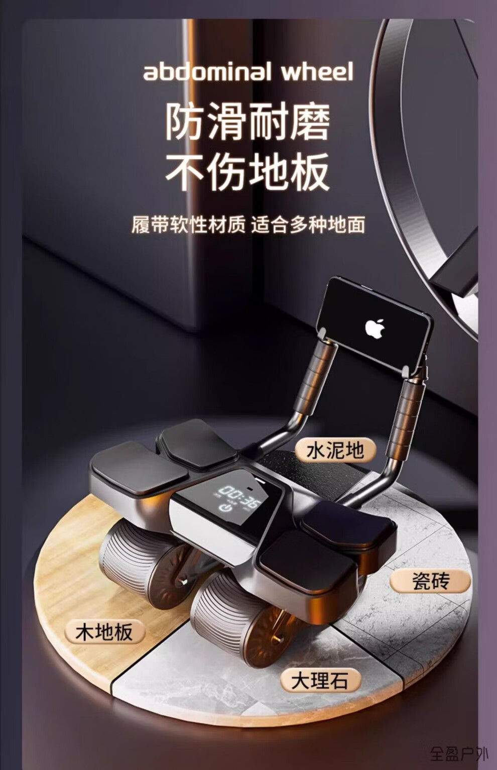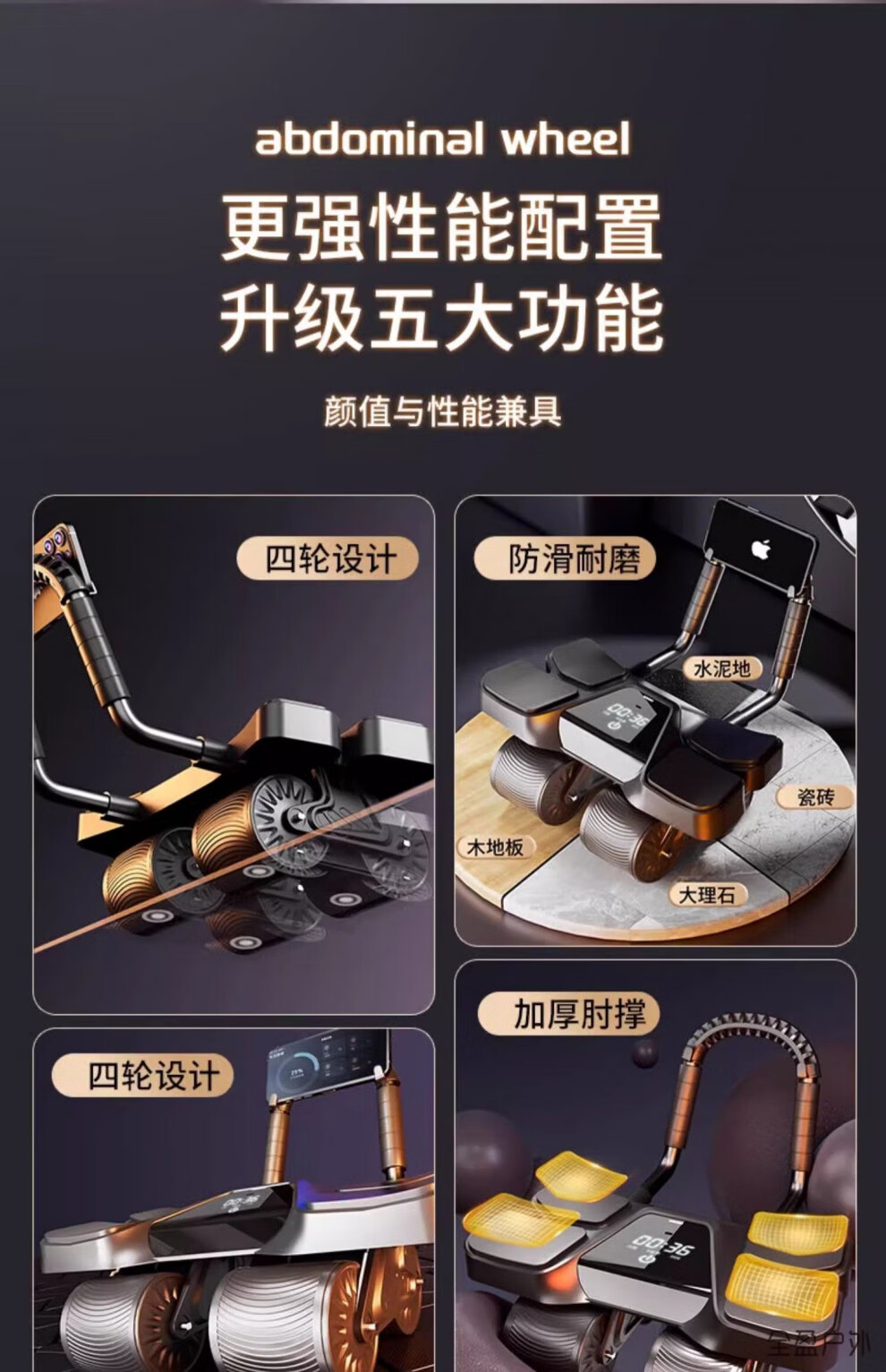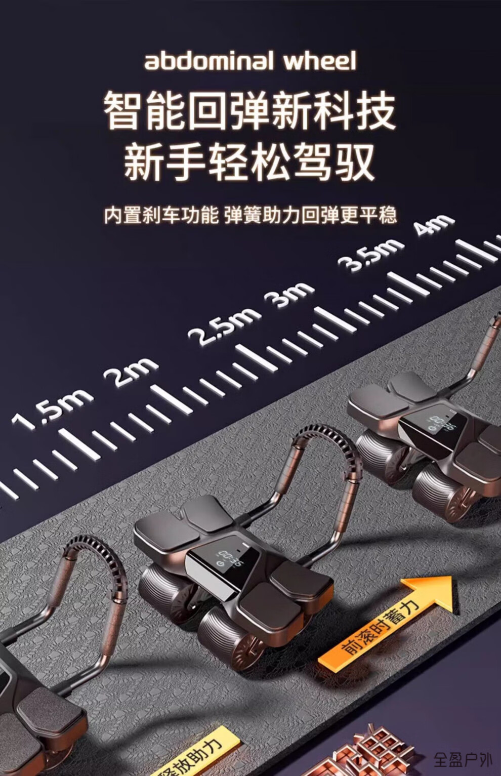 OIMG German imported quality intelligent digital display abdominal wheel four-wheel automatic rebound abdominal wheel men's abdominal training tool high-end smart model - black + special pad + fat burning belt + auxiliary device get 15