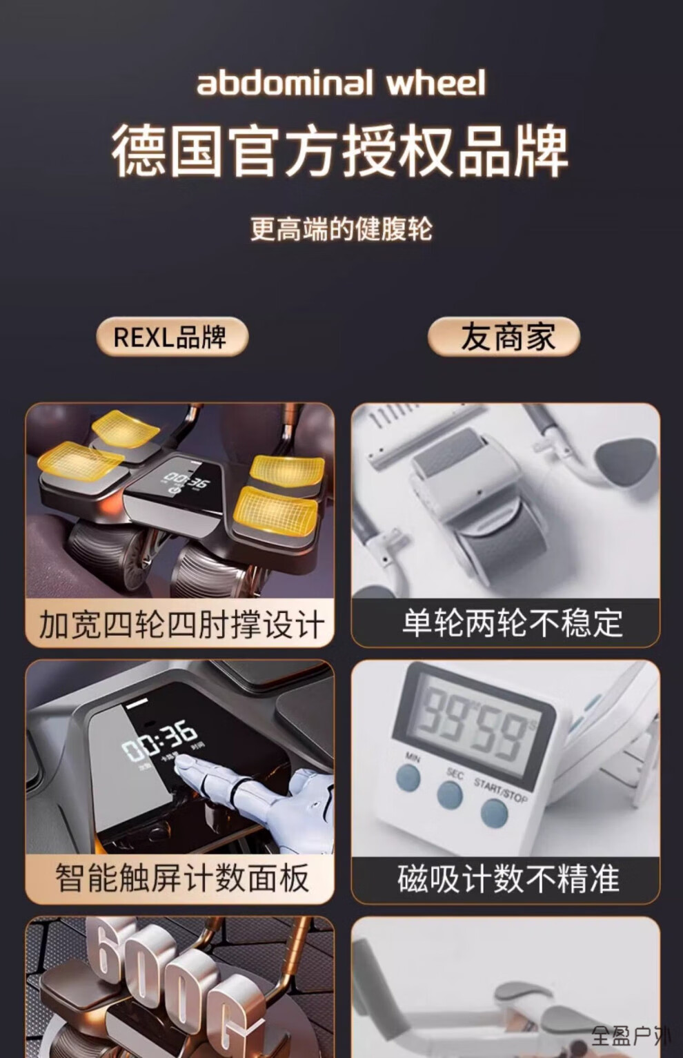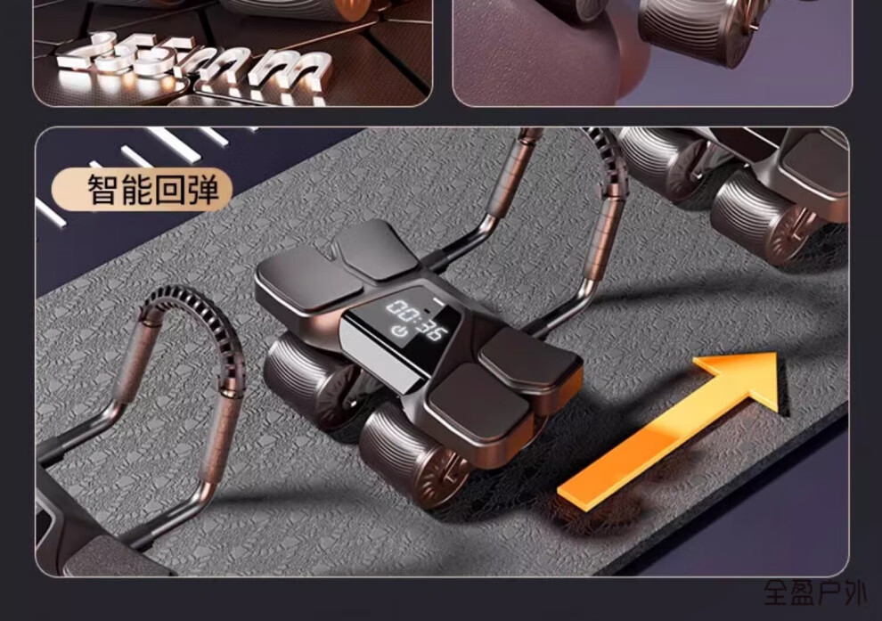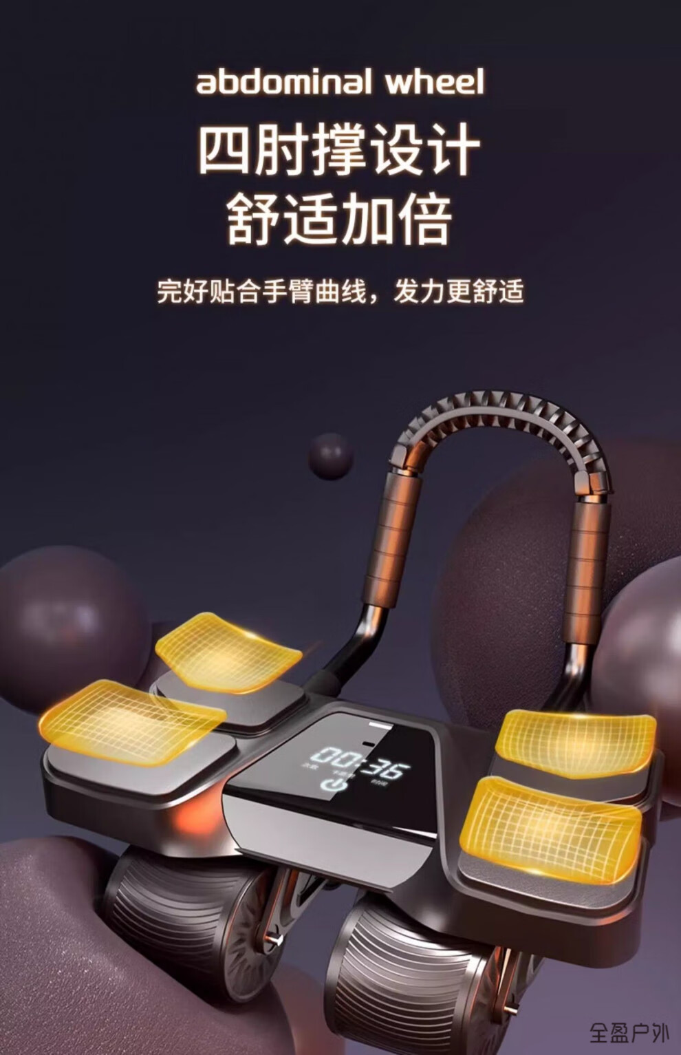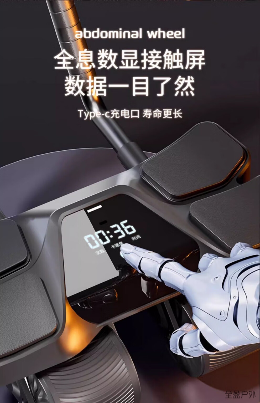 OIMG German imported quality intelligent digital display abdominal wheel four-wheel automatic rebound abdominal wheel men's abdominal training tool high-end smart model - black + special pad + fat burning belt + auxiliary device get 15