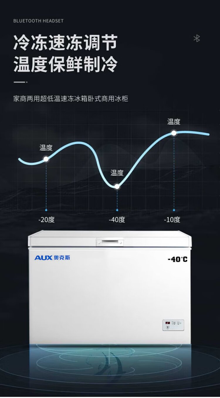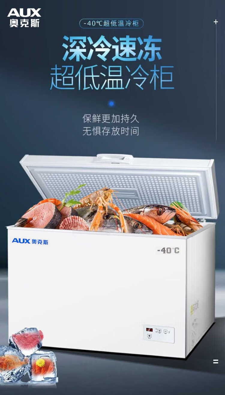 AUX ultra-low temperature freezer - 40 degrees Celsius, commercial large-capacity freezer, subzero freezer, seafood deep-freezing quick-freezer, deep freeze ice cream cabinet, laboratory refrigerator -40 C | 356L deep freeze | can store 534 kilograms of meat