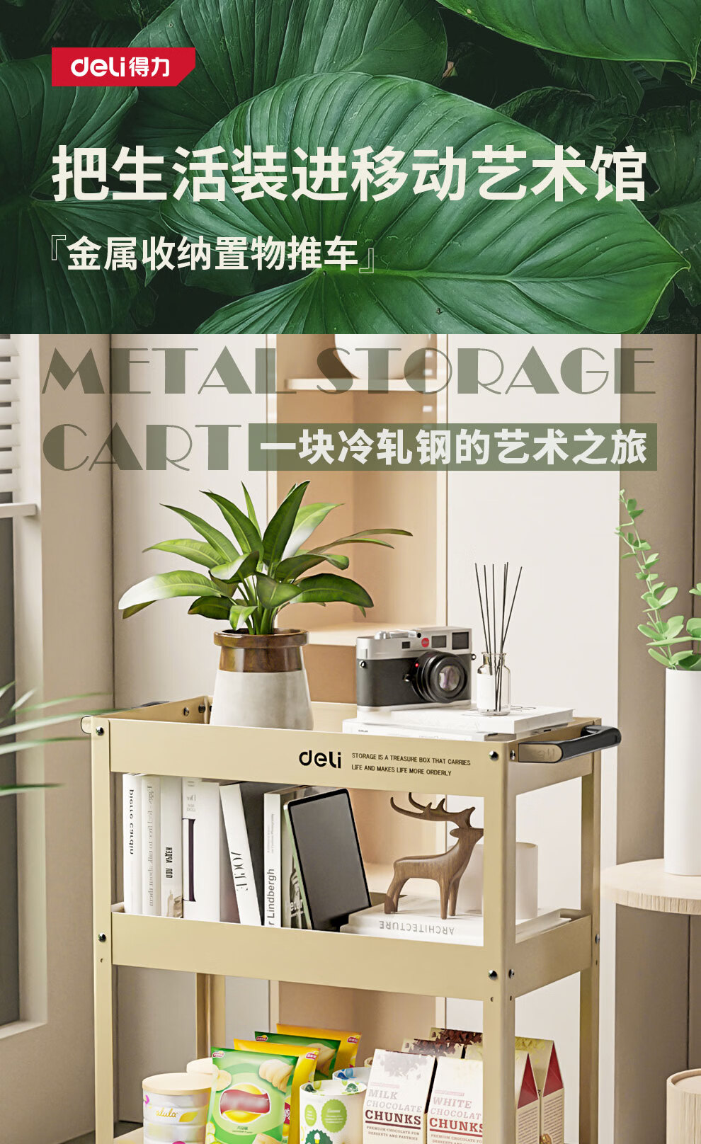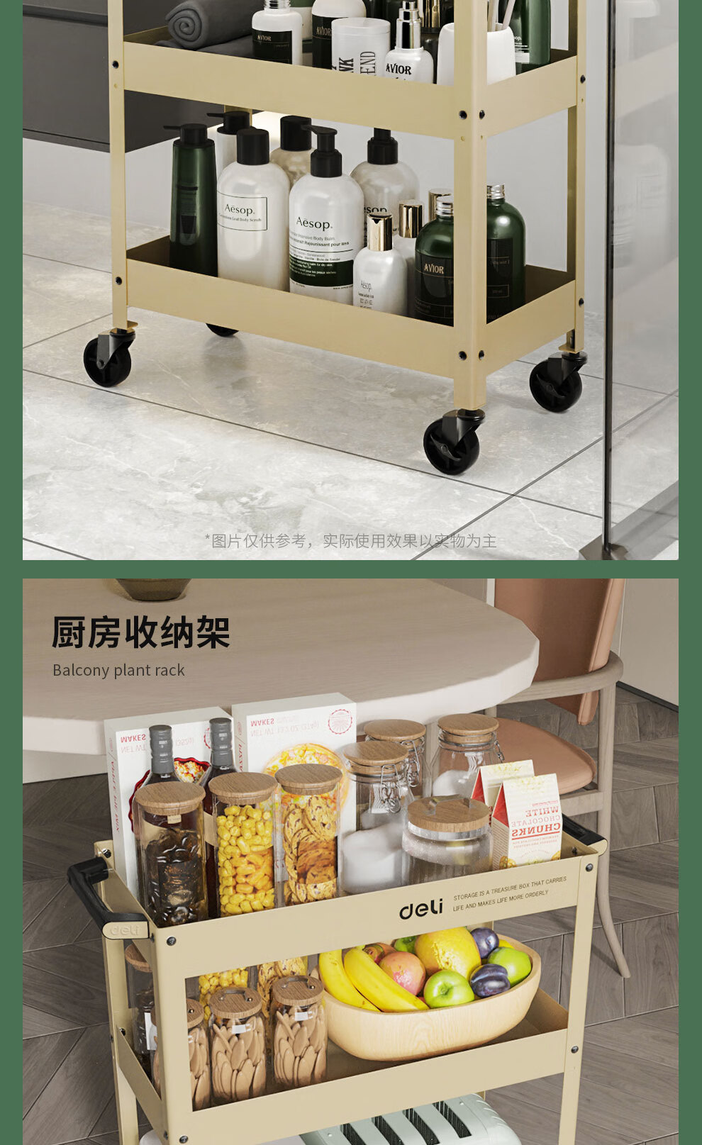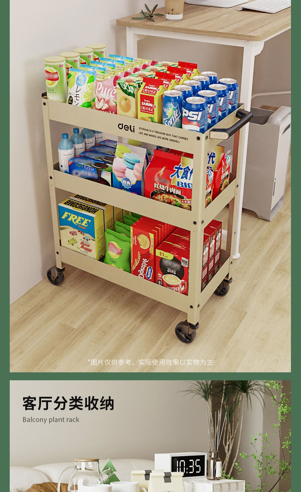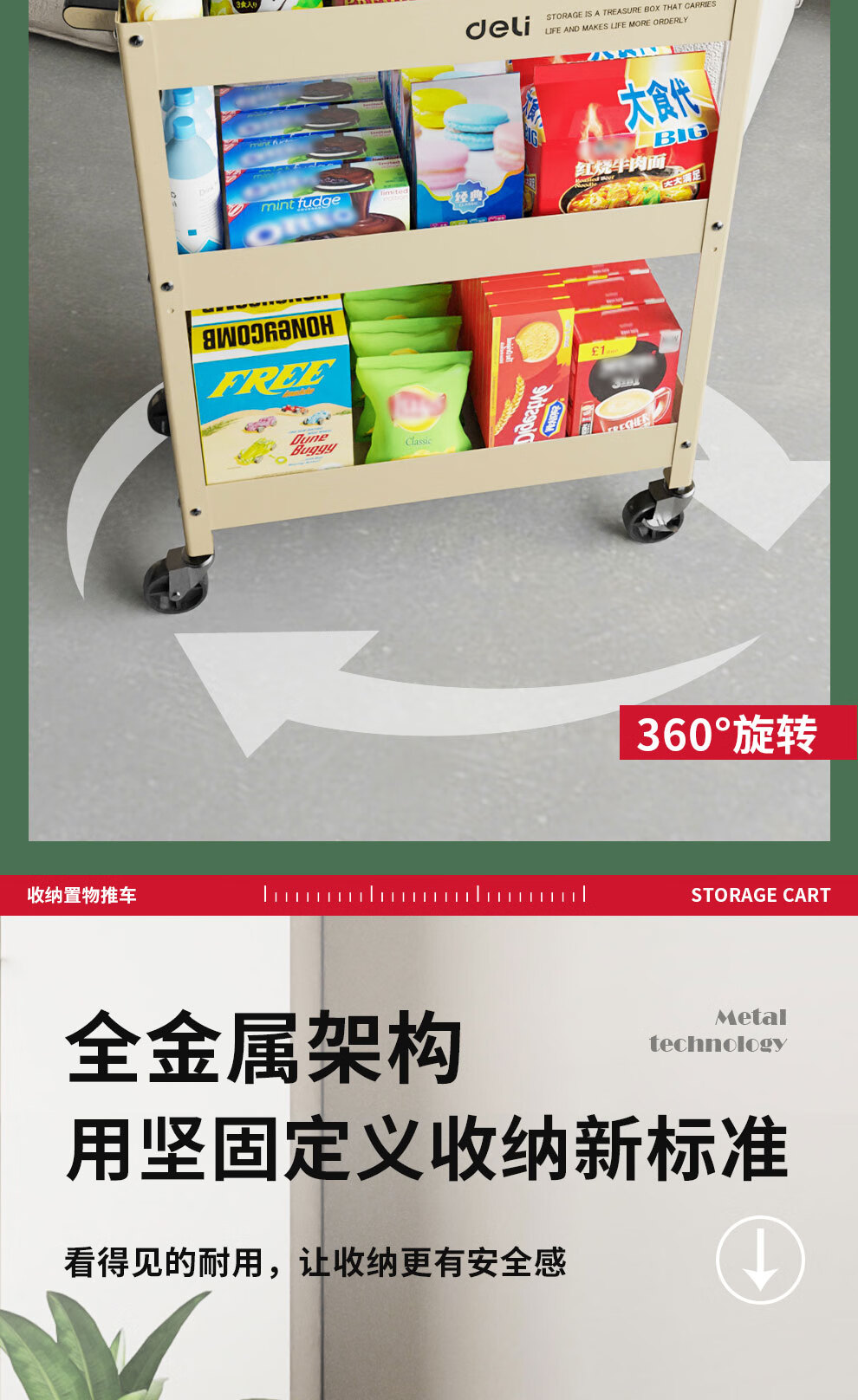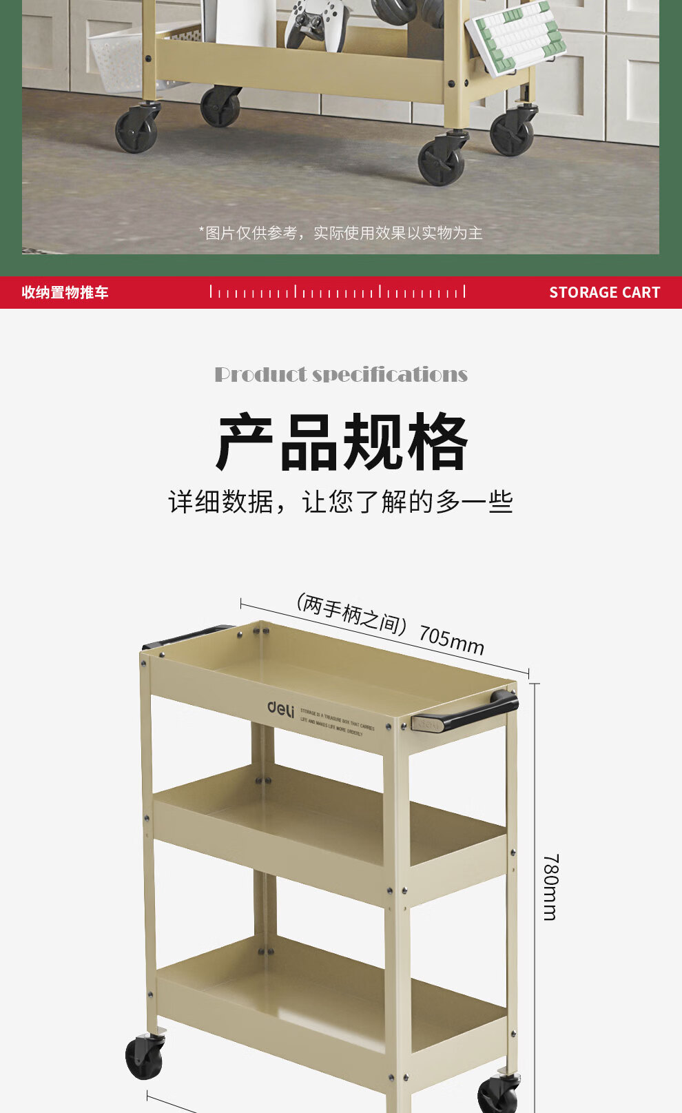 Deli metal tool cart three-layer trolley mobile car repair tool cart storage cabinet multi-functional tool parts cabinet three-layer metal storage cart basic model white 60*30*77.5CM