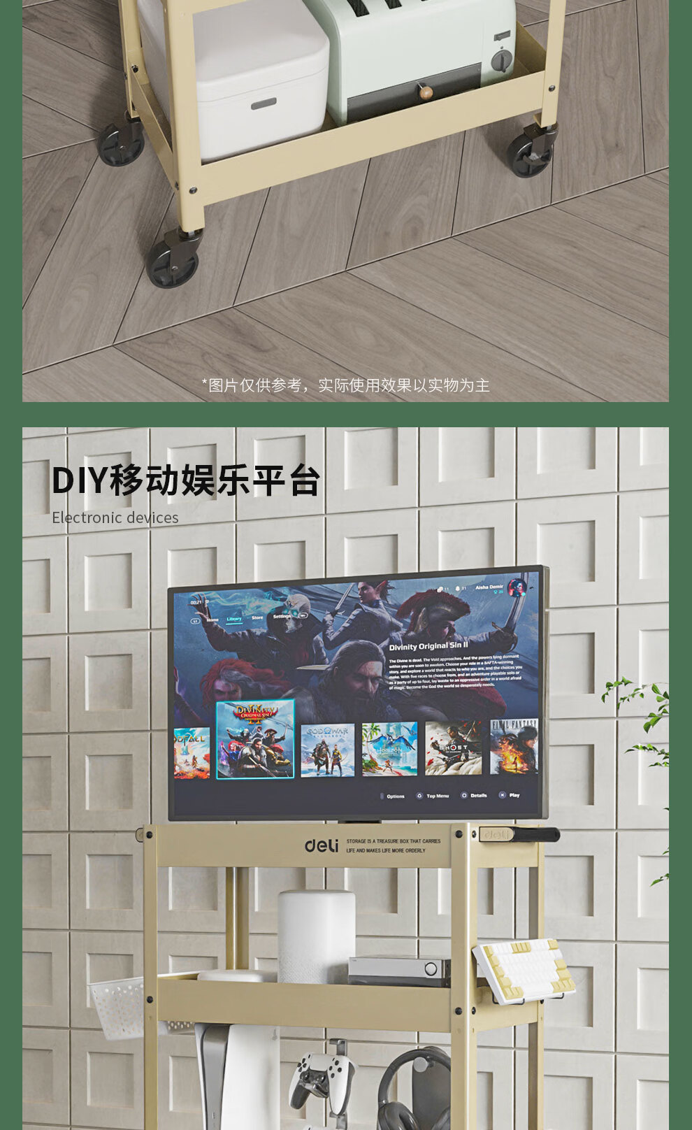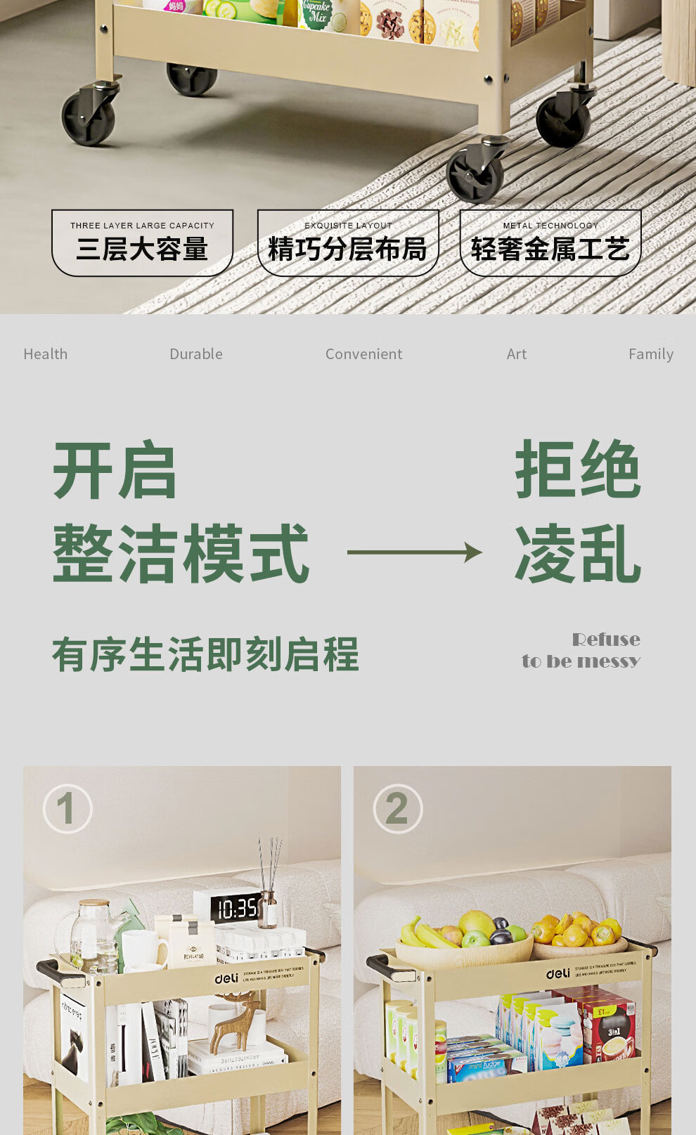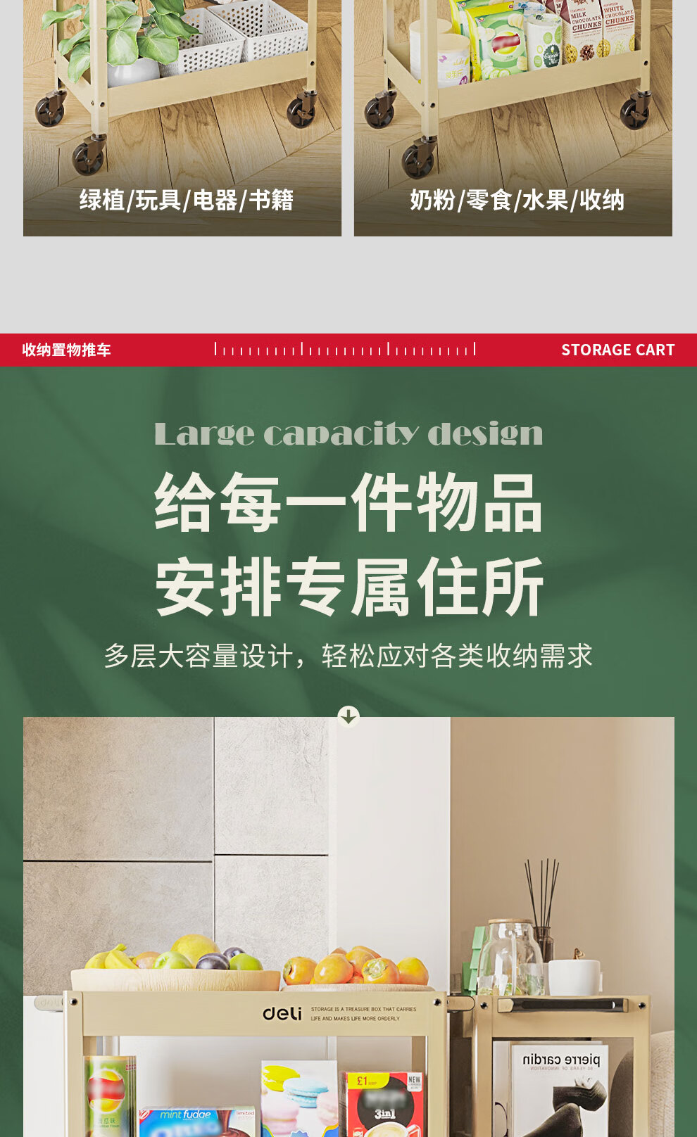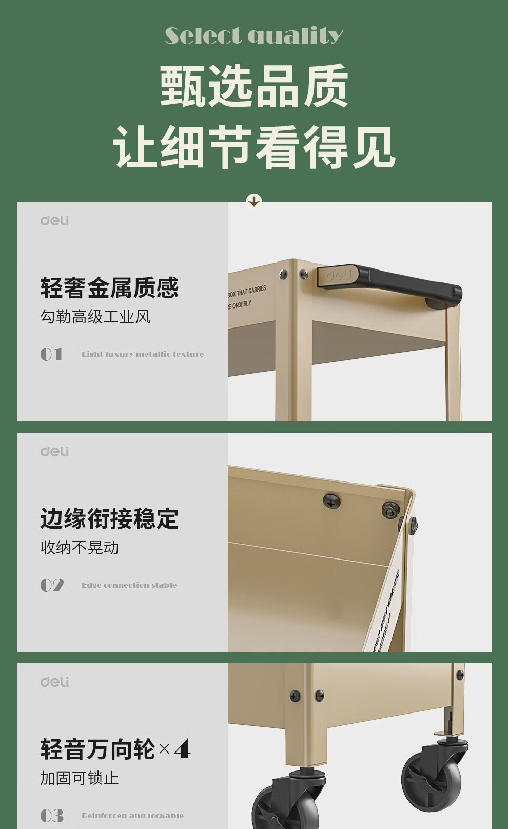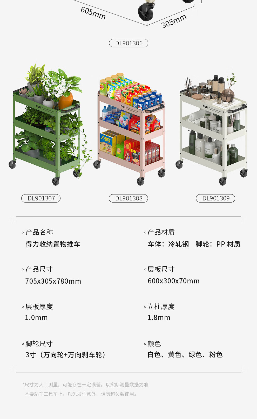 Deli metal tool cart three-layer trolley mobile car repair tool cart storage cabinet multi-functional tool parts cabinet three-layer metal storage cart basic model white 60*30*77.5CM