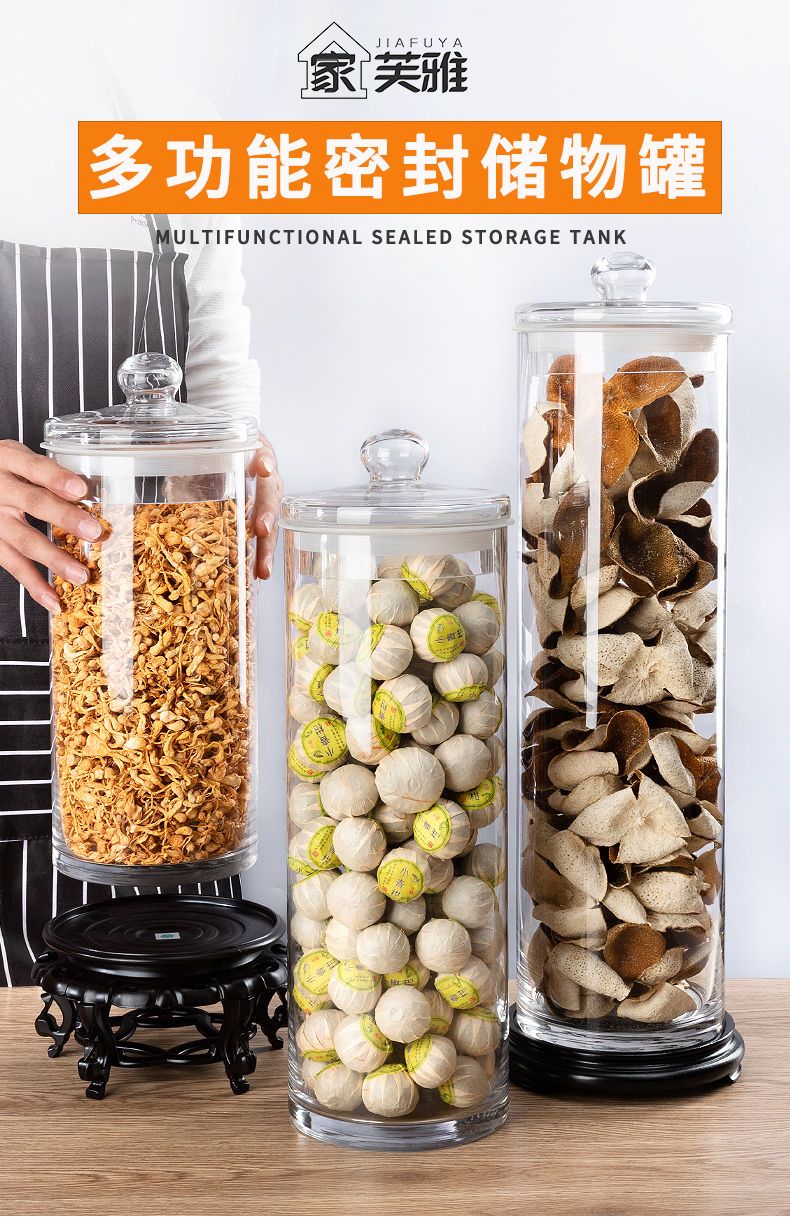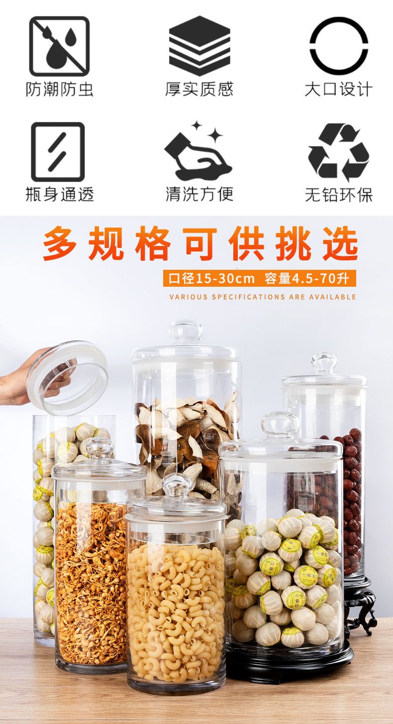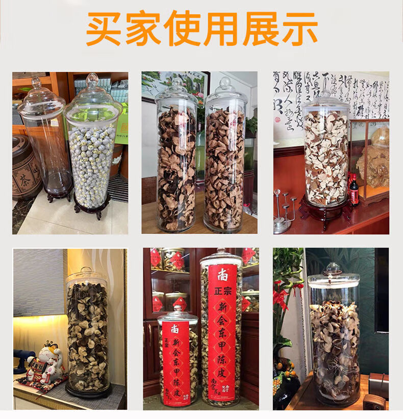 NAOISKEY Naoski large-capacity tangerine peel storage jar sealed special lidded packaging jar glass barrel tea jar transparent orange display bottle 25cm mouth 80cm high