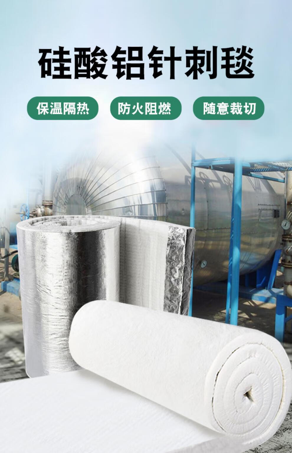 Insulation cotton aluminum silicate needle punched blanket high temperature resistant fireproof cotton asbestos exhaust pipe aluminum foil fireproof wrapped insulation material thick 40MM-61CM wide * 1M long.