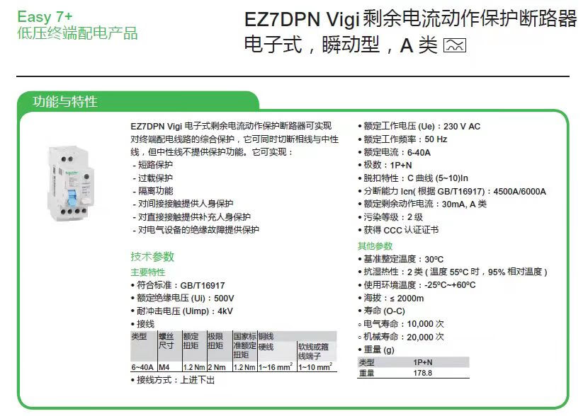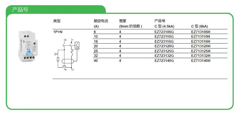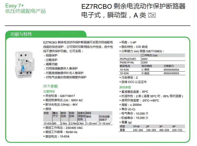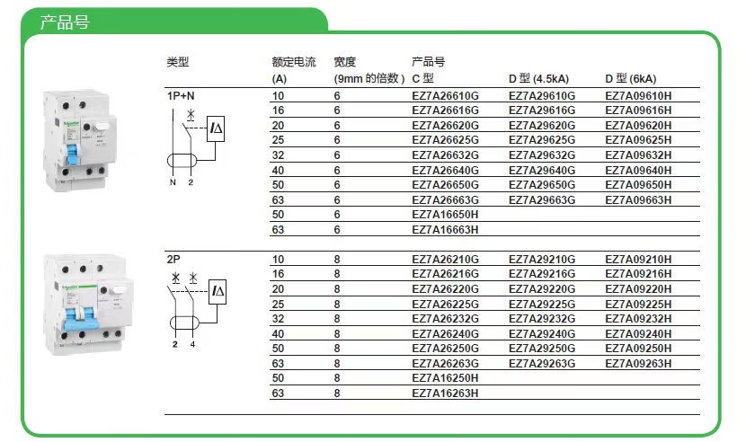 Schneider circuit breaker type C with leakage protection 1P/1P+N/2P/3P/4P Easy7+ series 63A 1P