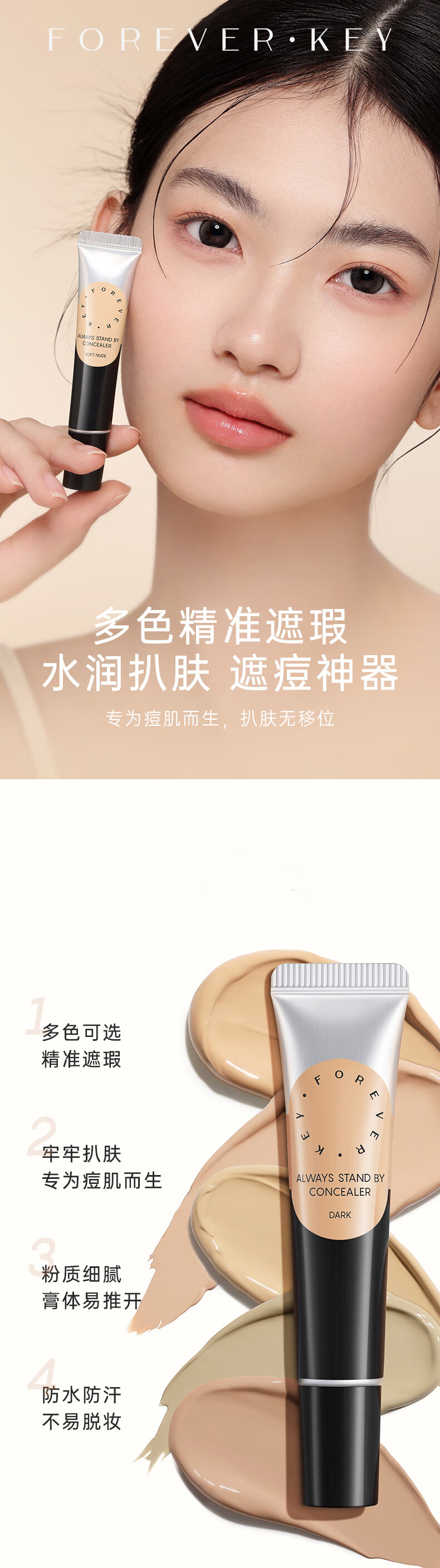 FOREVER KEY Concealer Cream Concealer Pen Covers Spots, Dark Circles and Acne Marks on Face 04 Skin Green (Moisturizing Type)