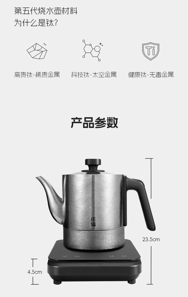 TLIT German pure titanium kettle automatically fills the water for tea, special one-piece seamless liner, new quick-boiling kettle, Fangyuan E03 1ml