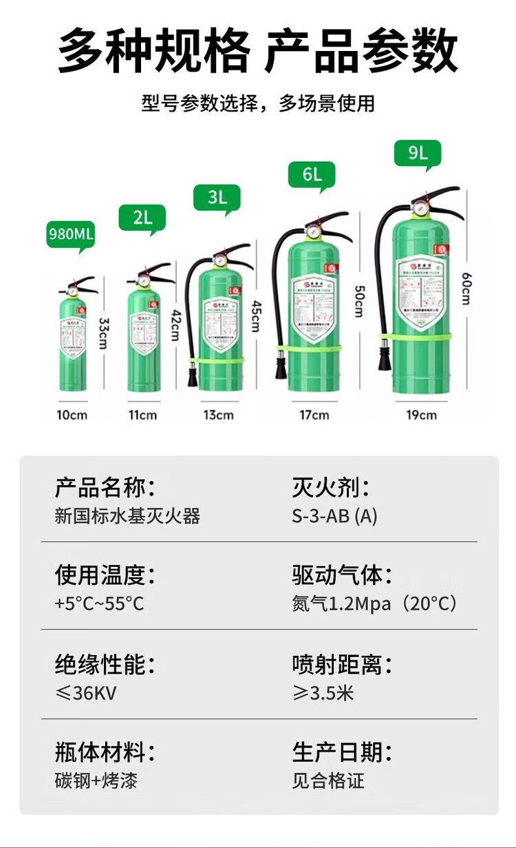 Fire extinguisher 4kg water-based shop company portable dry powder warehouse vehicle 5kg fire-fighting materials 2 3L water-based fire extinguishers + fire extinguisher box
