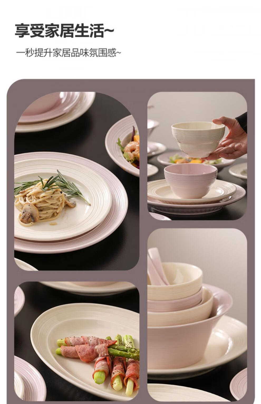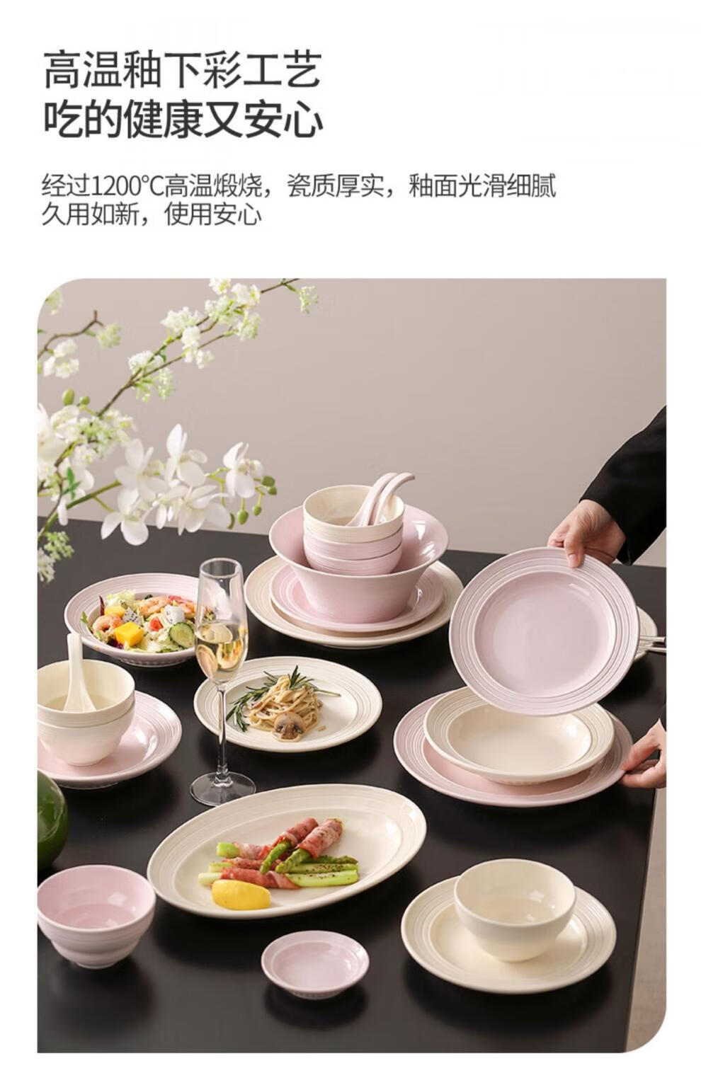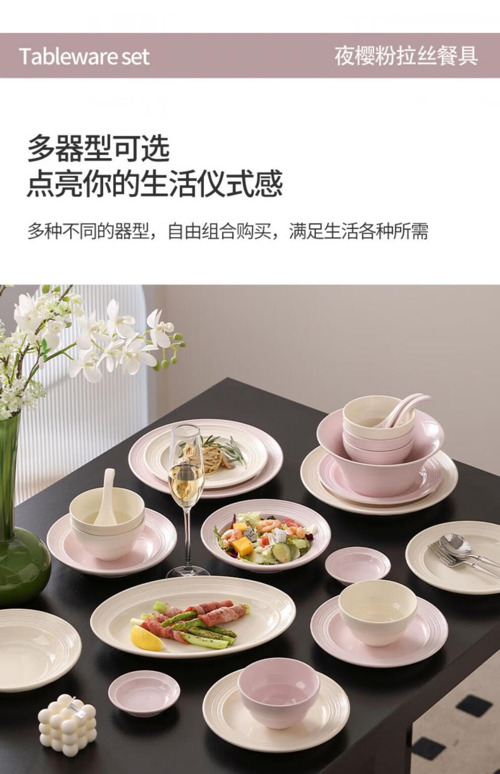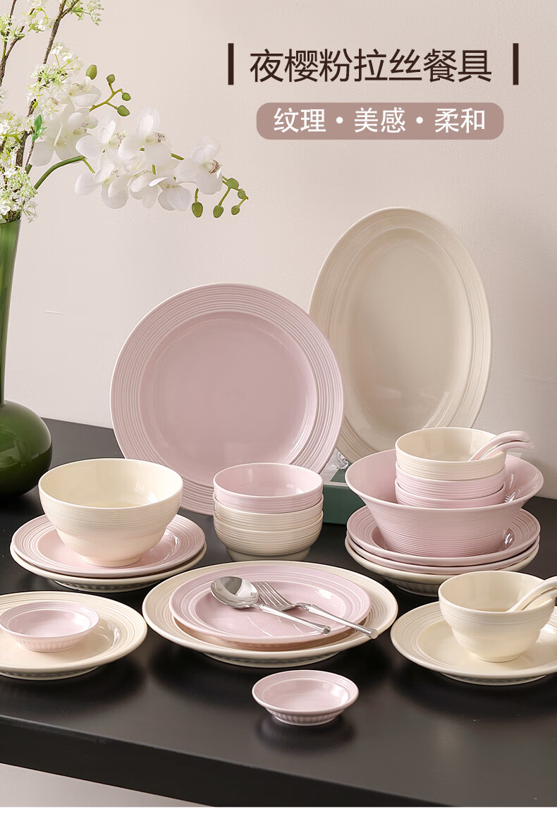 RWTW high-end underglaze color tableware and dishes set for home 2025 new style bowls and chopsticks and plates and tableware set housewarming gift new home food for six people - night cherry pink mixed color 37-piece set