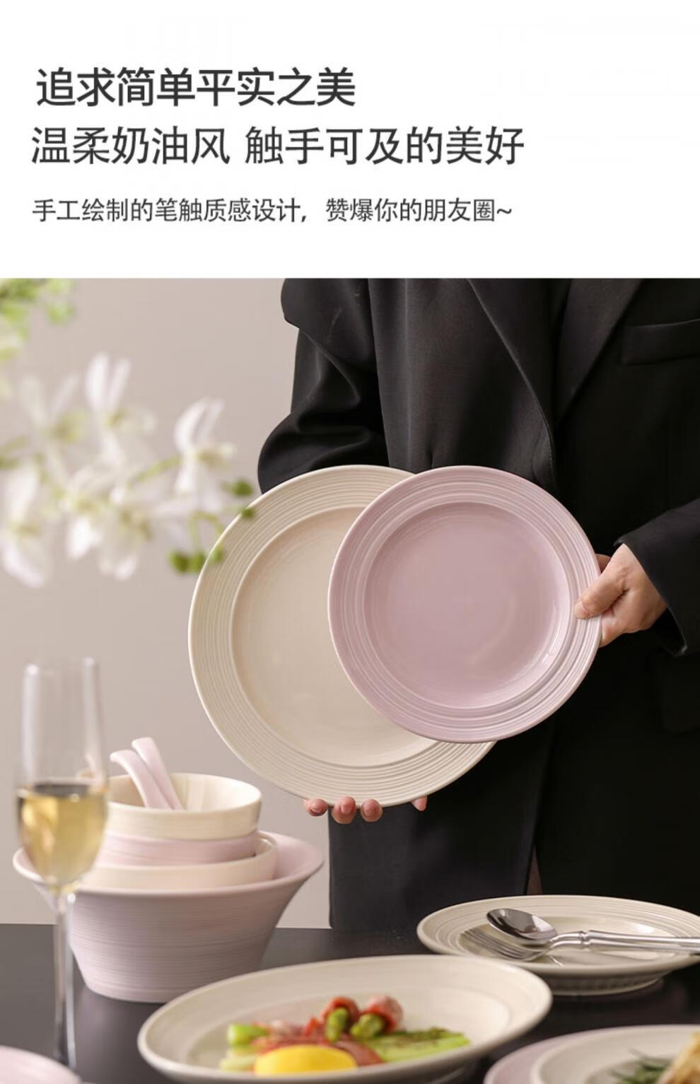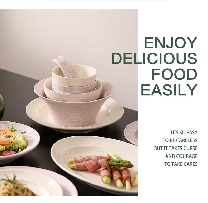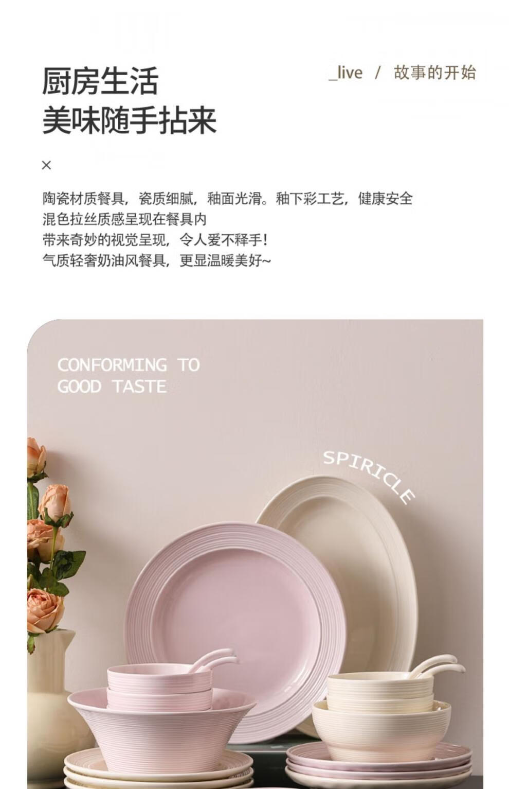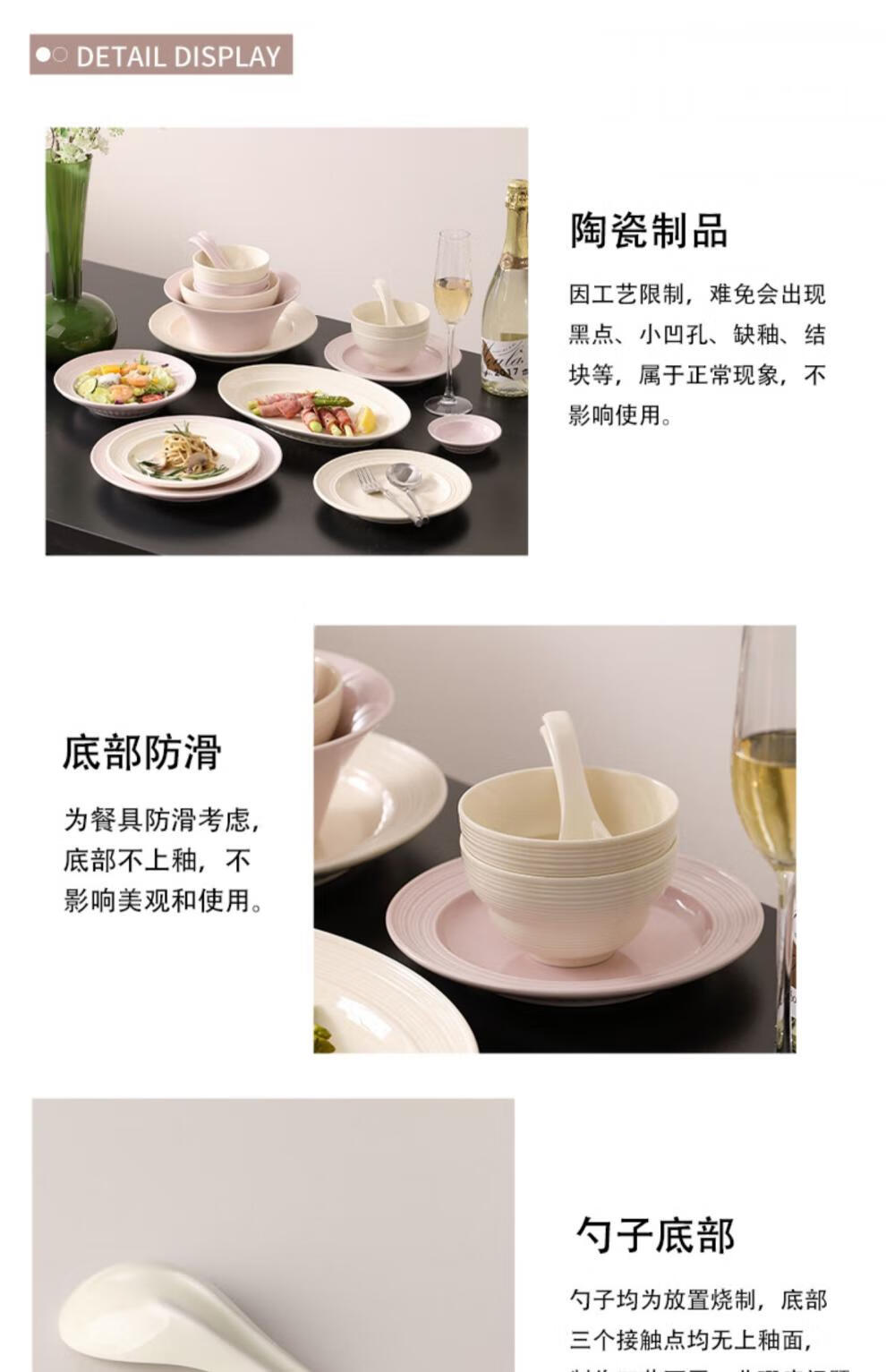 RWTW high-end underglaze color tableware and dishes set for home 2025 new style bowls and chopsticks and plates and tableware set housewarming gift new home food for six people - night cherry pink mixed color 37-piece set