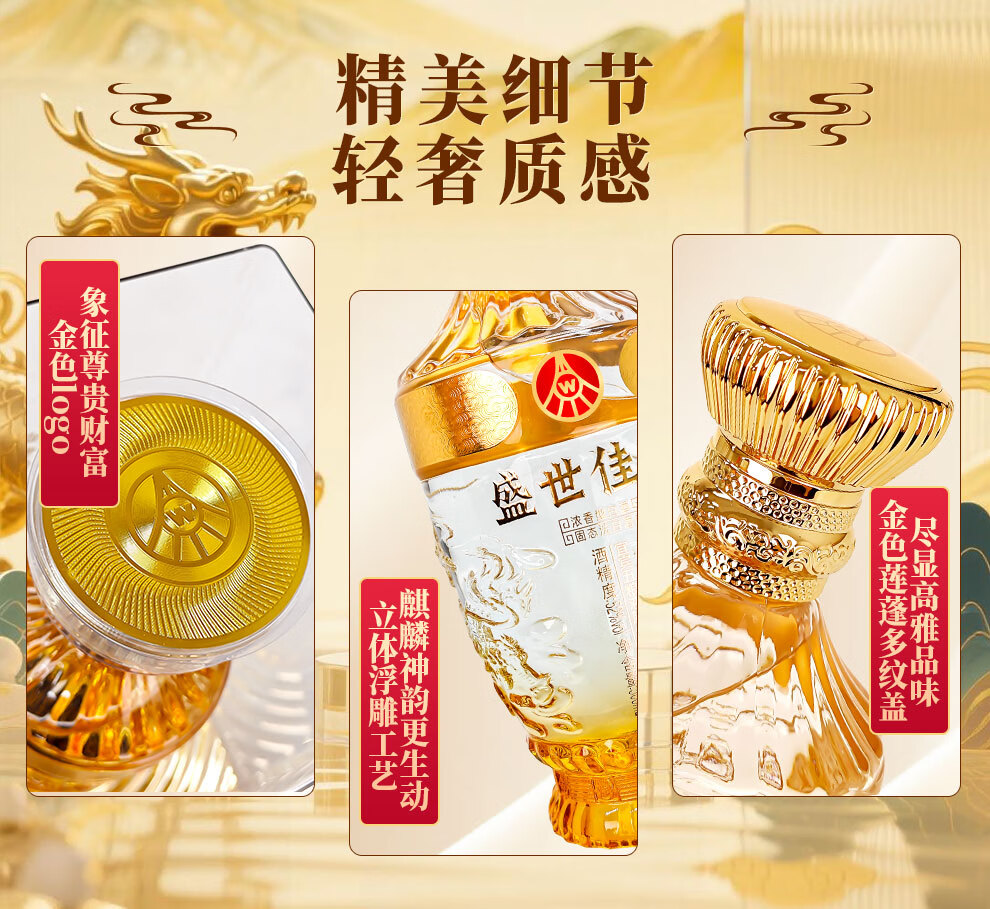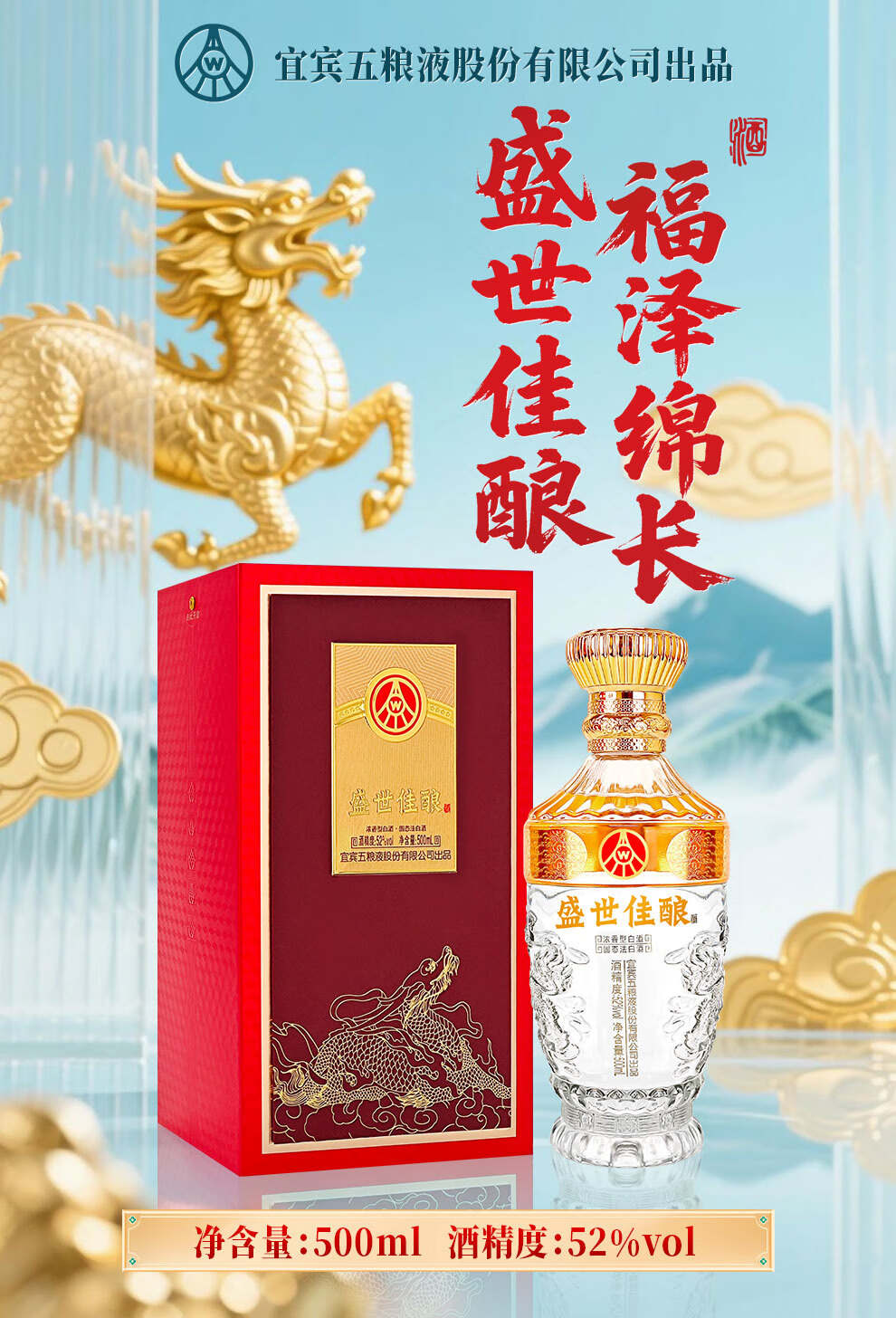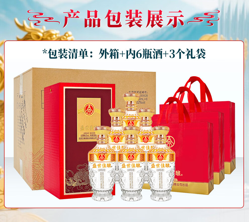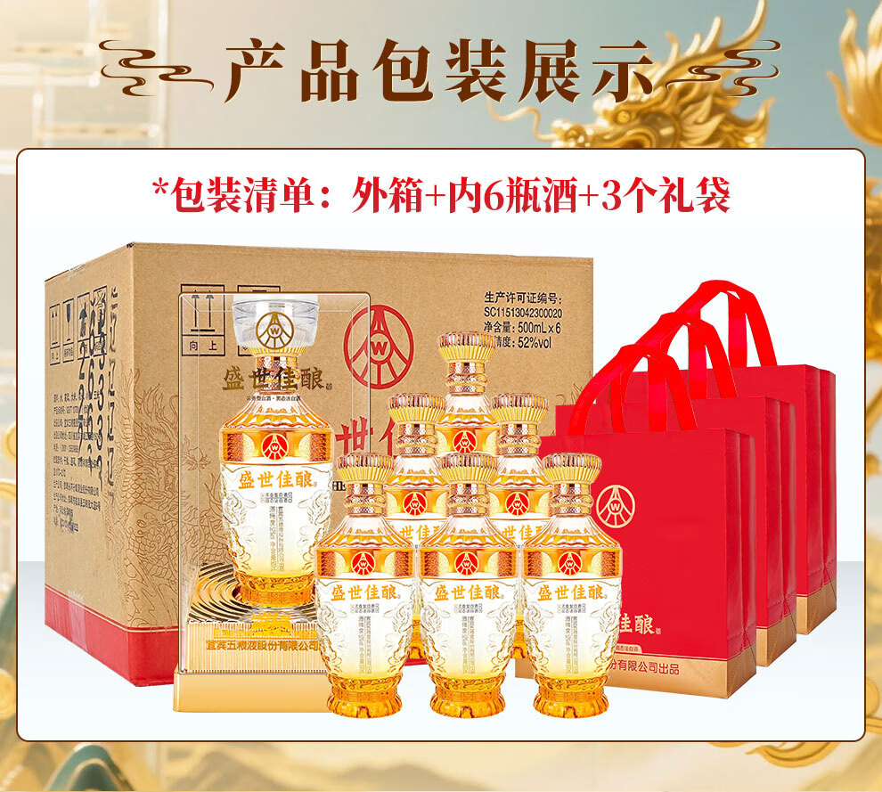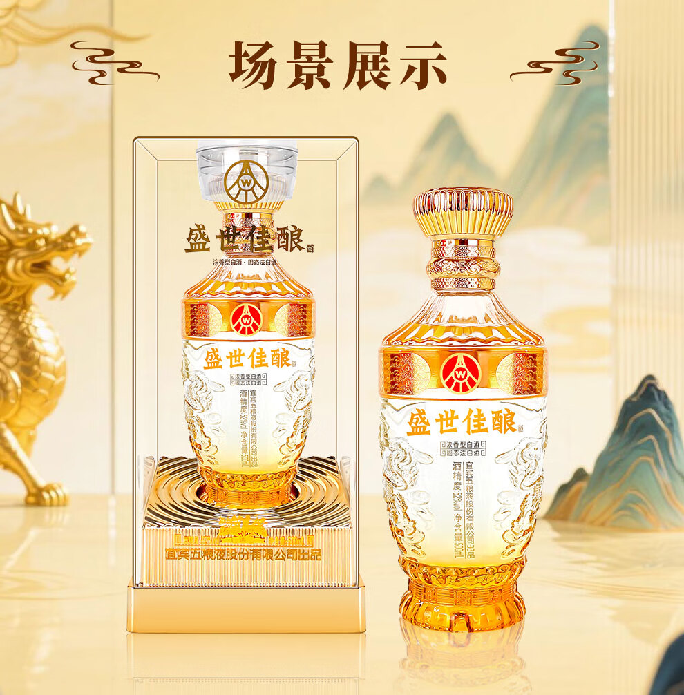 Produced by Wuliangye Co., Ltd. Luzhou-flavor liquor grain solid fermentation ration wine wedding banquet gift wine 52 degrees 500mL 1 bottle Shengshi fine wine Kirin blessing