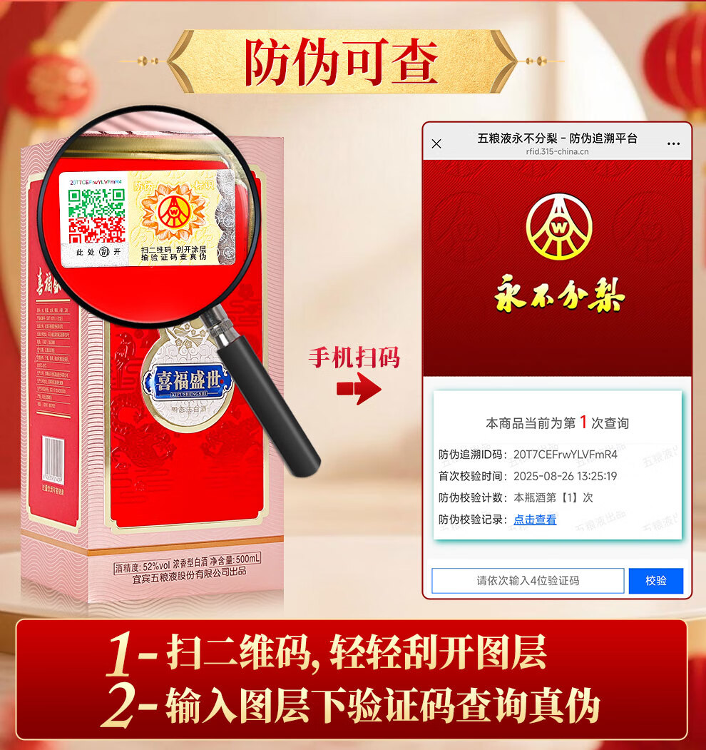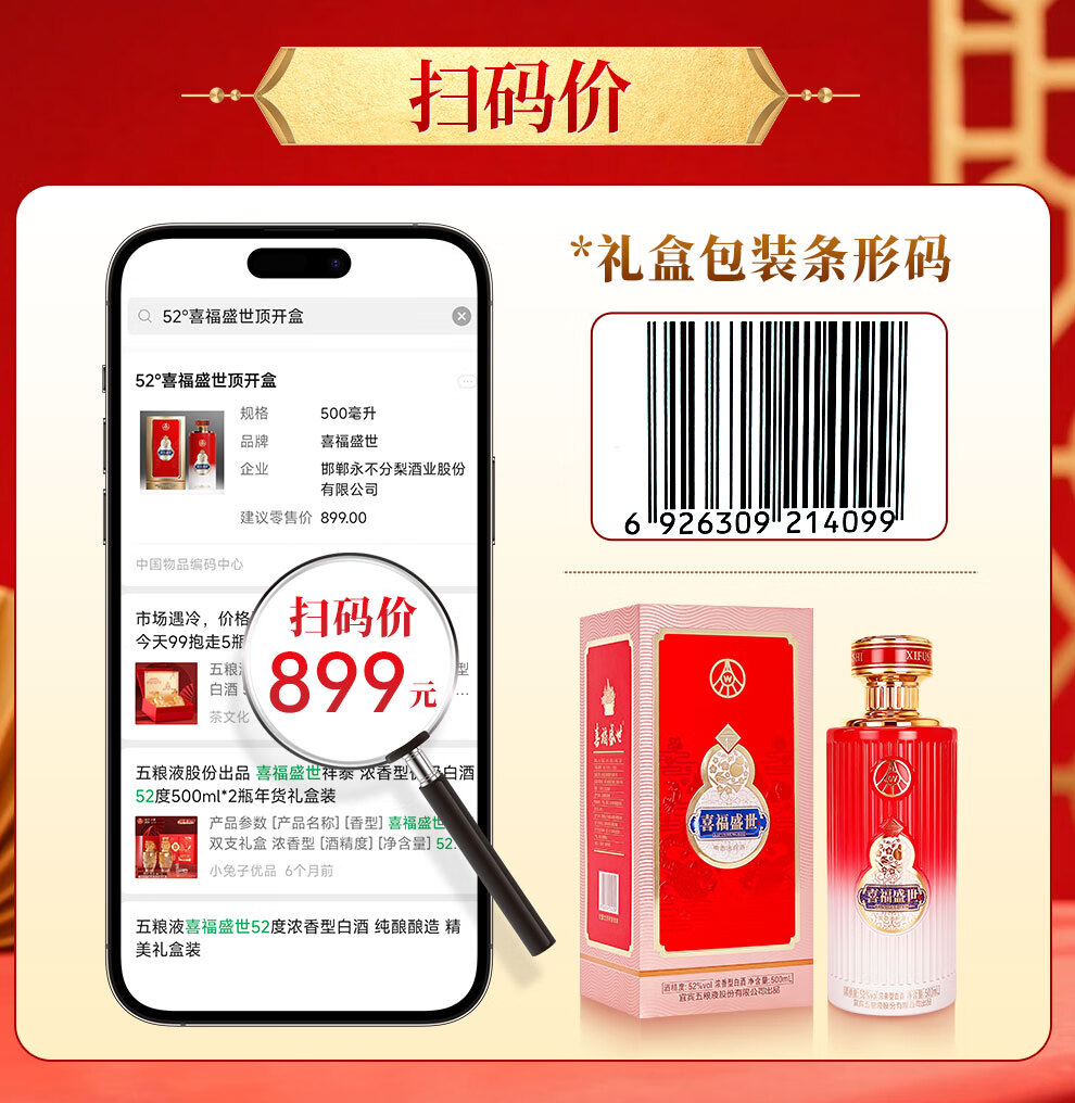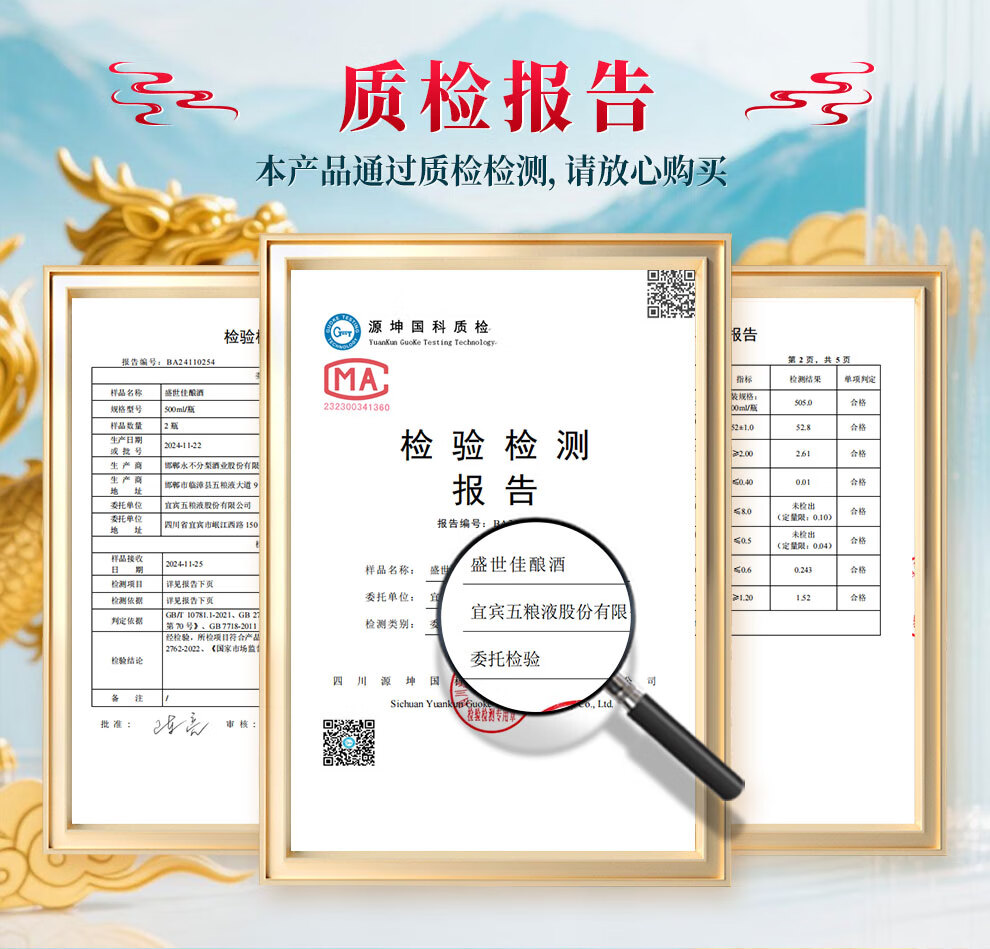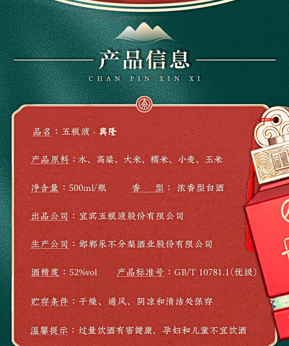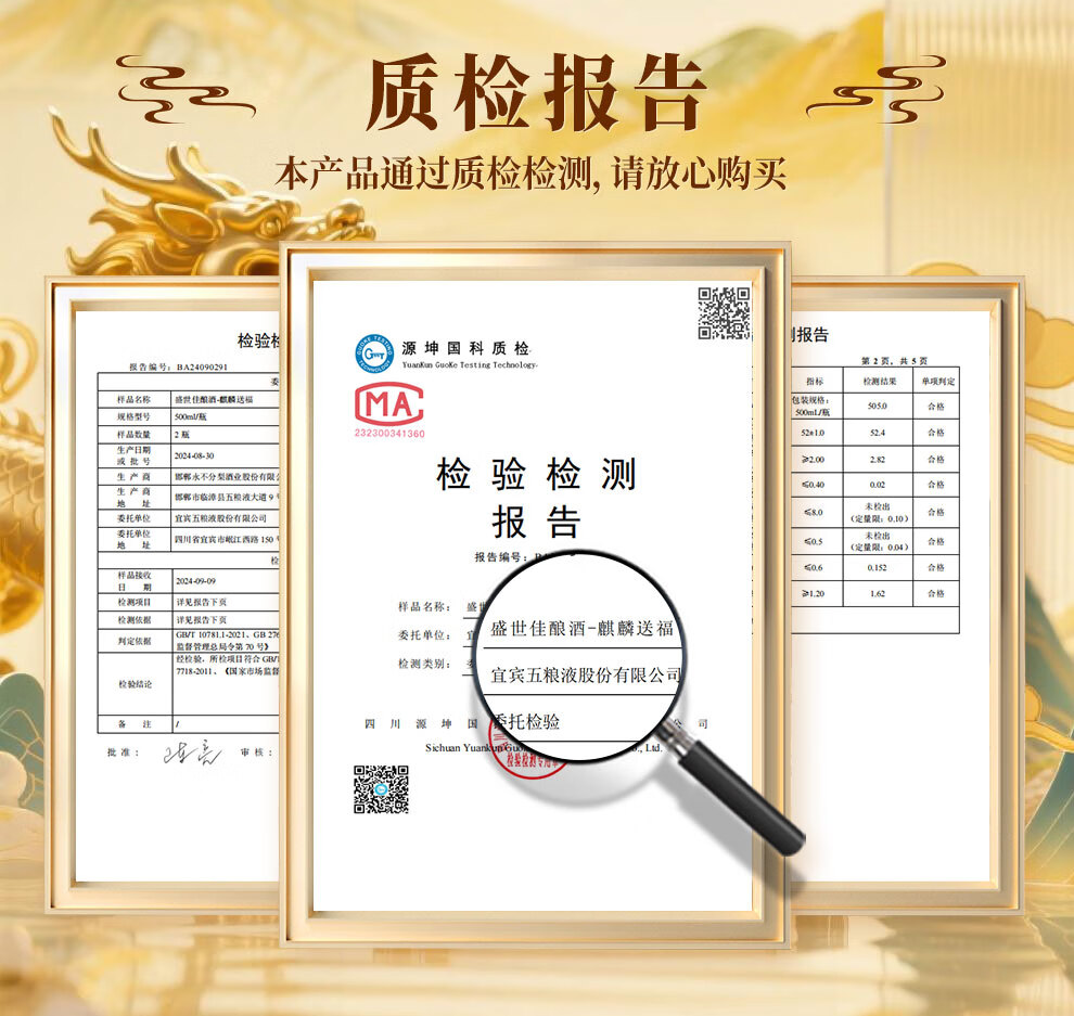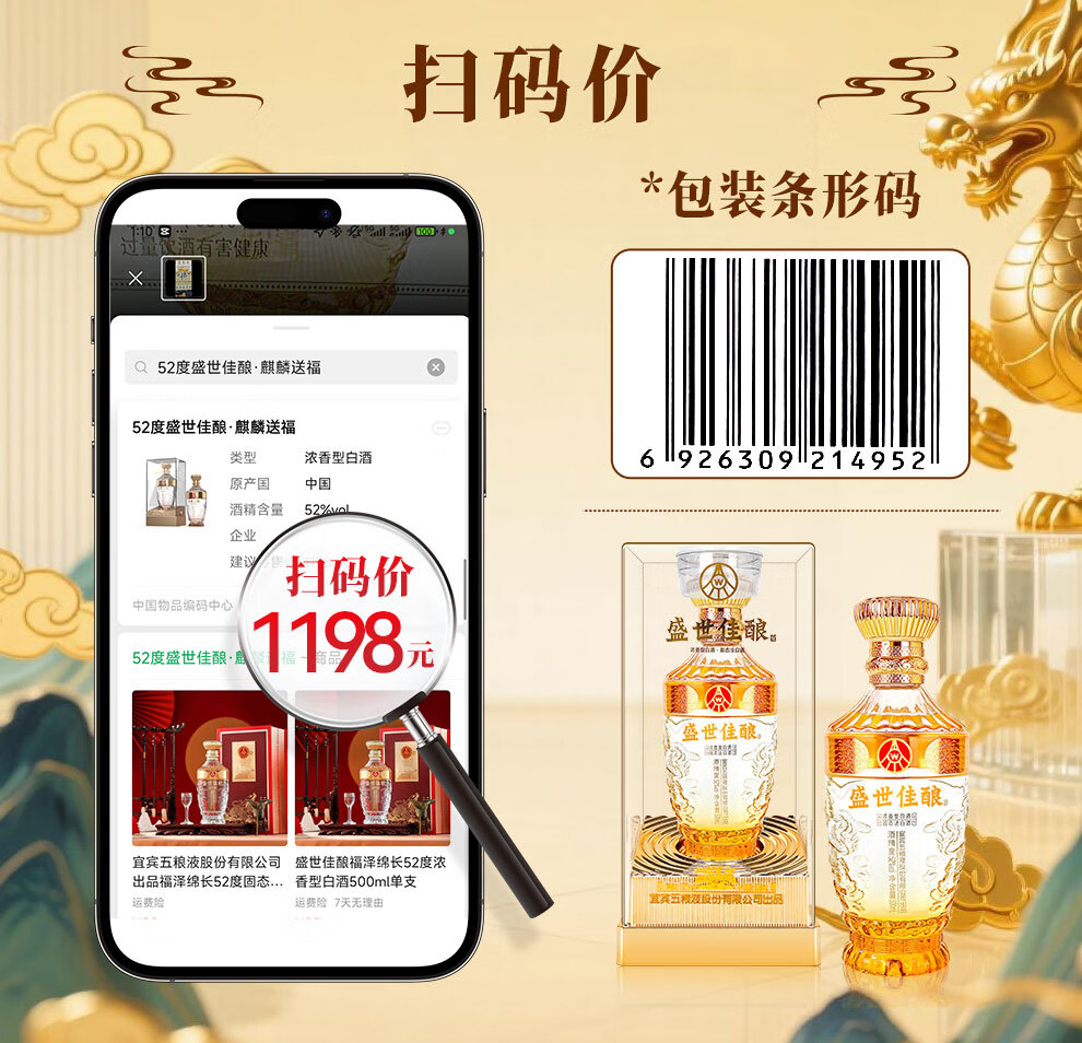 Produced by Wuliangye Co., Ltd. Luzhou-flavor liquor grain solid fermentation ration wine wedding banquet gift wine 52 degrees 500mL 1 bottle Shengshi fine wine Kirin blessing