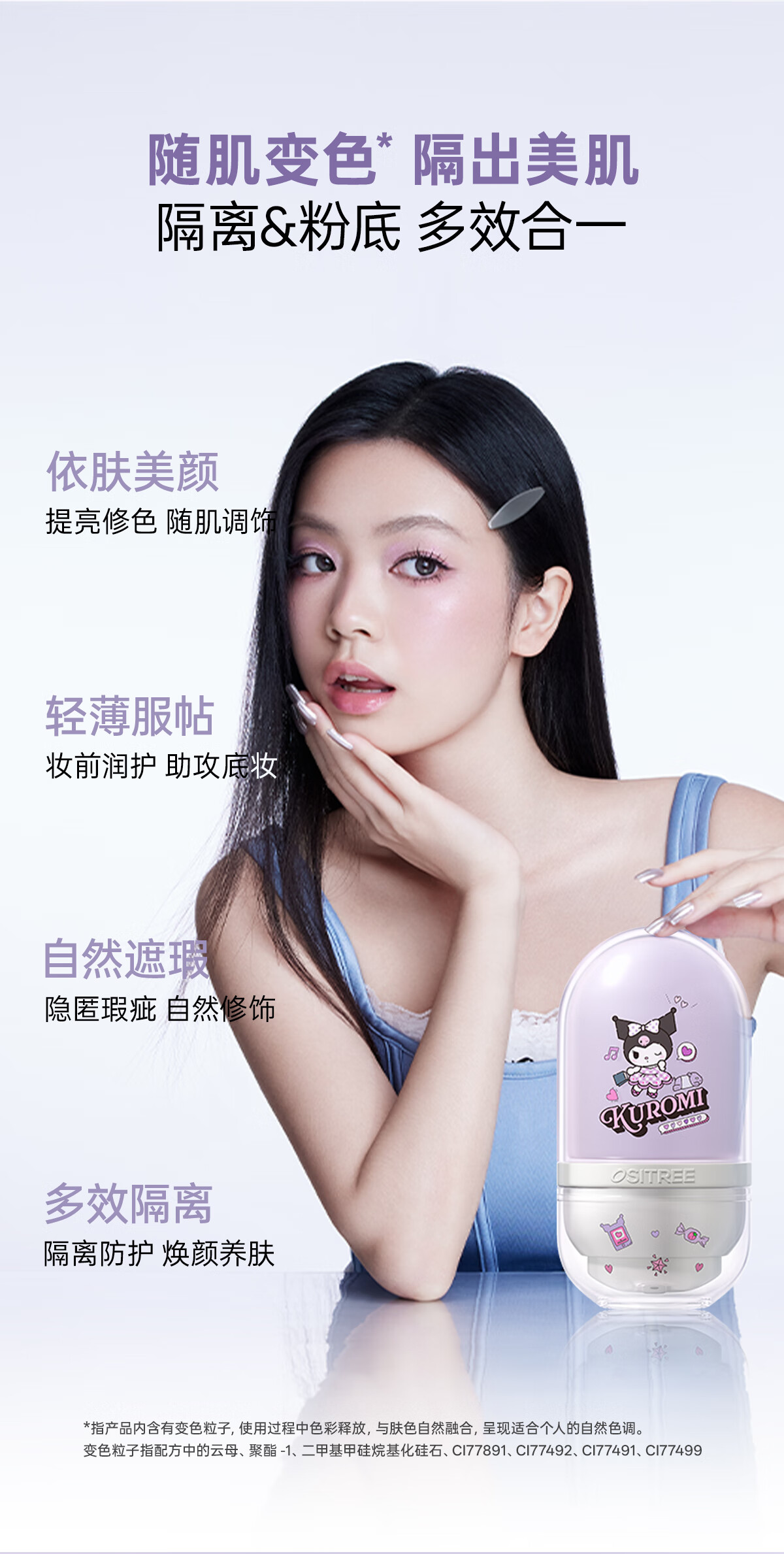 Ositree KUROMI Cooperation Ositree Color Changing Isolation Cream Makeup Primer Sanrio Authorized Genuine Classic Color Changing Lavender Purple 32g