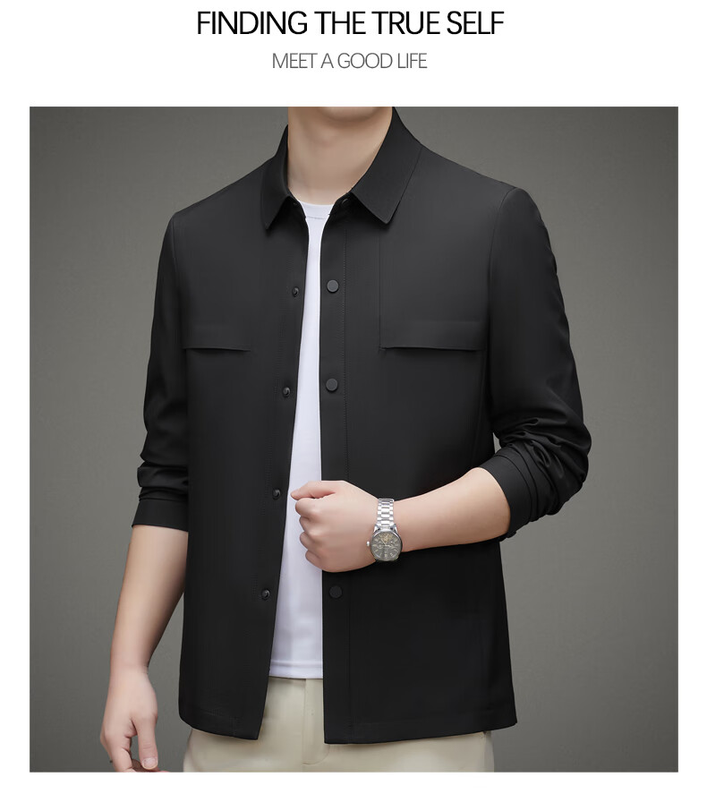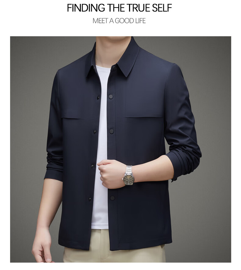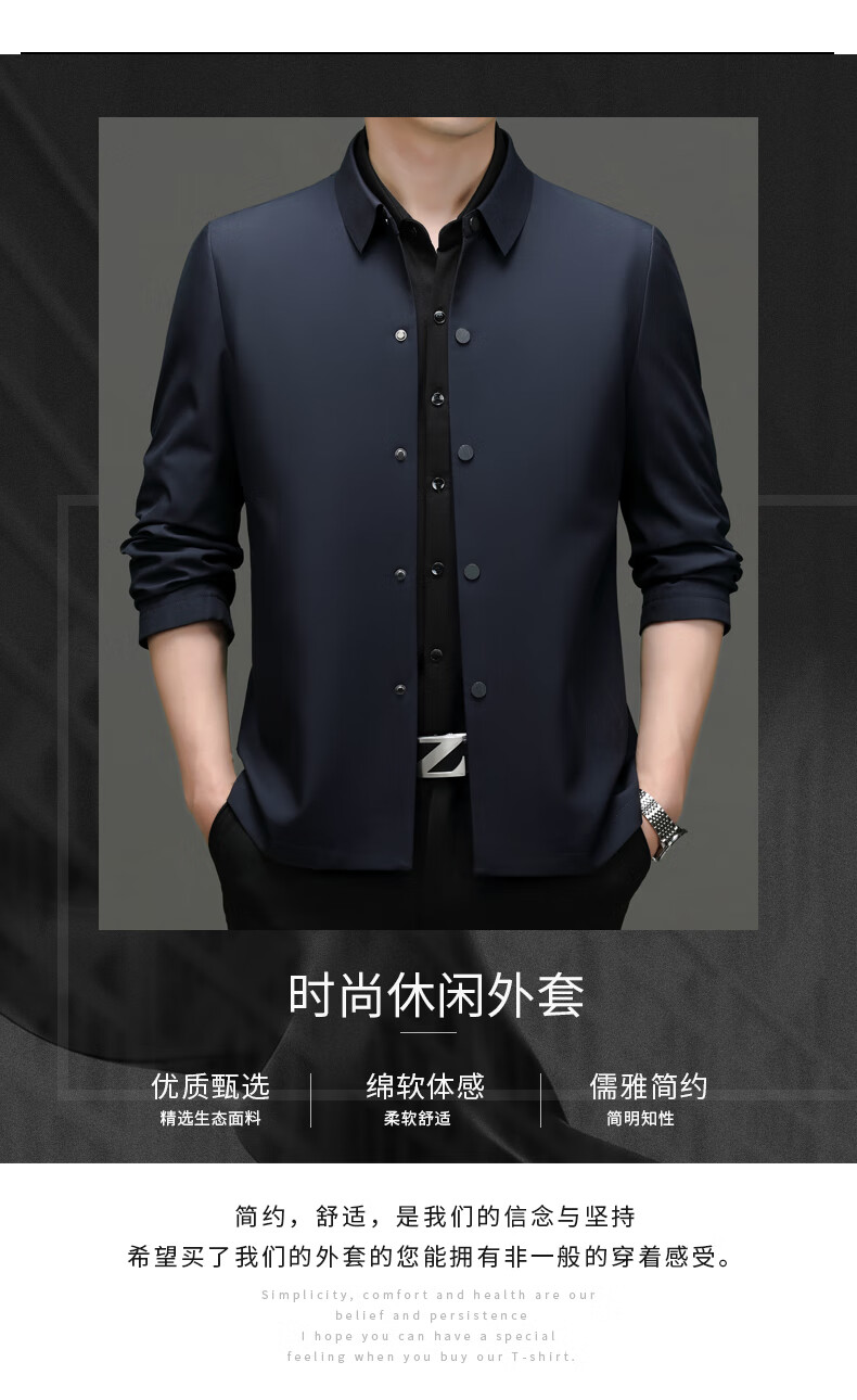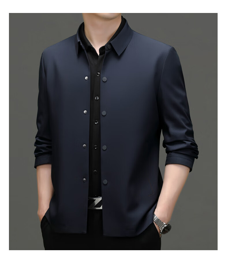 KBXNG New Executive Outer Jacket Men's Casual Button Business Jacket Middle-aged Top Dad's Clothes Navy &L8313 M /170 Recommended Weight 105-125 Jin