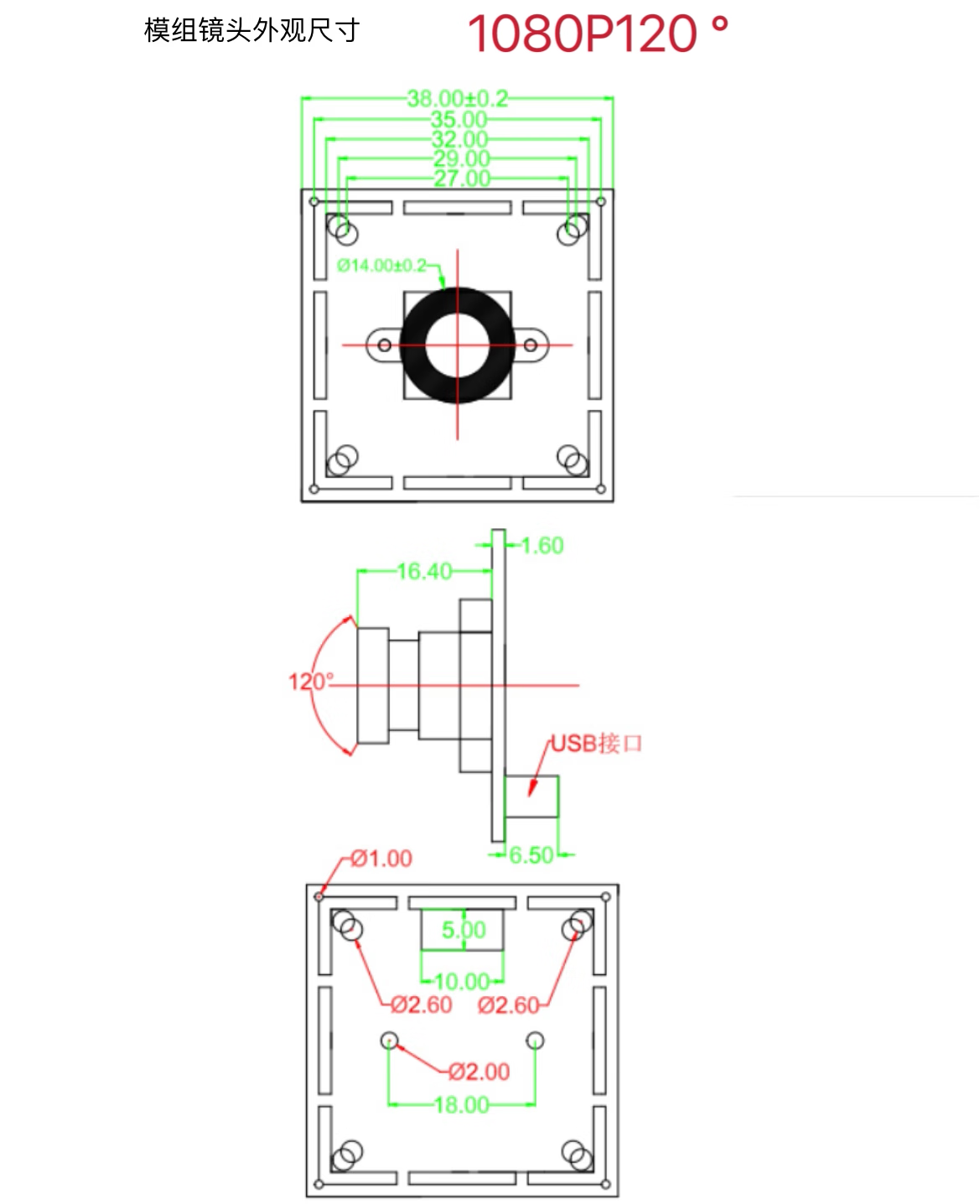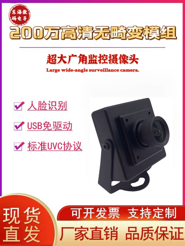 USB industrial camera 2 million high-definition 1080P wide-angle distortion-free module 720P face recognition Android uvc 720P_3.6mm with distortion (140 degrees) + shell black