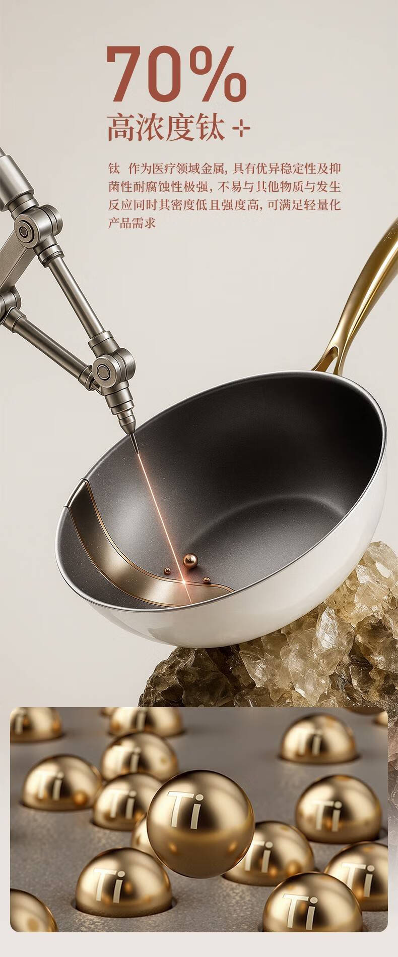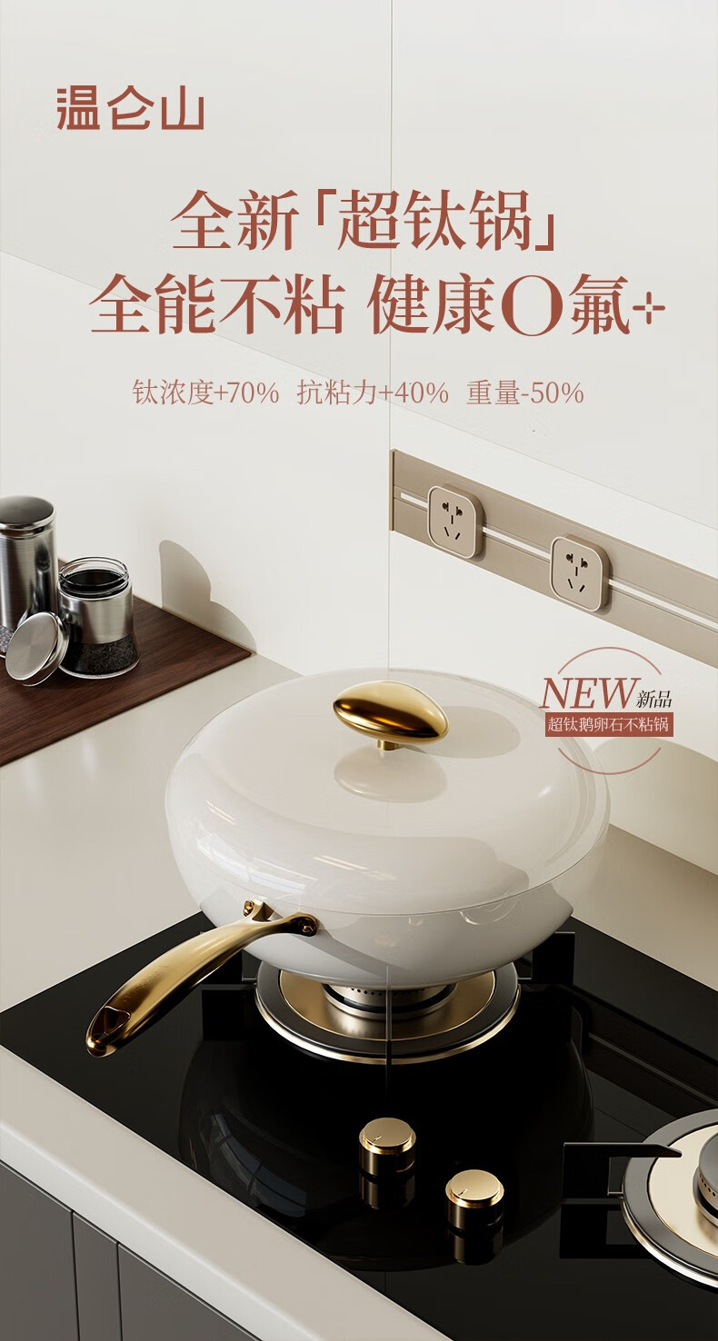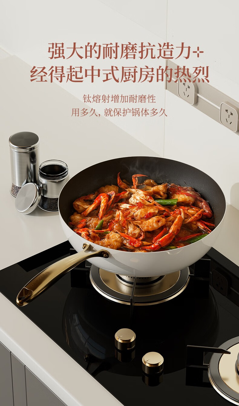 Wenlun Mountain cobblestone ultra-titanium non-stick wok household cooking pot uncoated induction cooker gas stove ultra-titanium stir-fry titanium non-stick wok