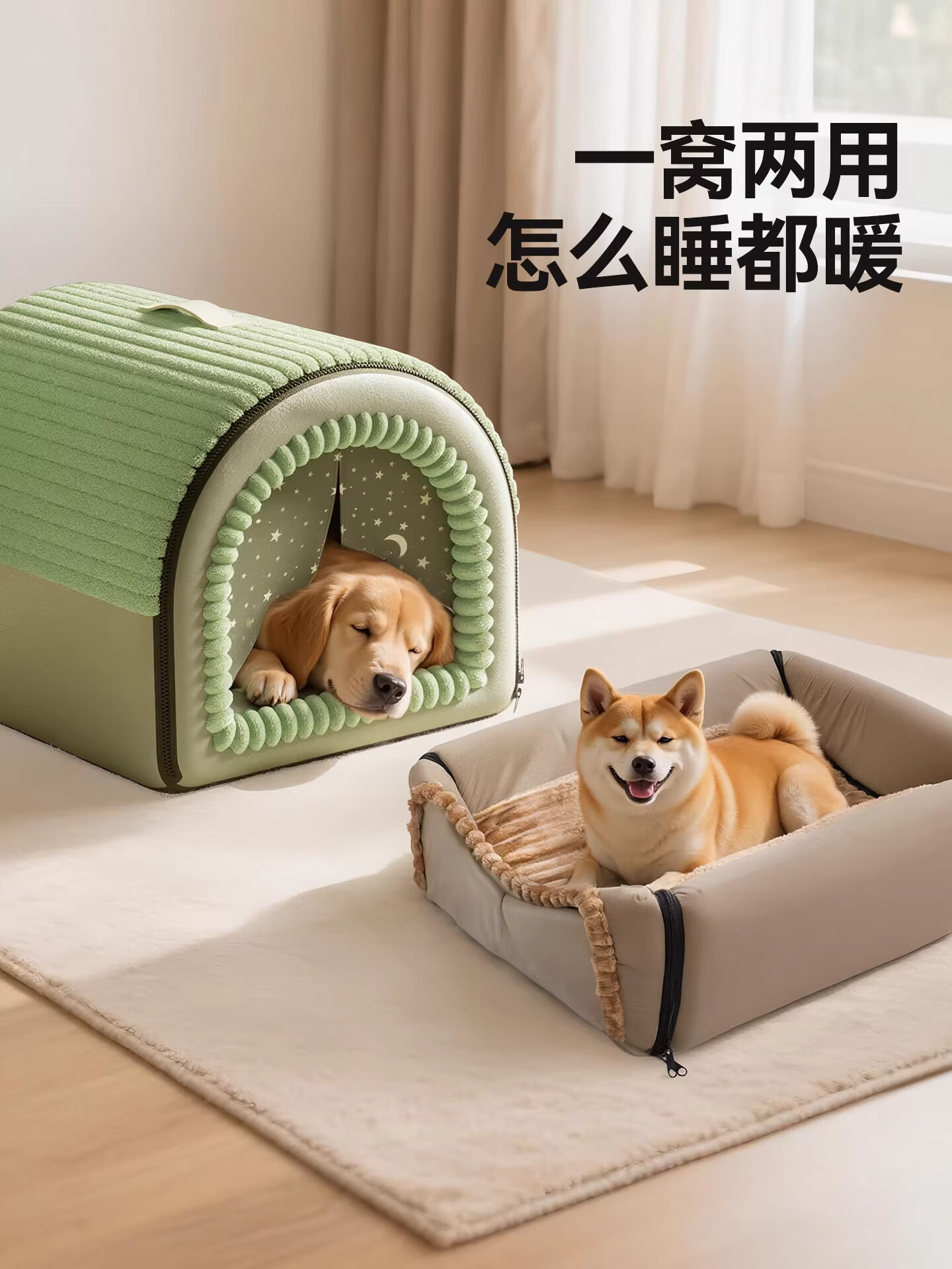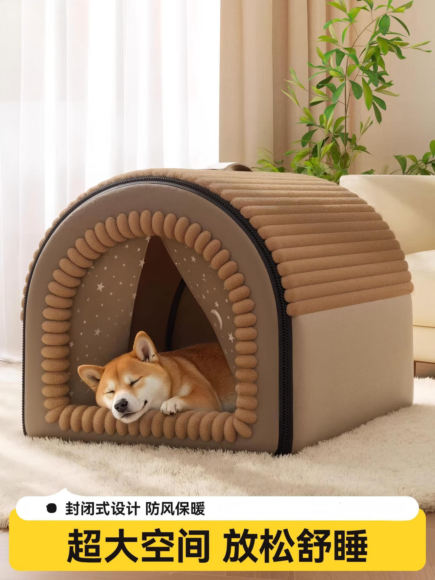 Bei Chuzhong dog house is warm in winter for large, medium and small dogs. Closed dog house is removable and washable. In winter, thickened cat house is integrated for play and sleeping. Milk apricot brown house nest - XL size. Recommended within 30 catties. Closed, thickened and warm. Extra large space/not collapsed.