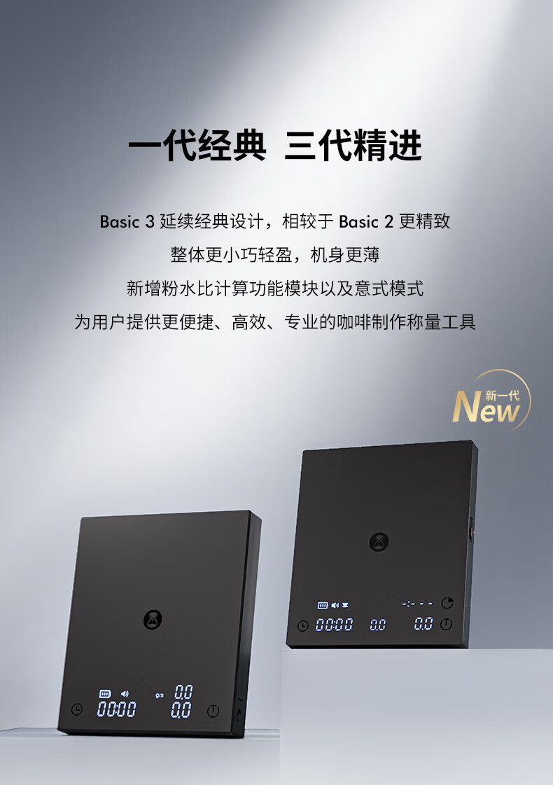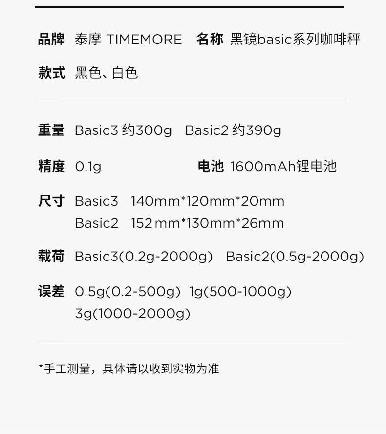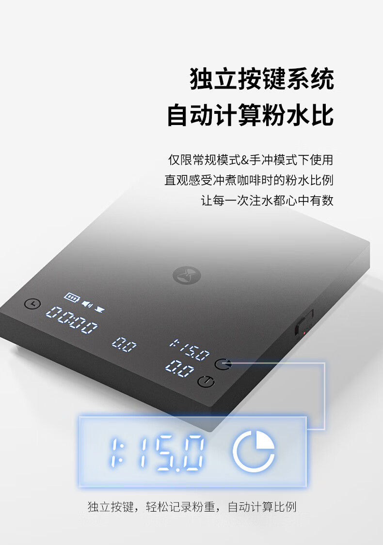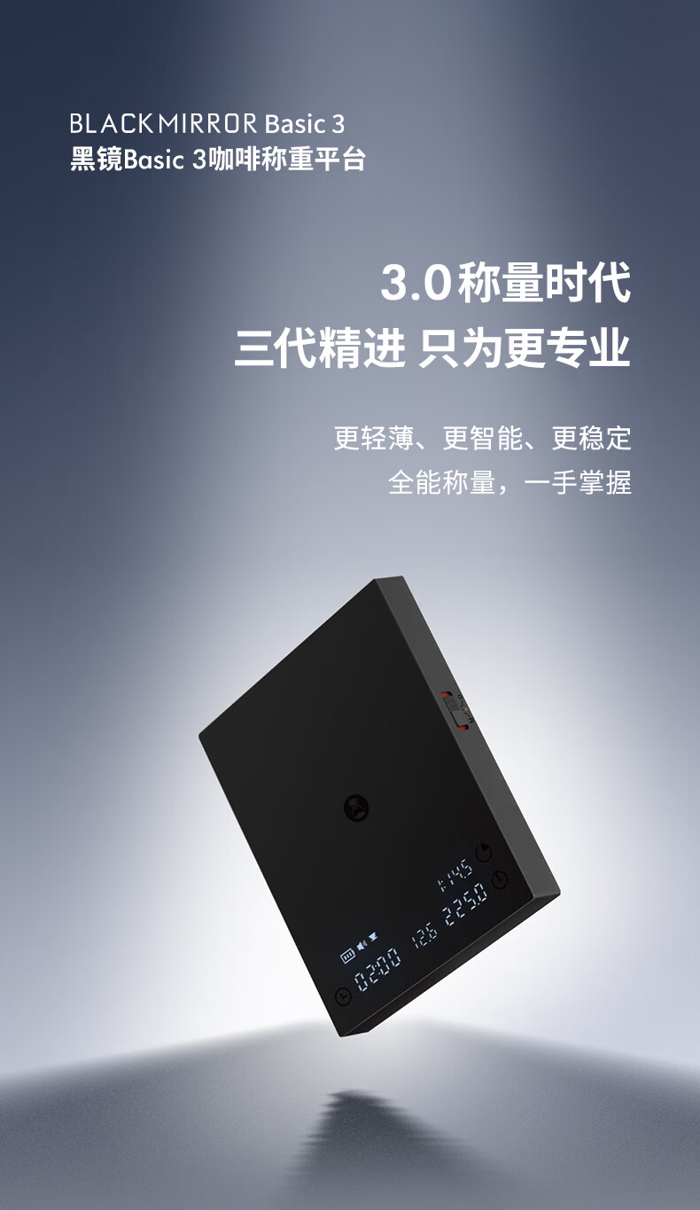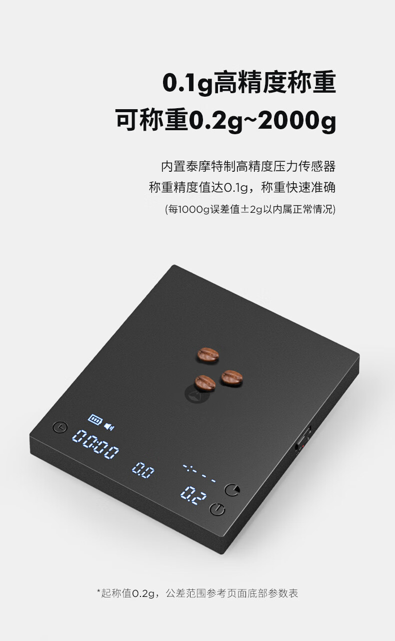 Taimo Black Mirror BASIC Italian hand-brewed coffee scale Bar counter can time and weigh coffee electronic scale 0.1g-2kg Black Mirror basic3 coffee electronic scale - black