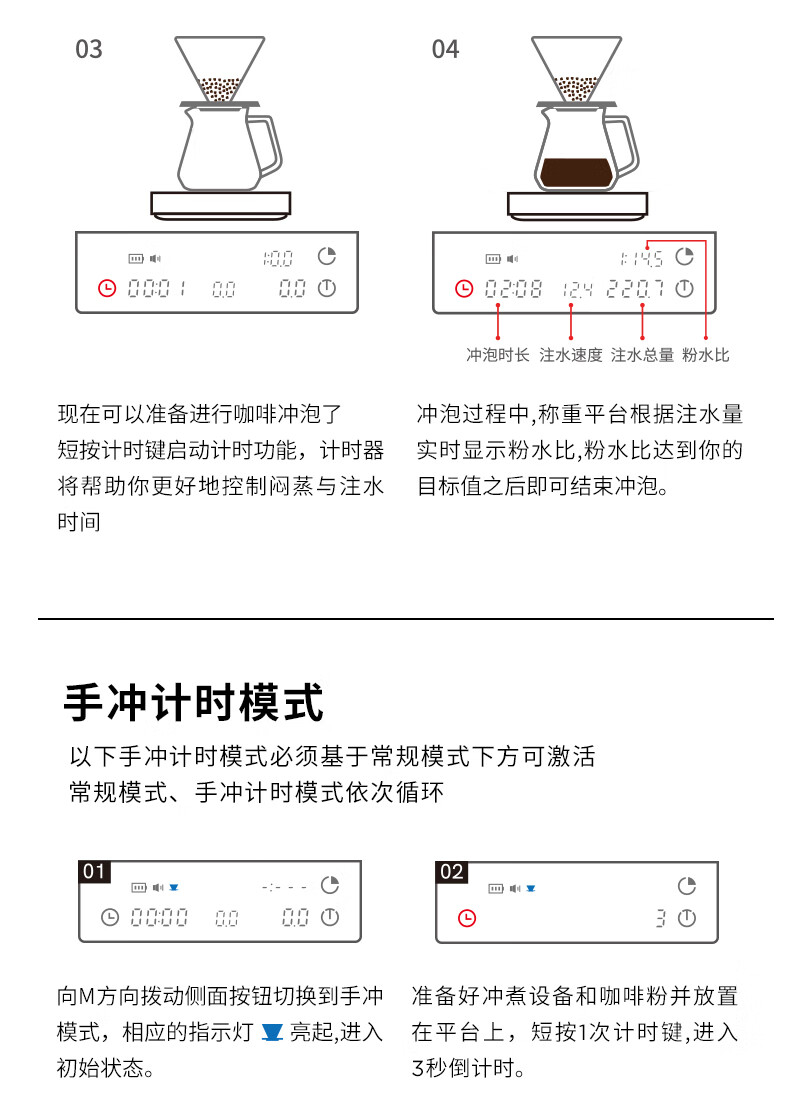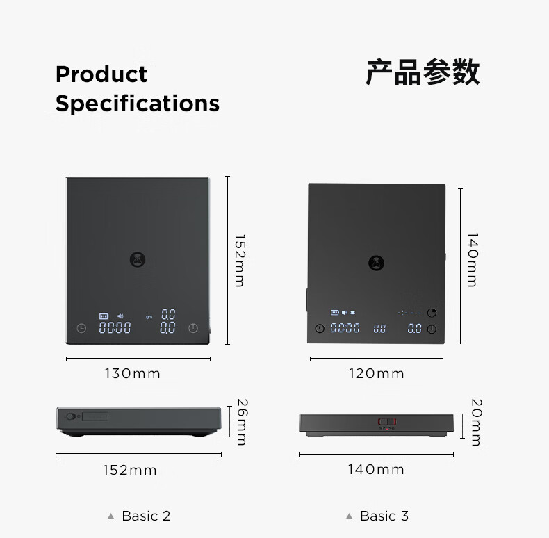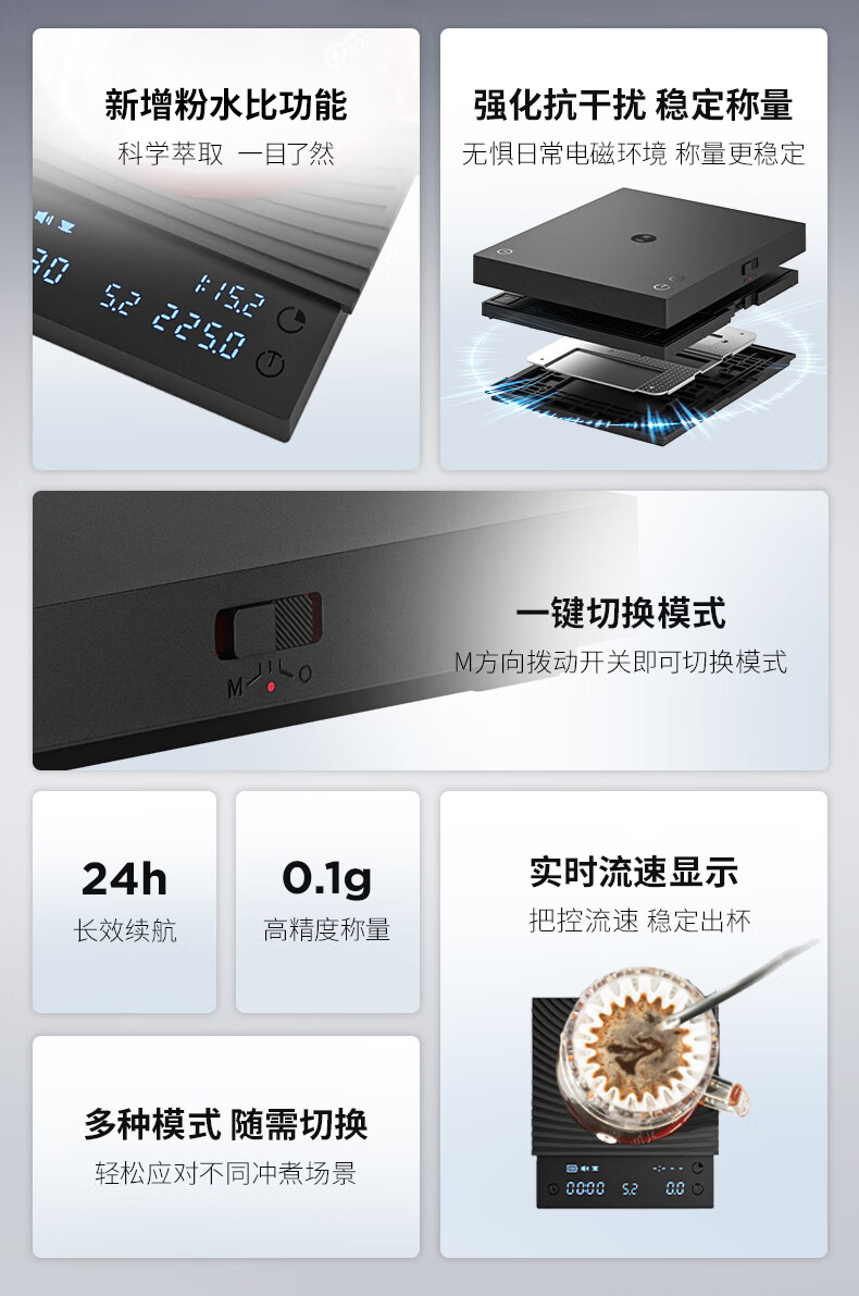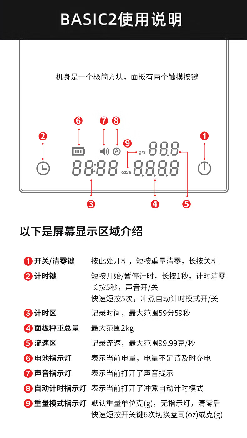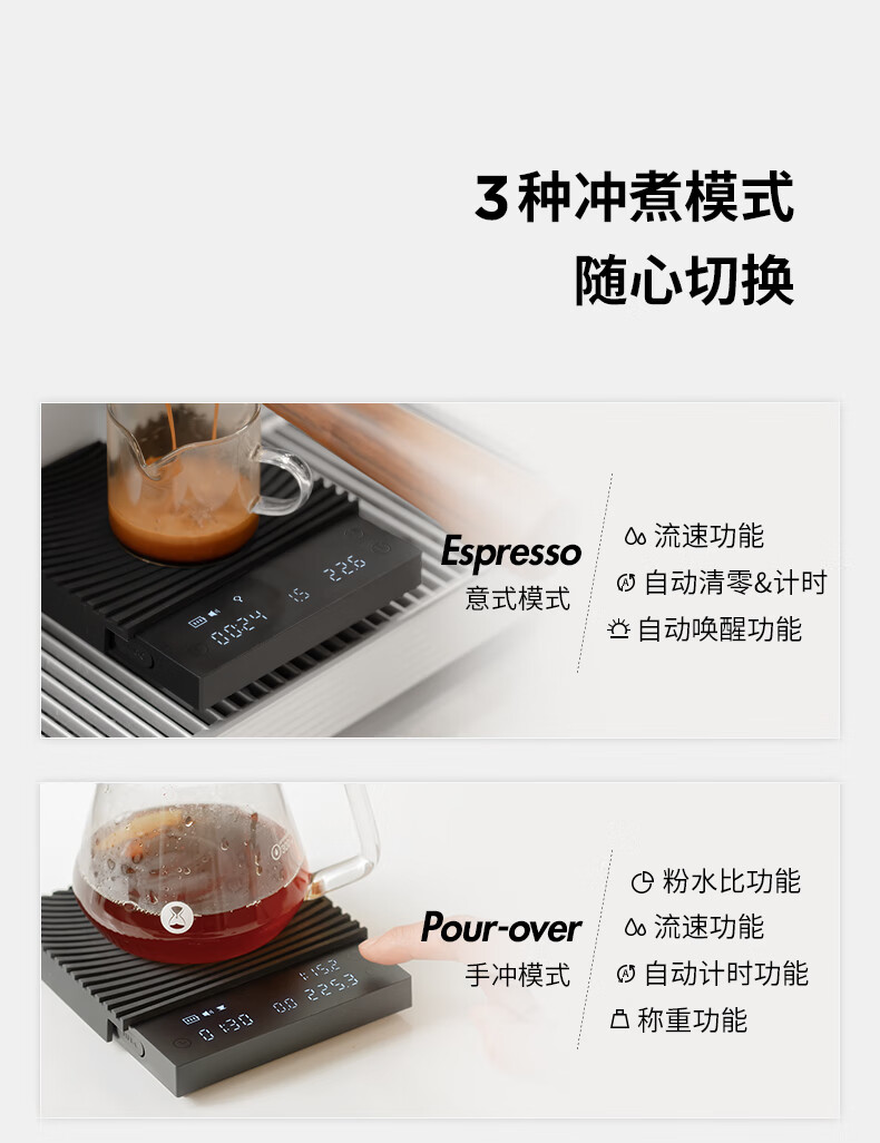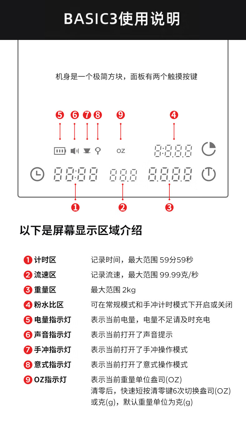 Taimo Black Mirror BASIC Italian hand-brewed coffee scale Bar counter can time and weigh coffee electronic scale 0.1g-2kg Black Mirror basic3 coffee electronic scale - black