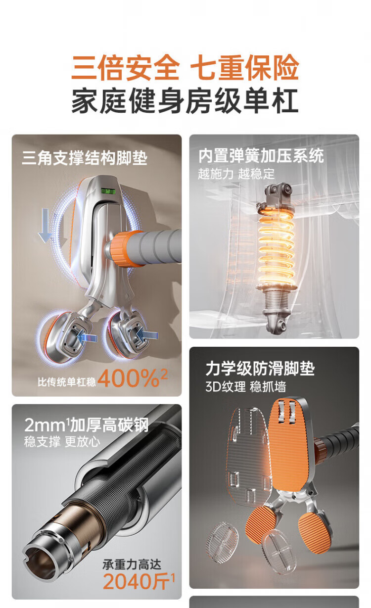 GERTHRON German brand horizontal bar pull-up device indoor home punch-free adjustable multi-functional ring fitness equipment three-legged support upgrade 70-95cm super load-bearing and not easy to deform