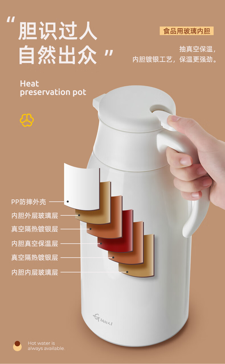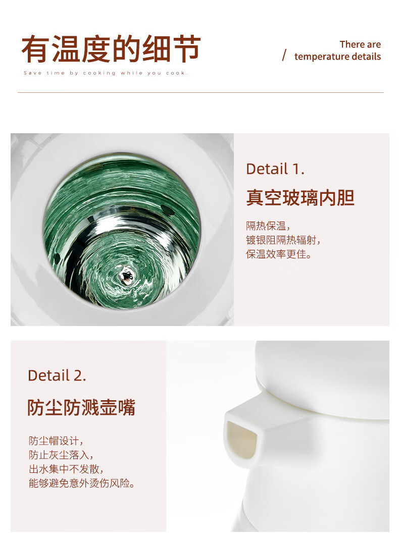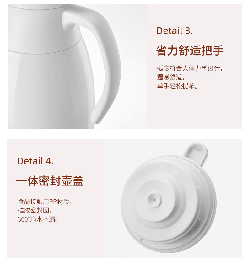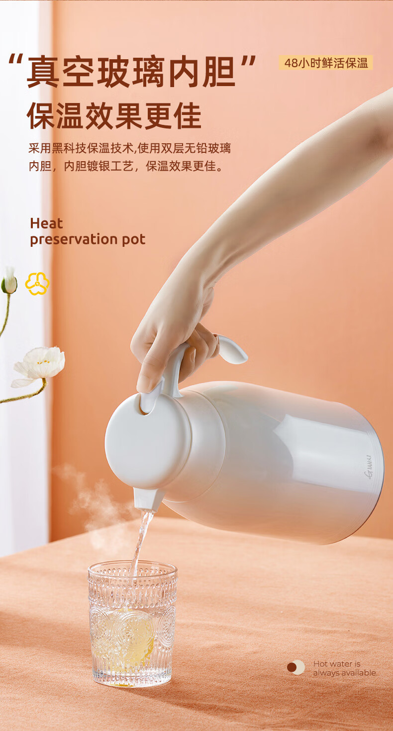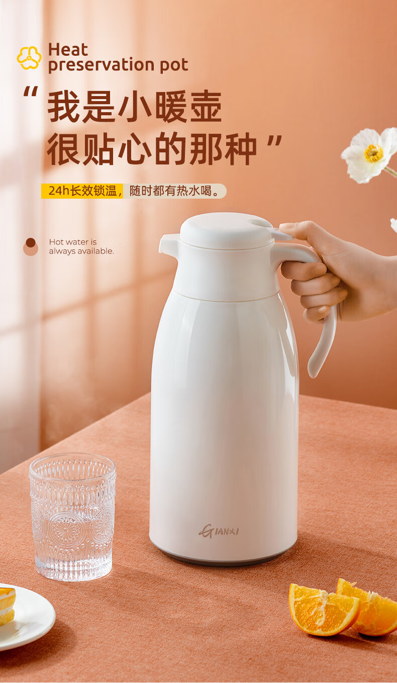 Fat Donglai's same type of insulated kettle for home use large-capacity portable thermos for student dormitories thermos tea bottle glass white (dust-proof spout long-lasting heat preservation) 1000ml
