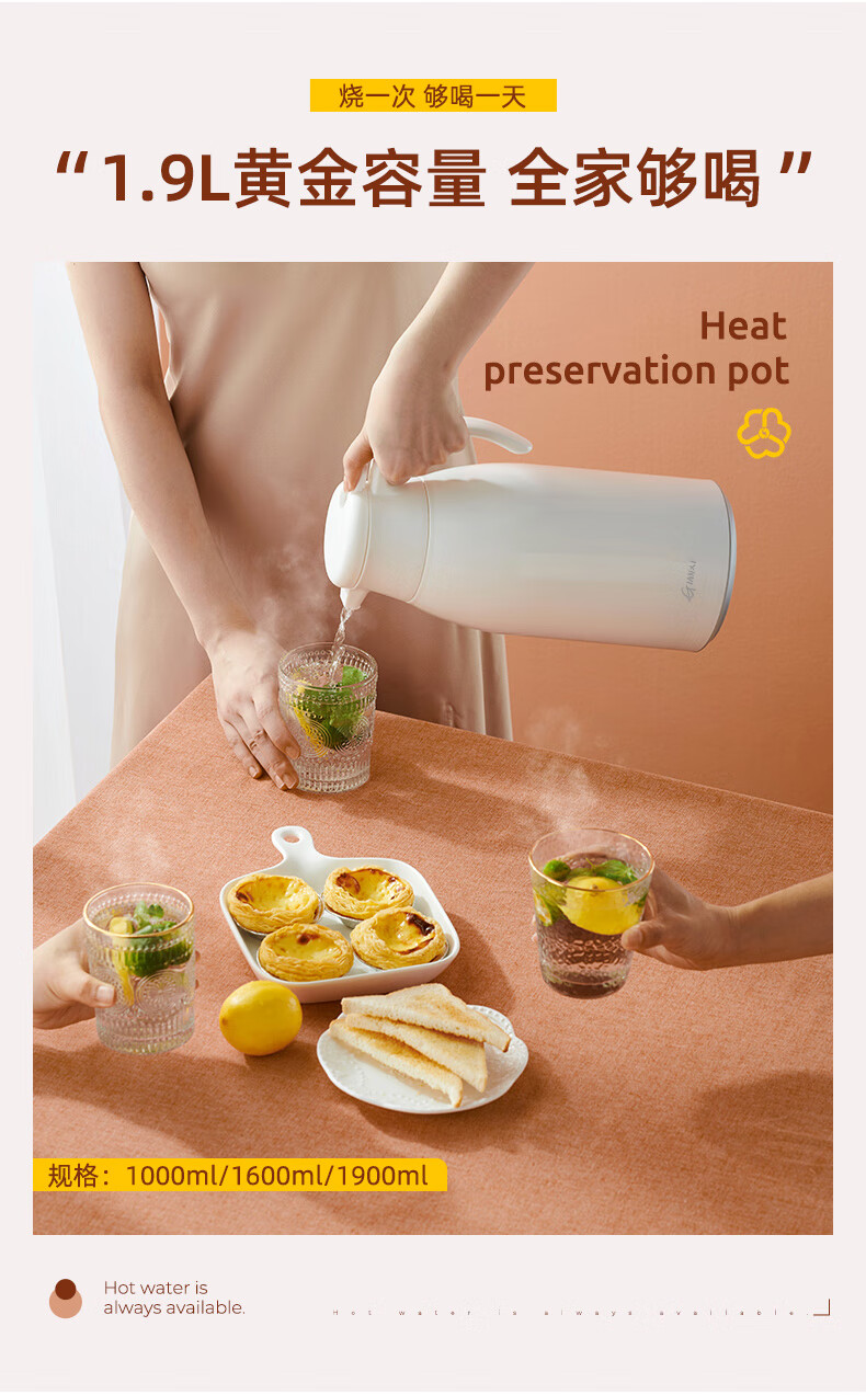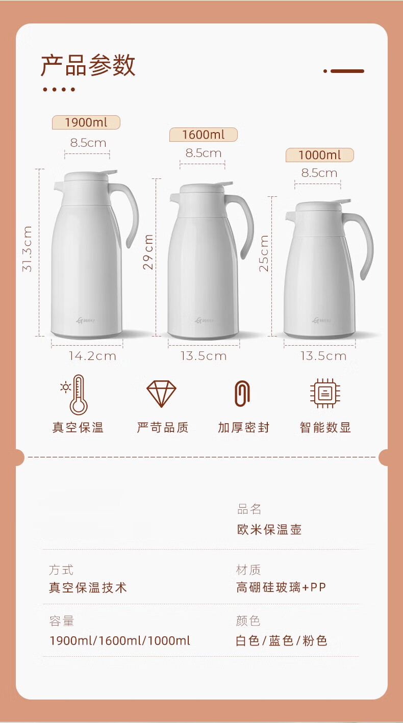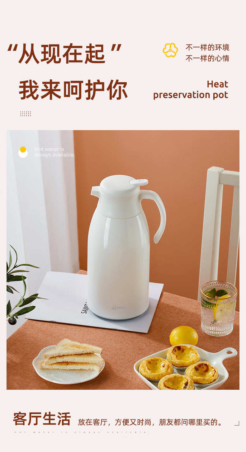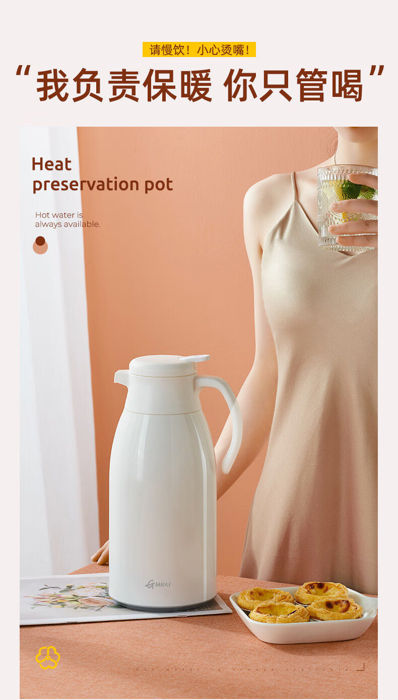 Fat Donglai's same type of insulated kettle for home use large-capacity portable thermos for student dormitories thermos tea bottle glass white (dust-proof spout long-lasting heat preservation) 1000ml