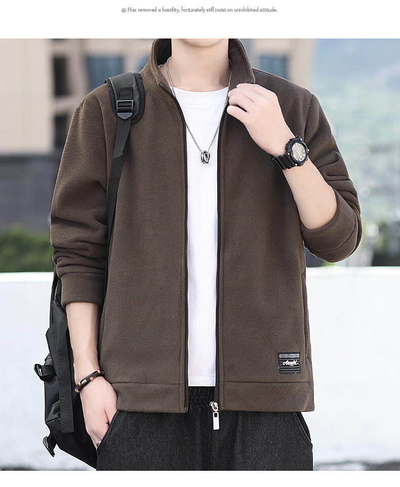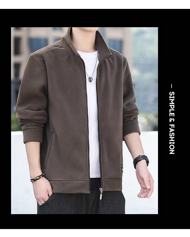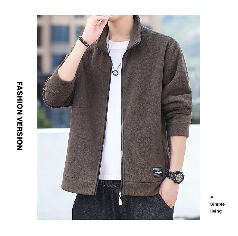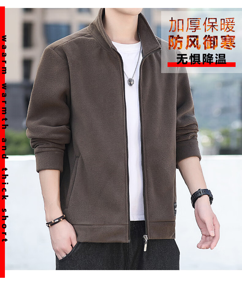 Polar fleece jacket for men autumn and winter 2025 new spring and autumn casual cardigan thick cotton T fleece jacket for men brown 2XL 150-165 catties