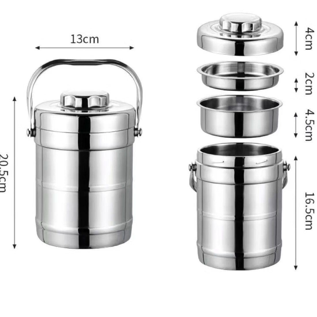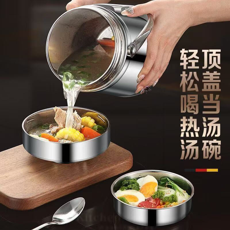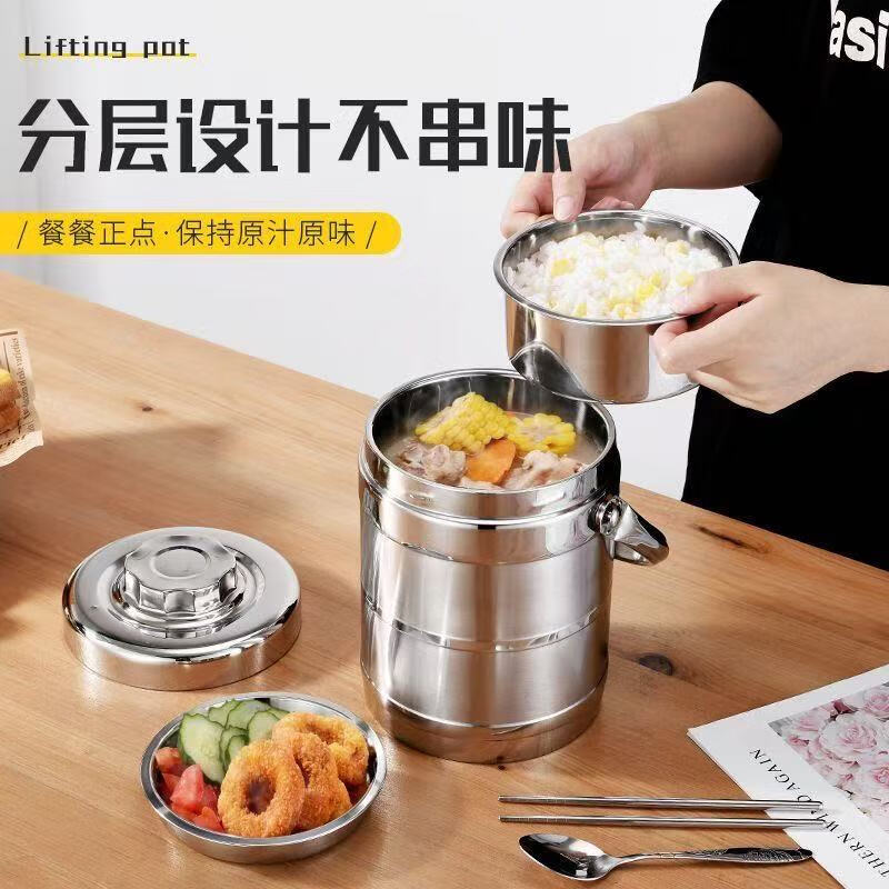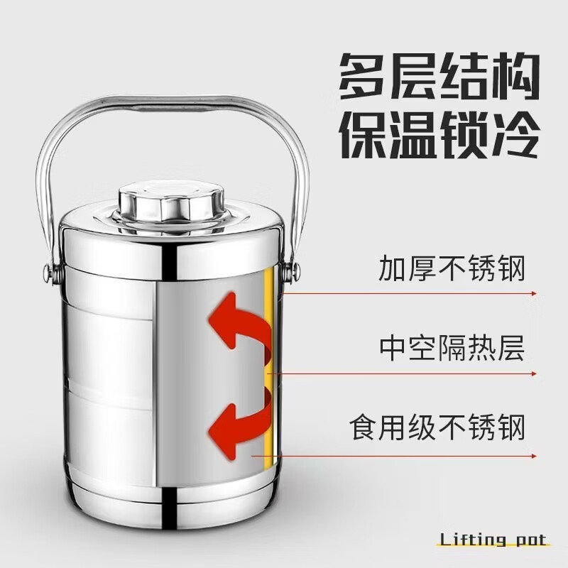 Multi-layer insulated rice bucket, large capacity, double-layered stainless steel insulated lunch box for adults, student lunch box for office workers, stainless steel insulated pot 2.2L