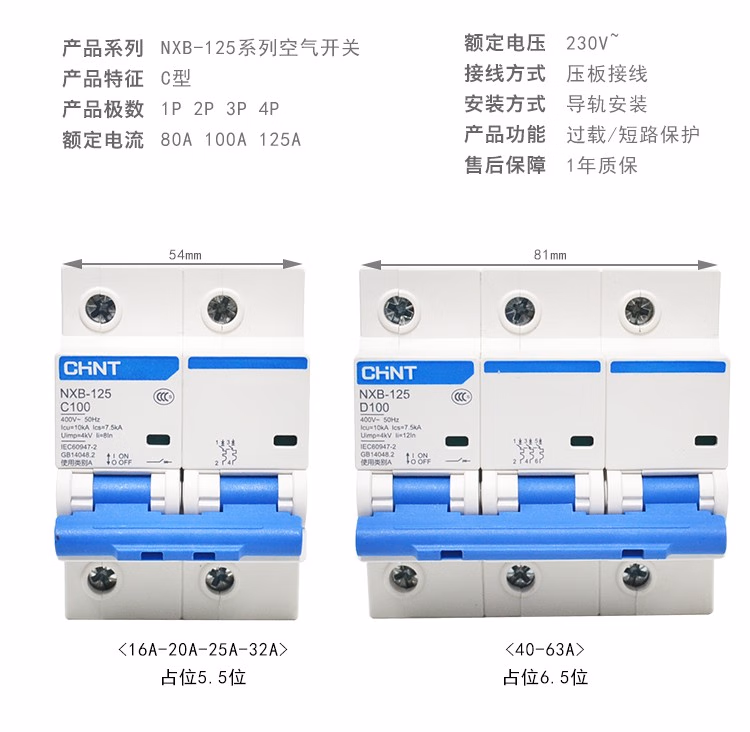 NXB air switch circuit breaker household air switch 1P2P3P4P63A100A three-phase air switch 380V 80A 2P 4p 100A
