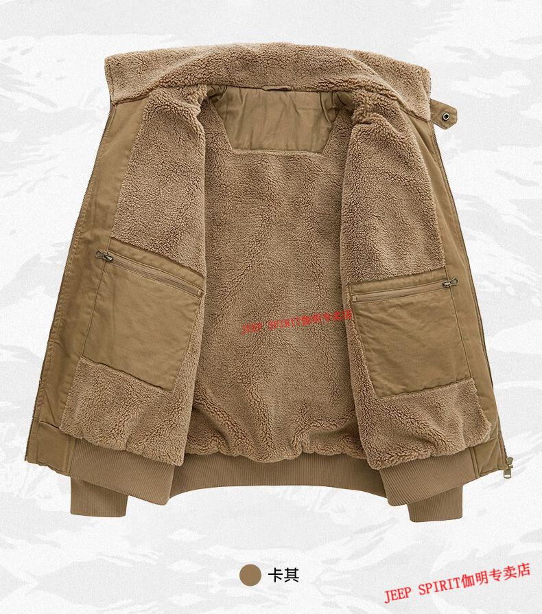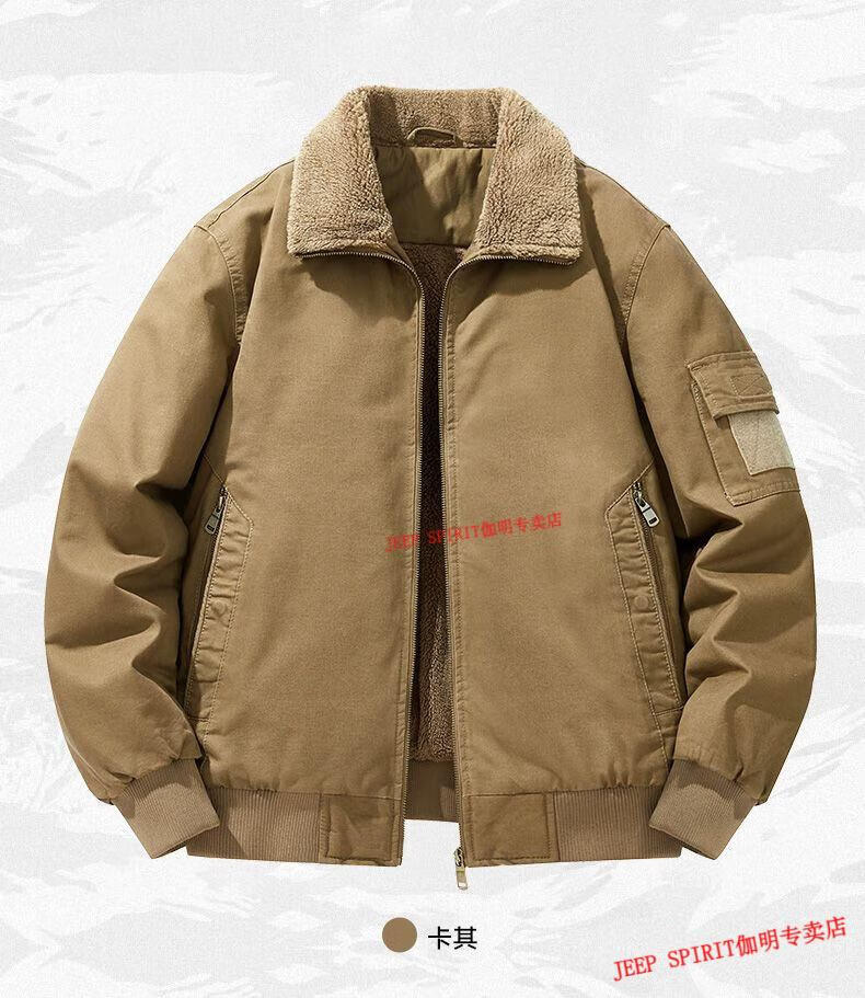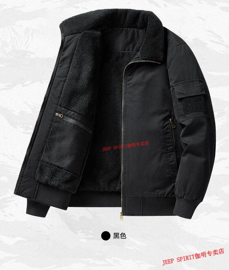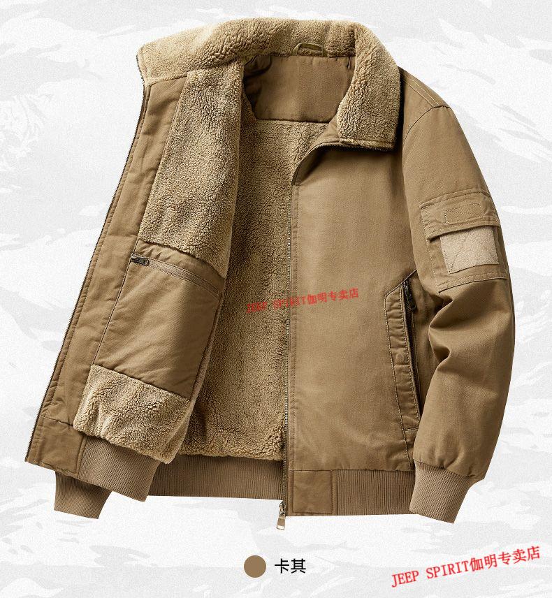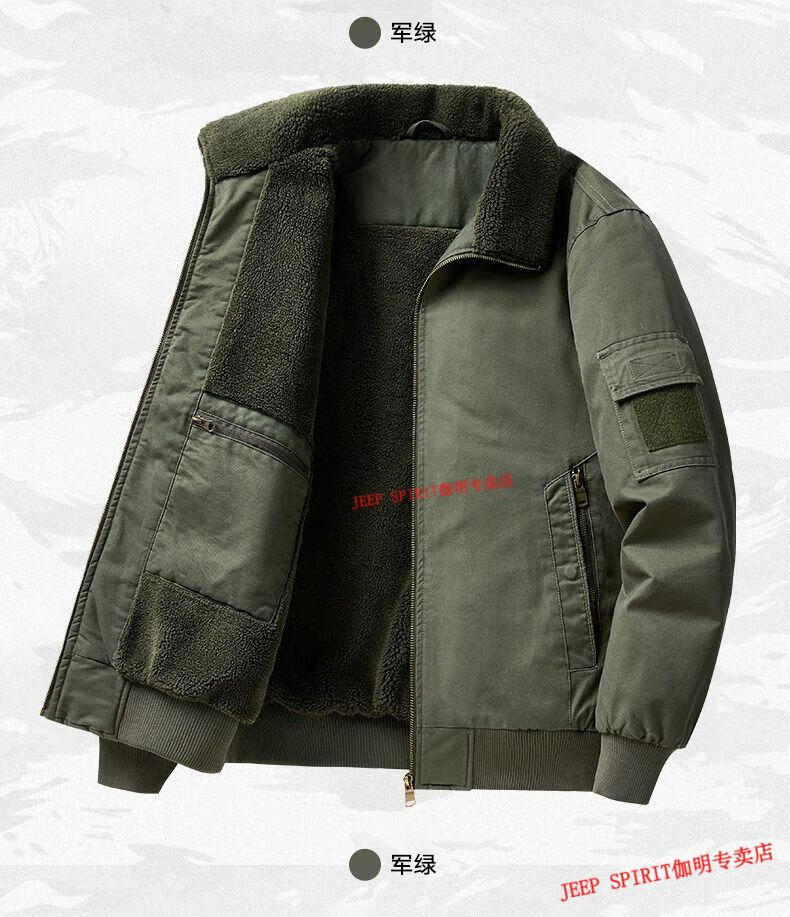 JEEP SPIRIT Jeep Air Force Pilot Jacket Men's Winter Plush Thickened Cotton Loose Men's Middle-aged Cotton Jacket Fur Collar Military Green (Dark) M (100-125 Jin)