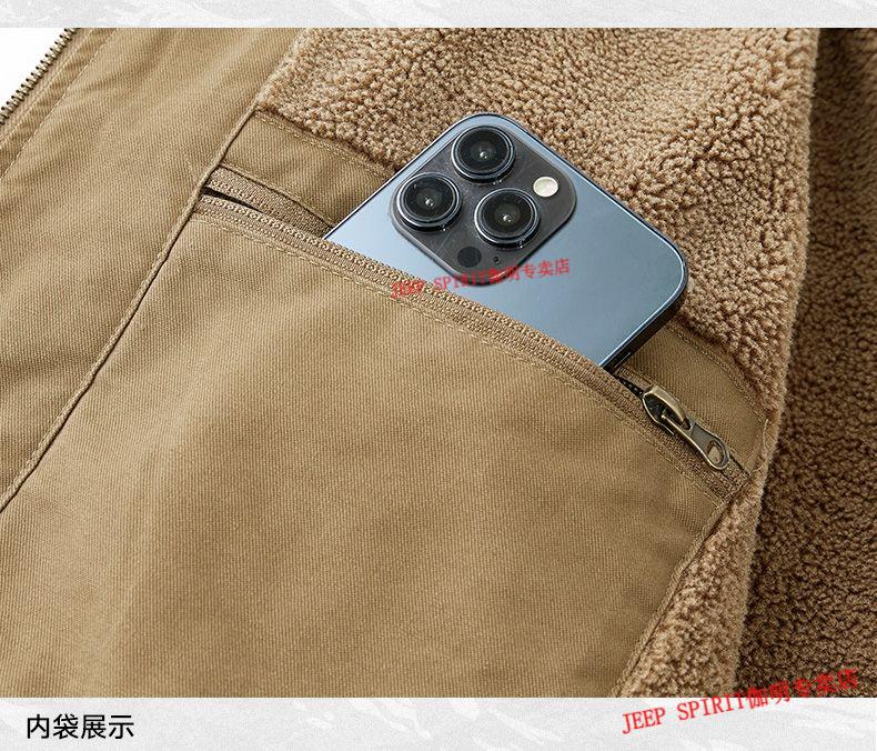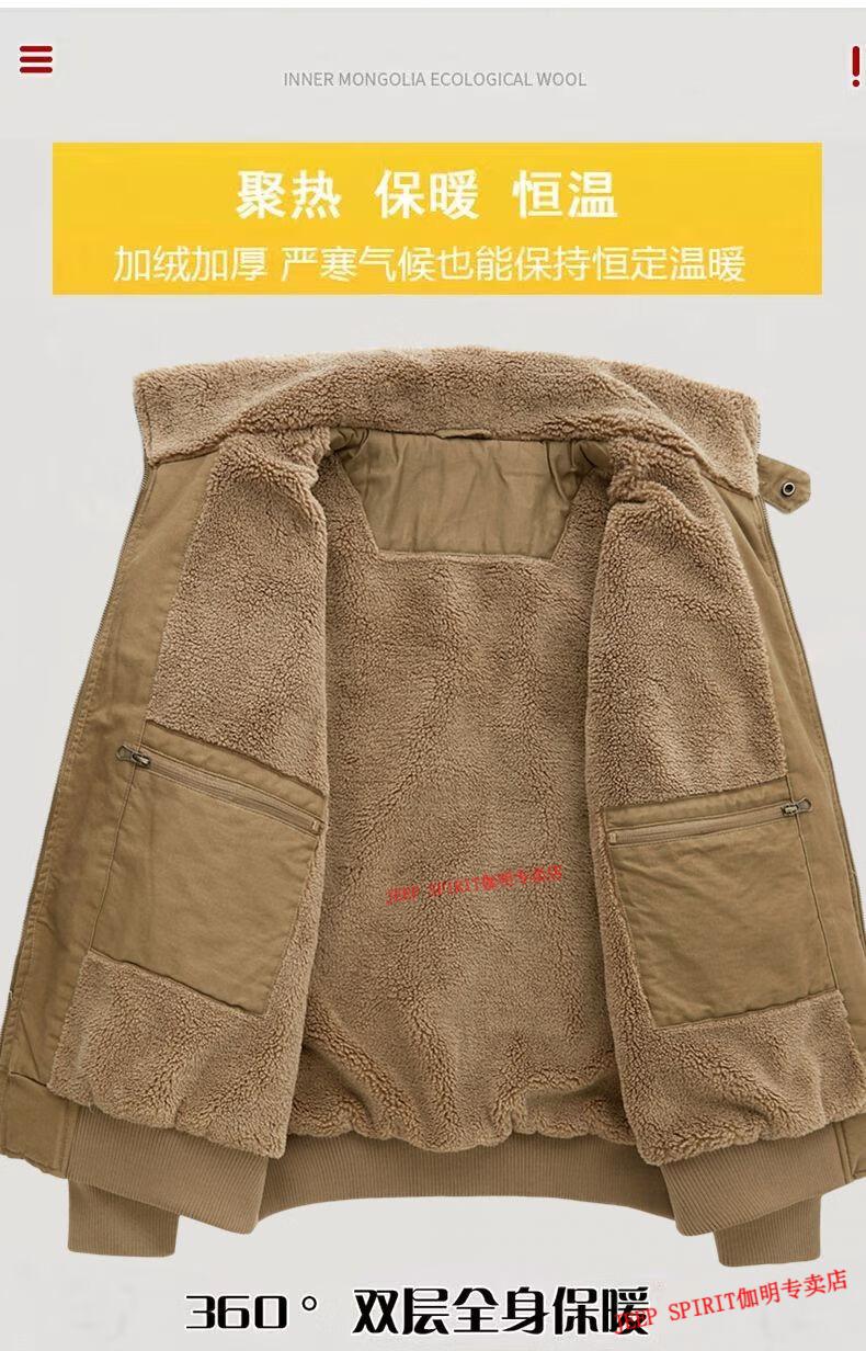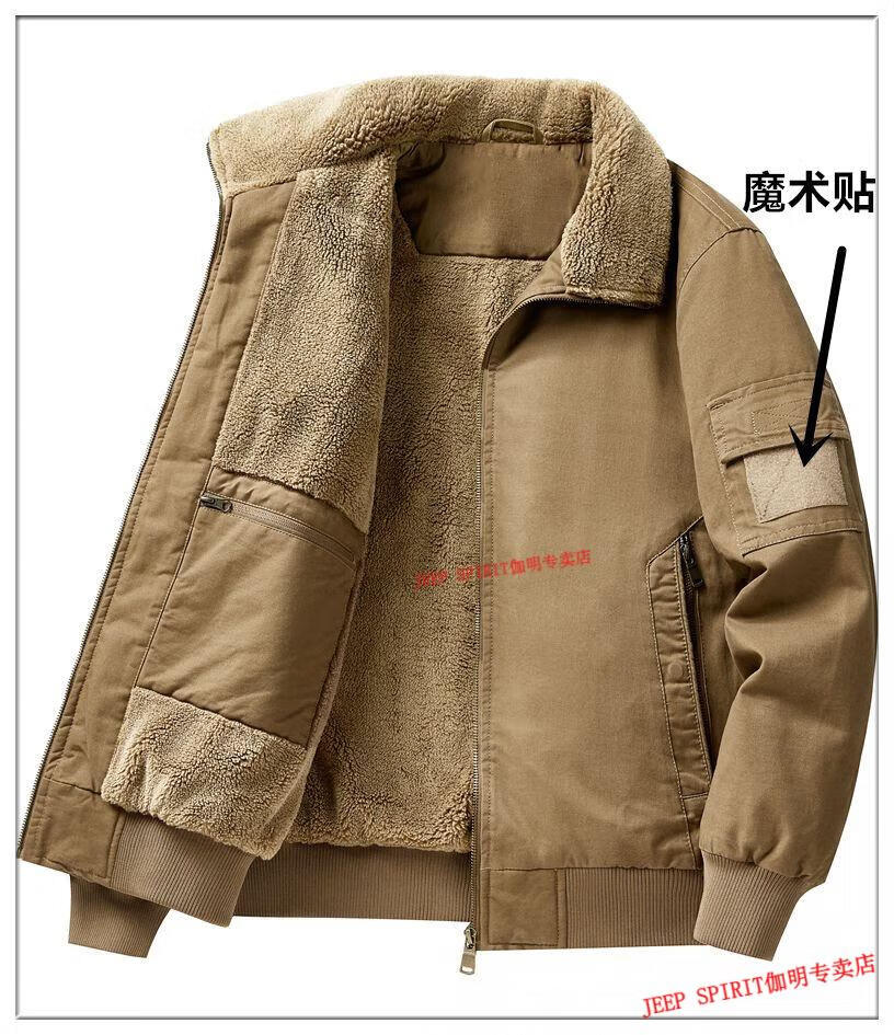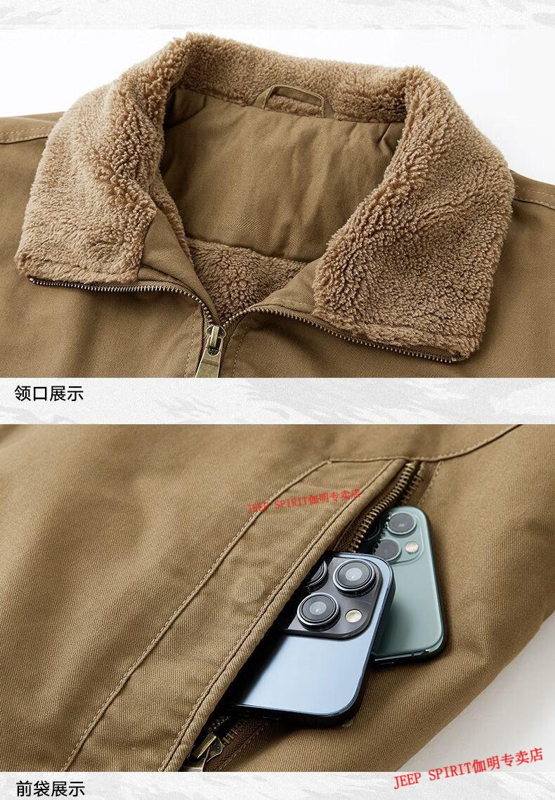 JEEP SPIRIT Jeep Air Force Pilot Jacket Men's Winter Plush Thickened Cotton Loose Men's Middle-aged Cotton Jacket Fur Collar Military Green (Dark) M (100-125 Jin)