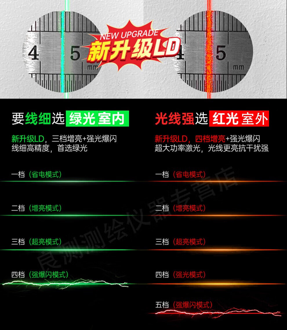 Daige 12-line level laser wall-to-floor red light high-precision outdoor floor-mounting meter red light laser wall-mounting meter super bright 12-line red light simple matching lower level line