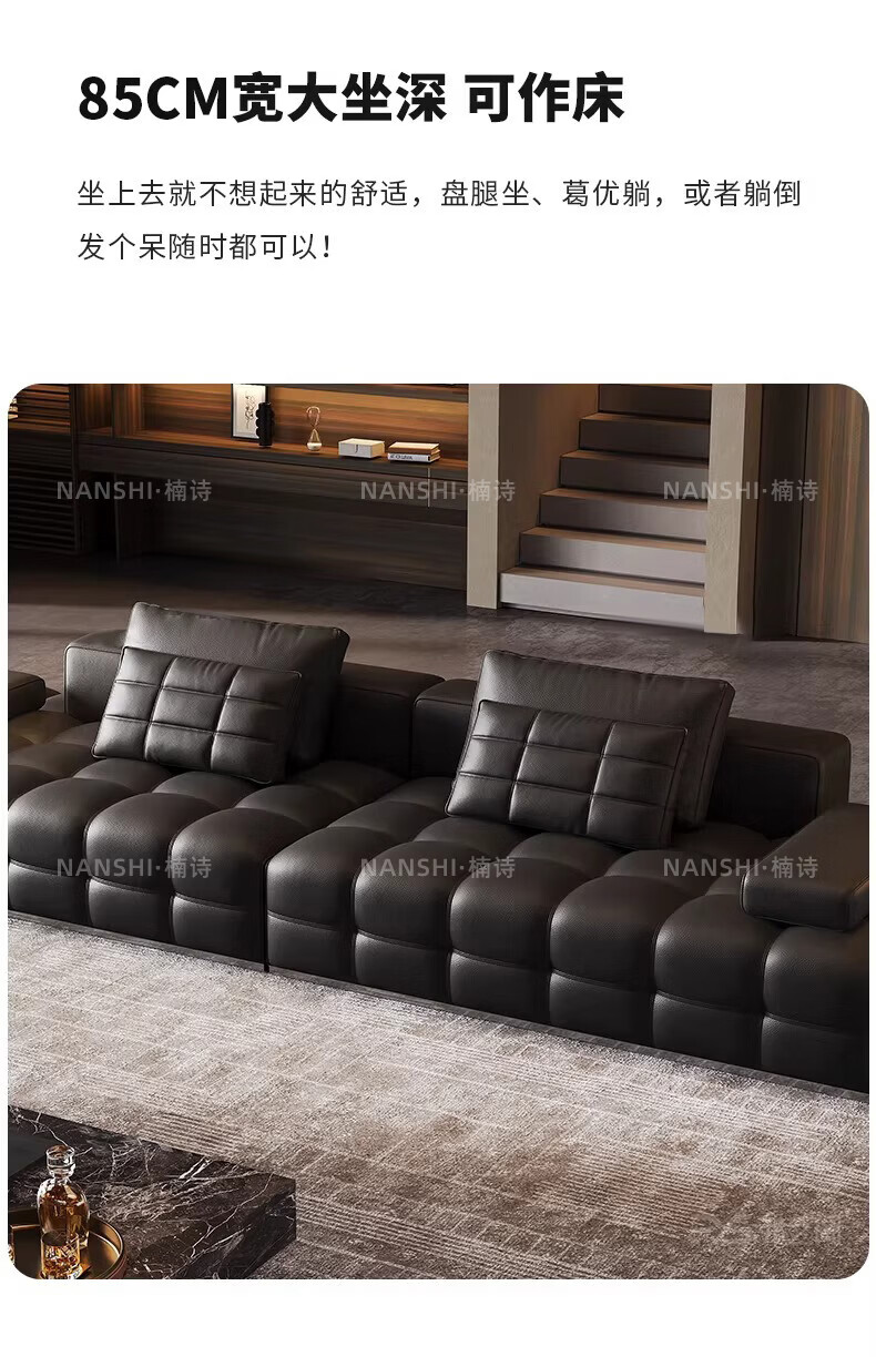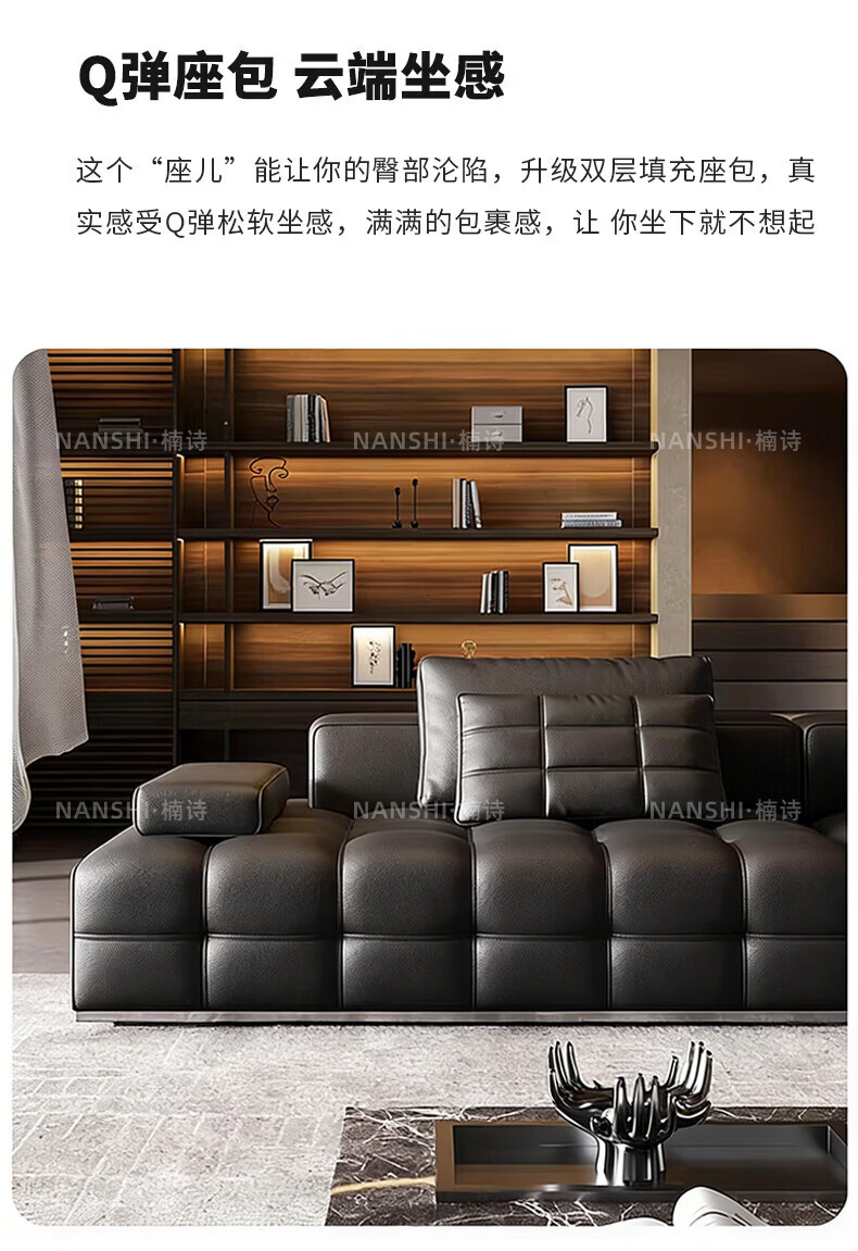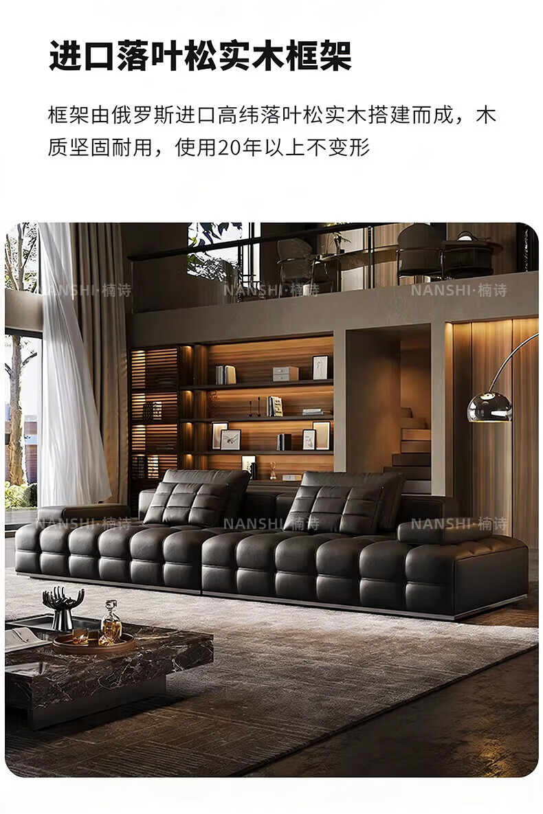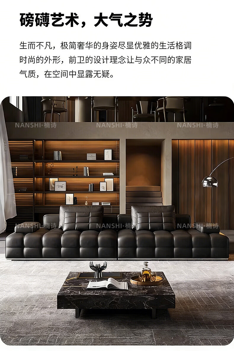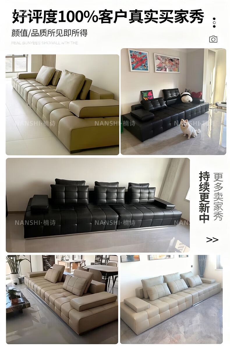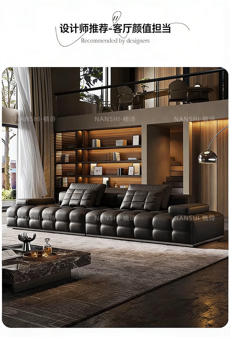 Nanshi home sofa Italian minimalist Lawrence sofa living room small yellow cowhide straight sofa light luxury modern leather art sofa 2.52 meters straight 2.8mm contact surface medium thick green leather extra thick stainless steel bottom frame