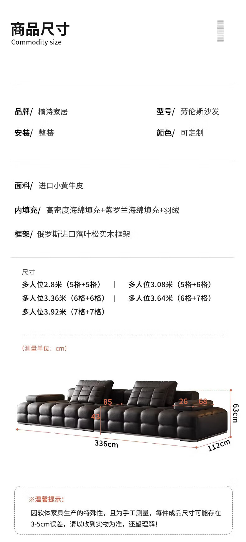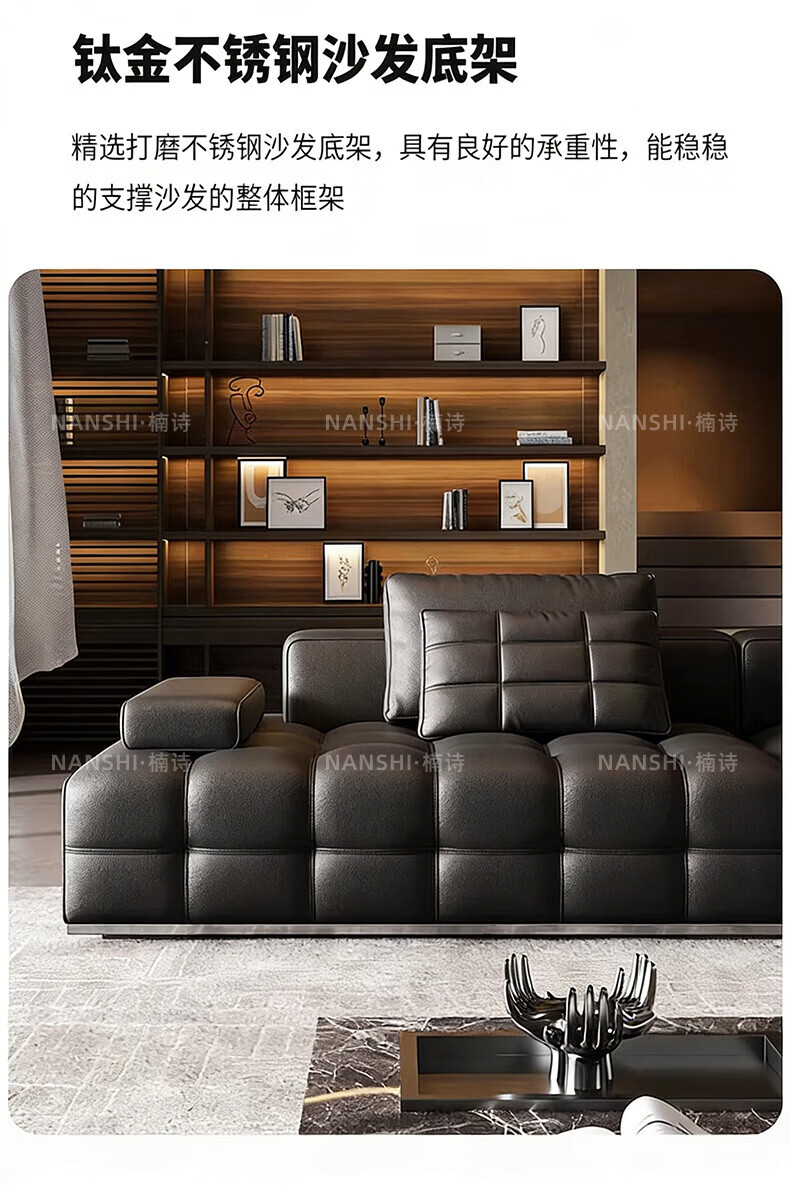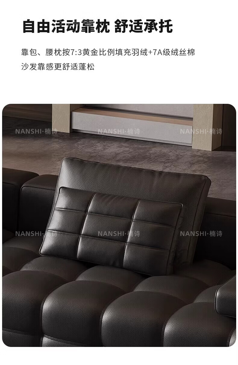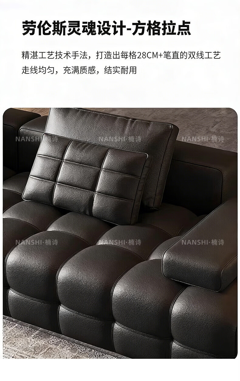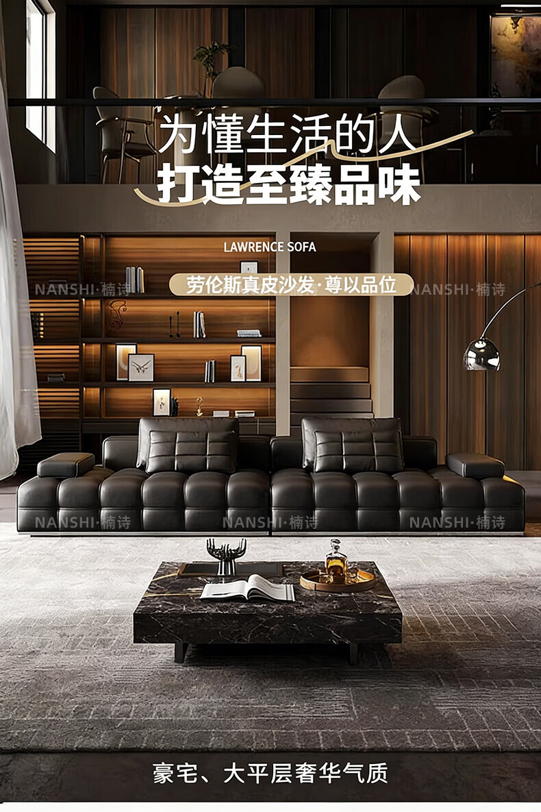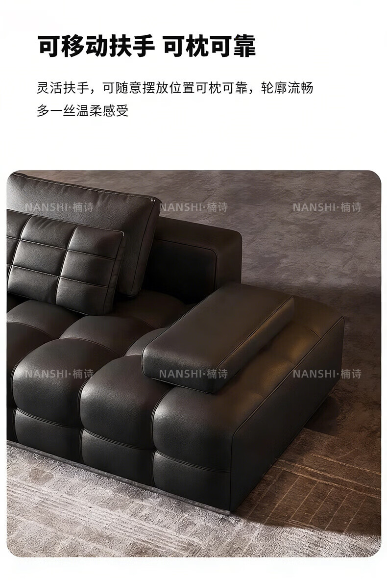 Nanshi home sofa Italian minimalist Lawrence sofa living room small yellow cowhide straight sofa light luxury modern leather art sofa 2.52 meters straight 2.8mm contact surface medium thick green leather extra thick stainless steel bottom frame
