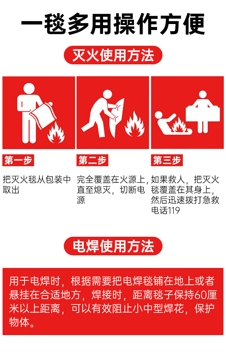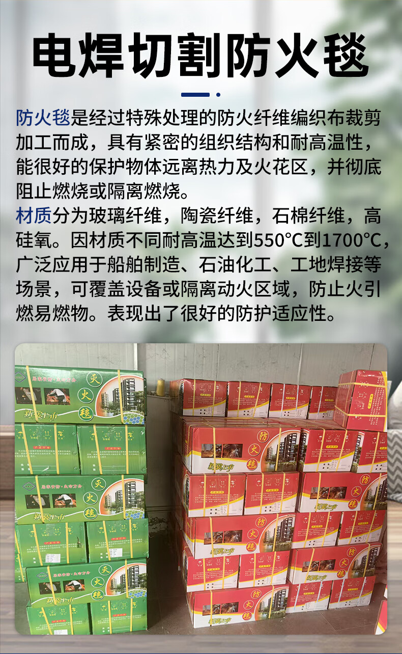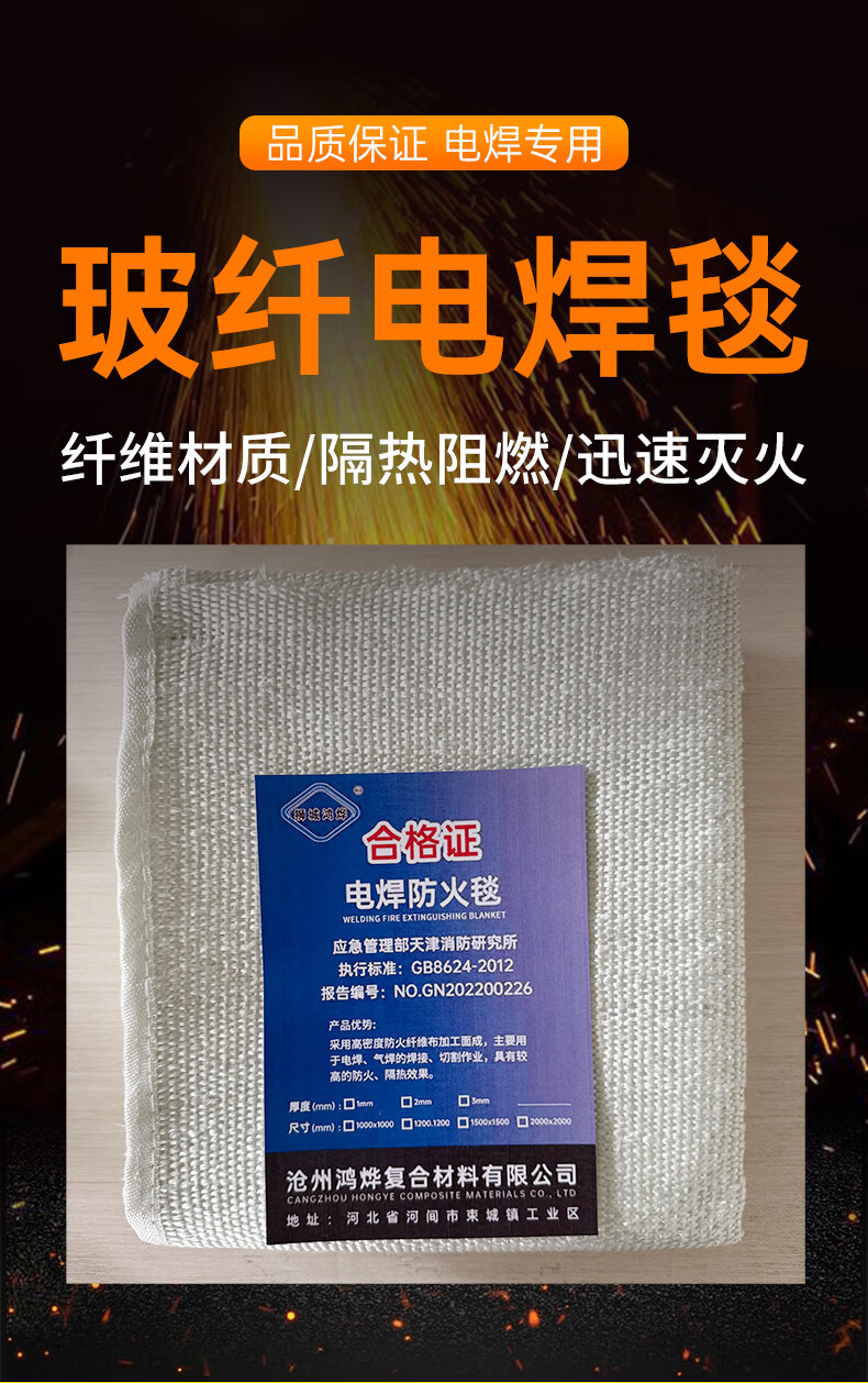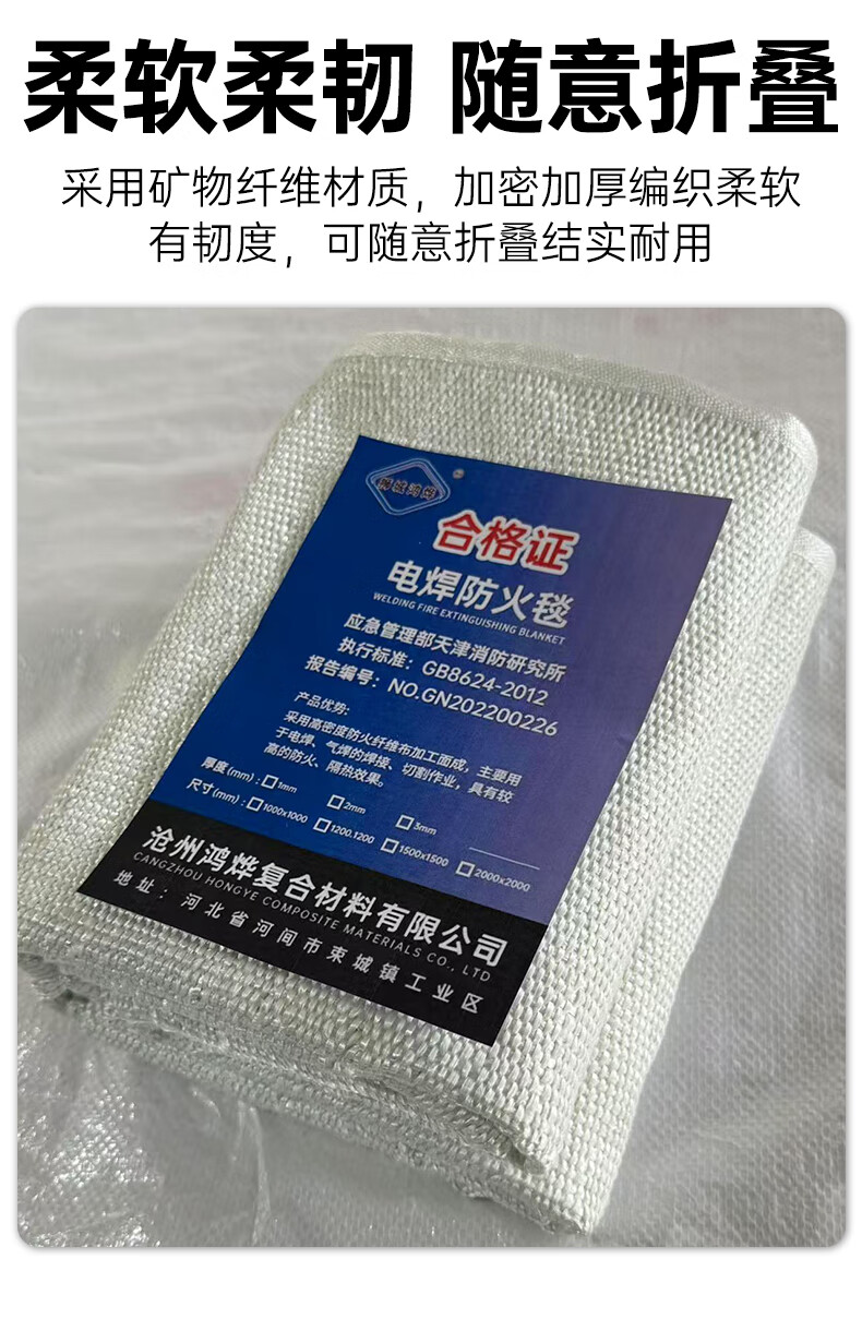 Welding fire blanket kitchen household industrial fire protection blanket thickened high temperature resistant fireproof welding protective blanket 2mm fiberglass fire blanket 1 meter 1 meter