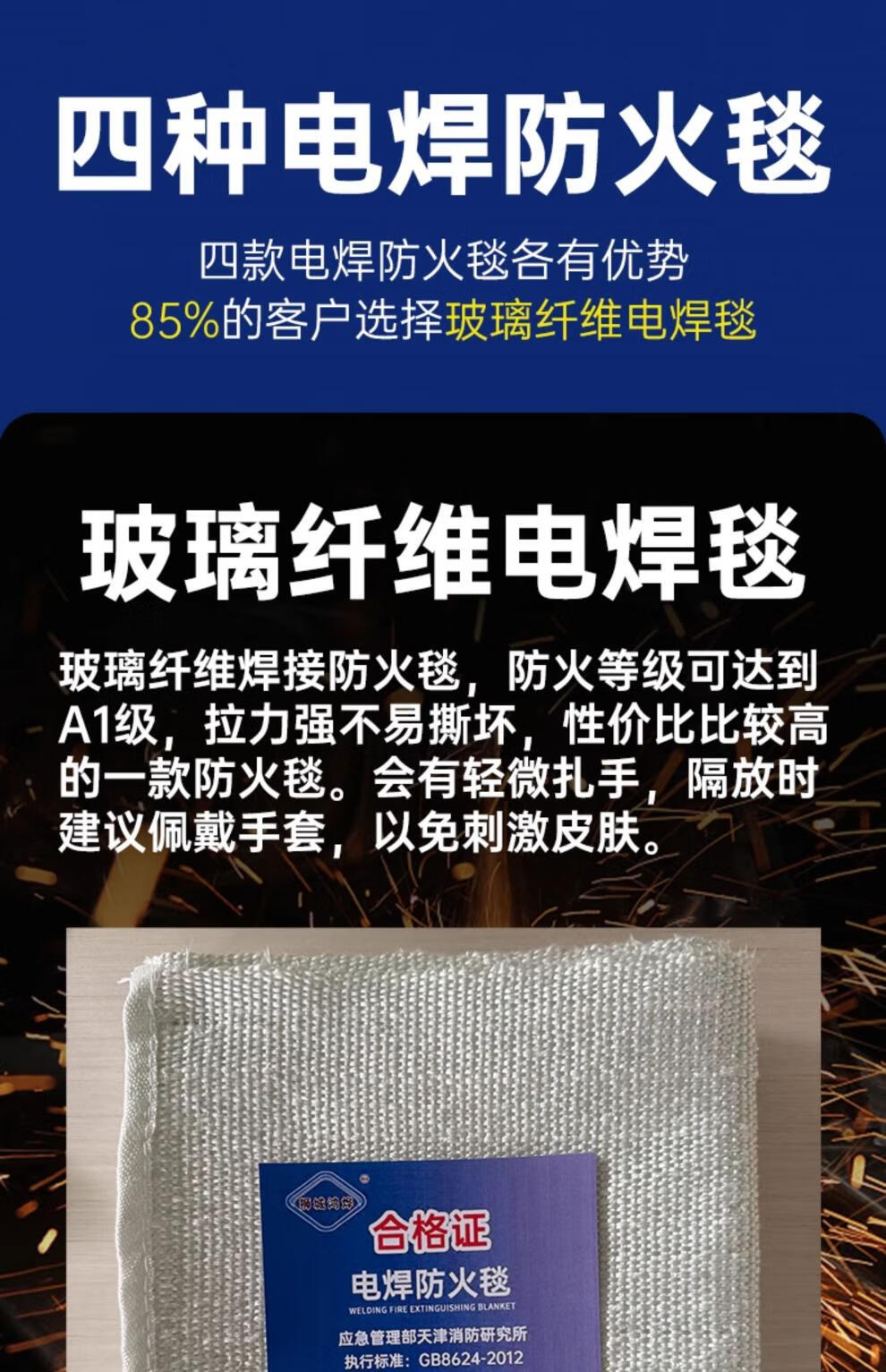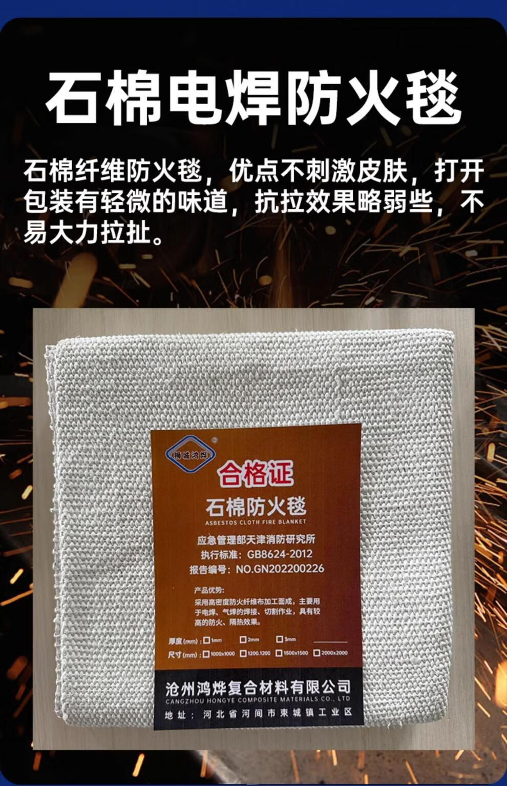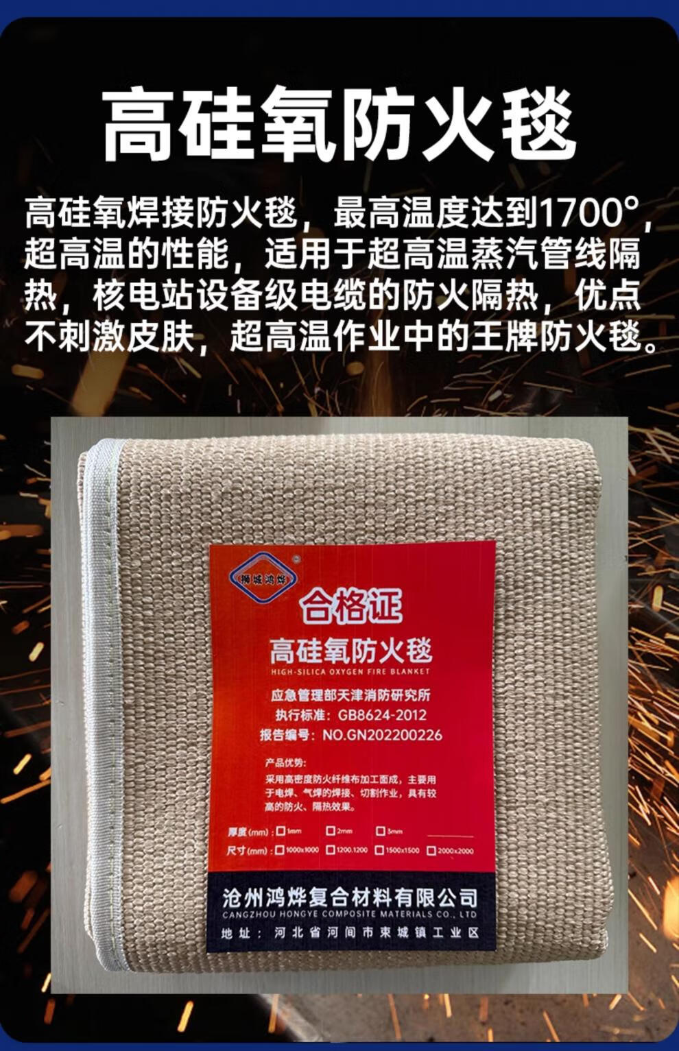 Welding fire blanket kitchen household industrial fire protection blanket thickened high temperature resistant fireproof welding protective blanket 2mm fiberglass fire blanket 1 meter 1 meter