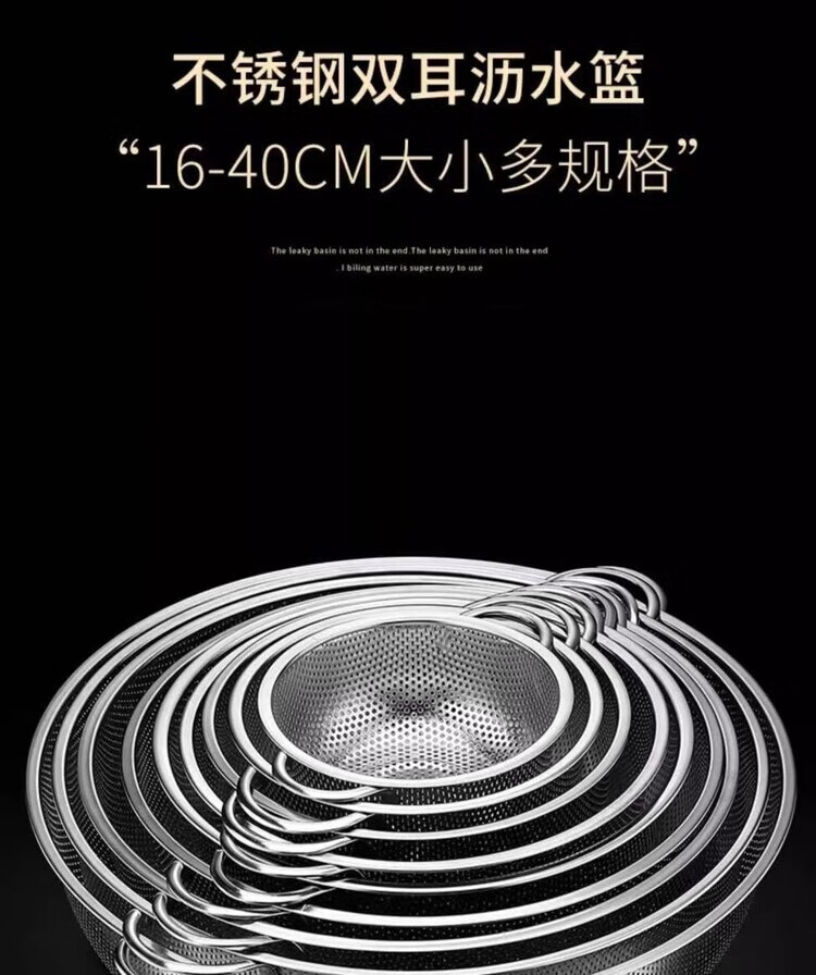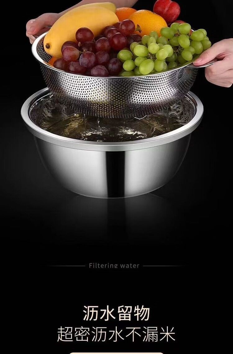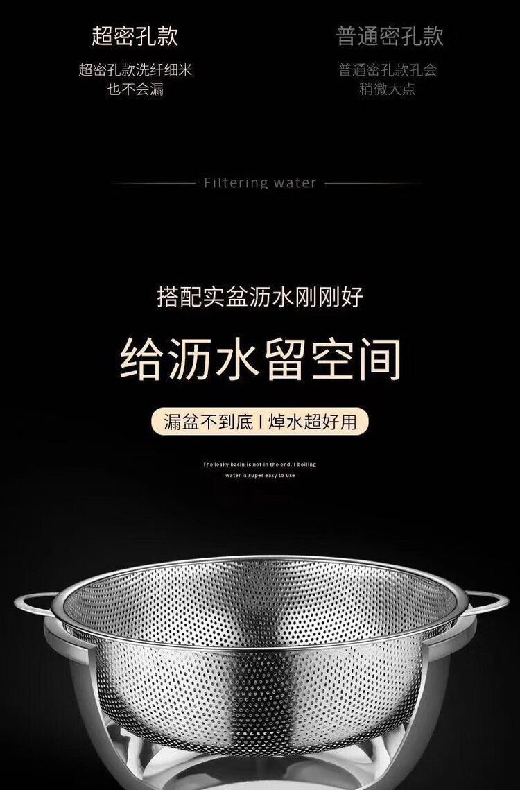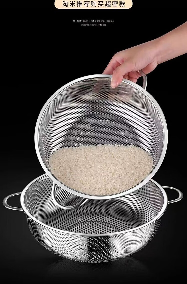 Yi left and right stainless steel rice drain basket dishwashing basin stainless steel fruit washing basket living room household basket combination 28 points 5 pairs of ear baskets + 30 solid basins
