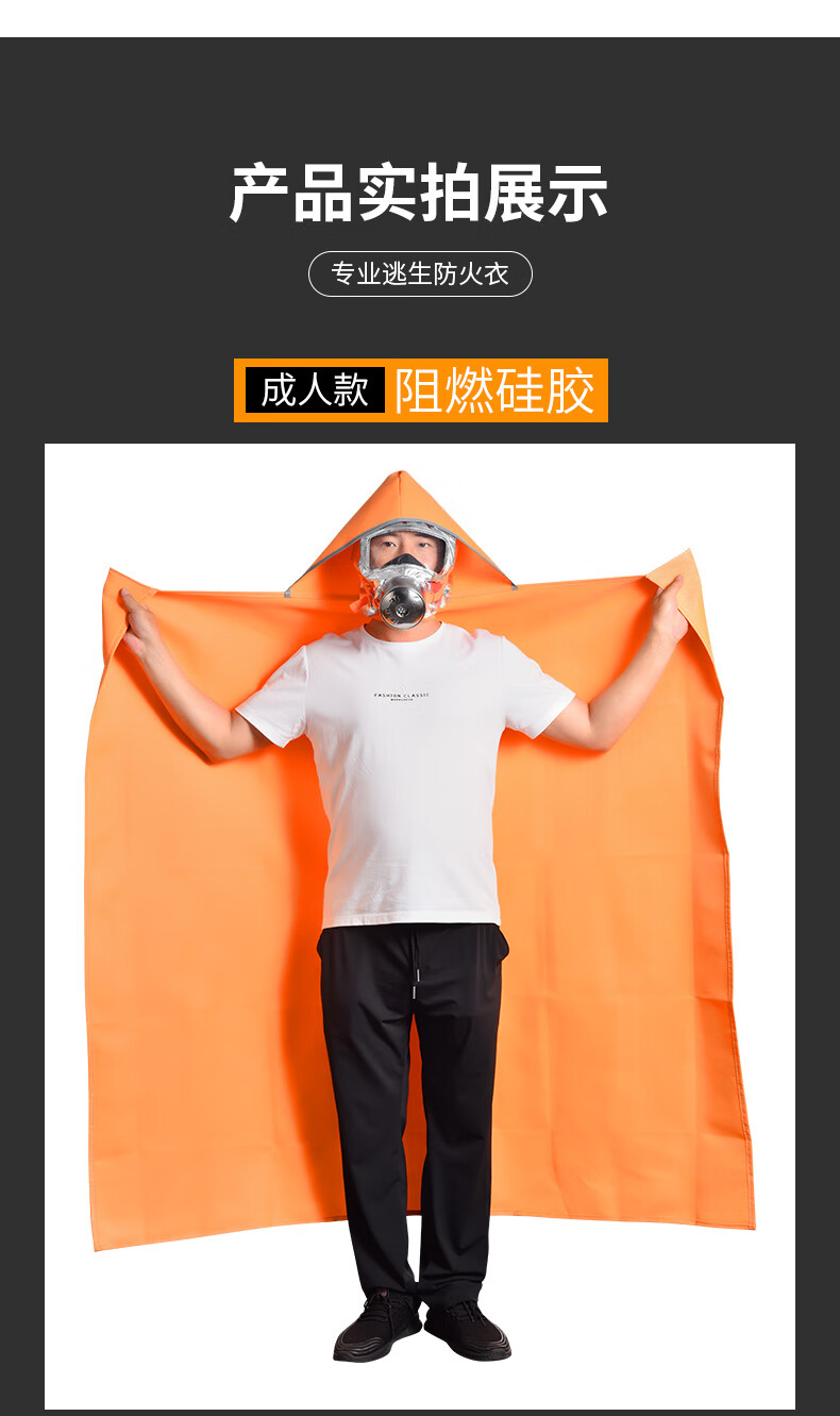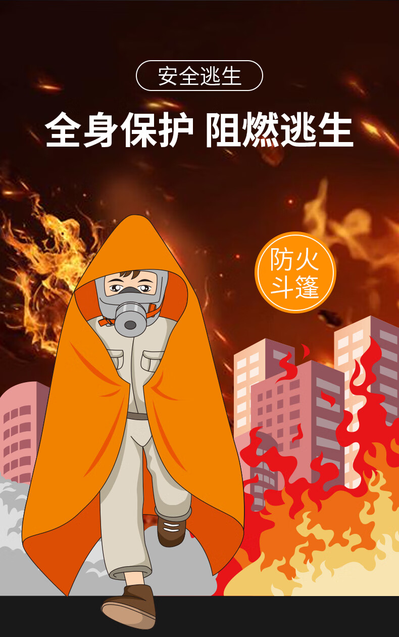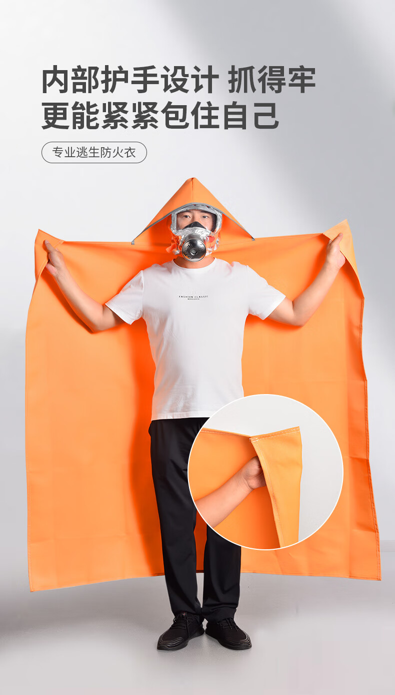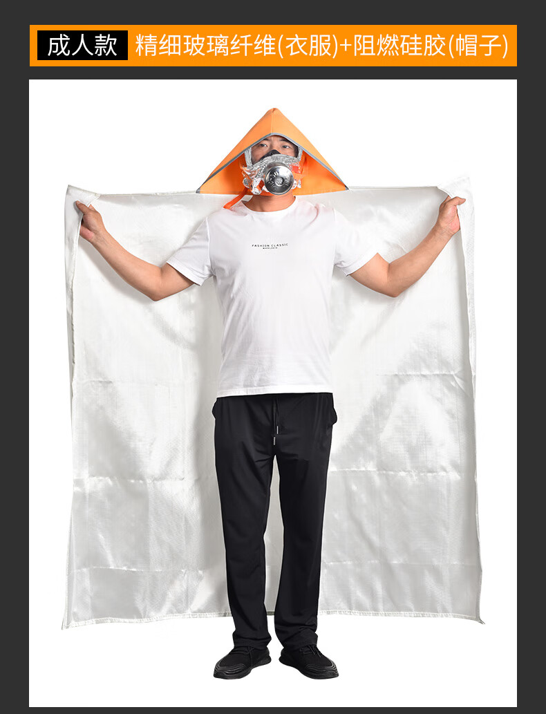 Fireproof cloak fire escape high-rise household self-rescue fireproof clothing high temperature resistant flame retardant fire blanket fireproof cloak adult silicone fireproof clothing fire escape cloak 1.2m 1.6m