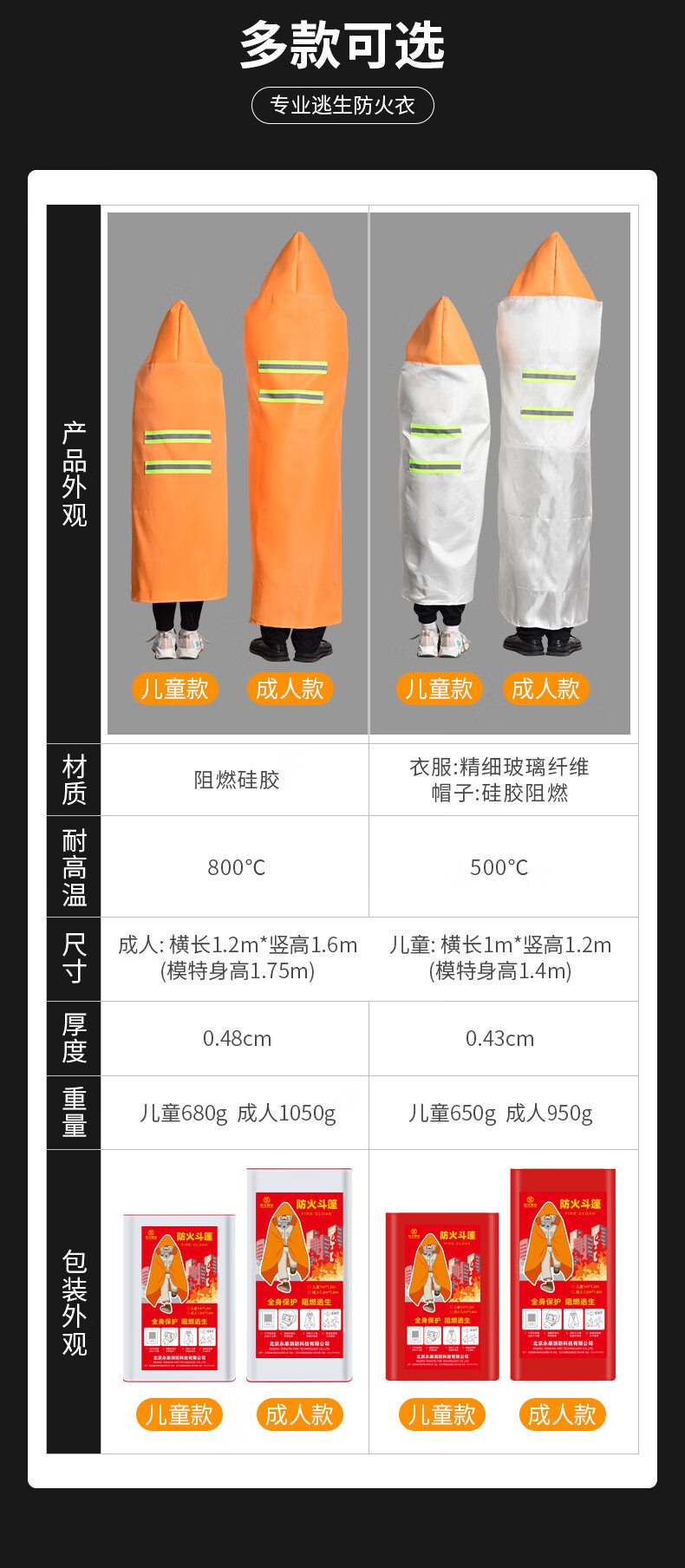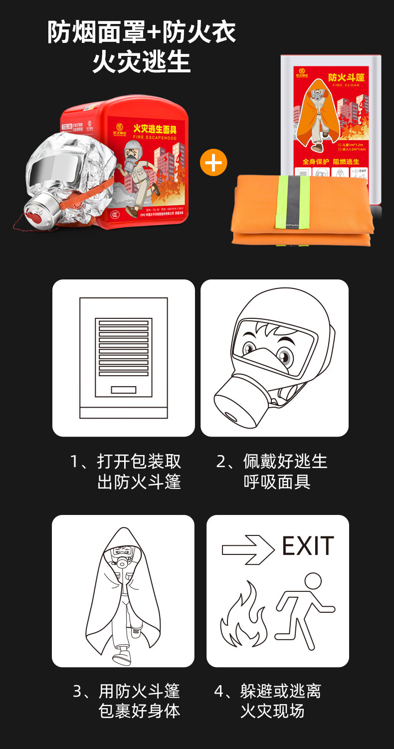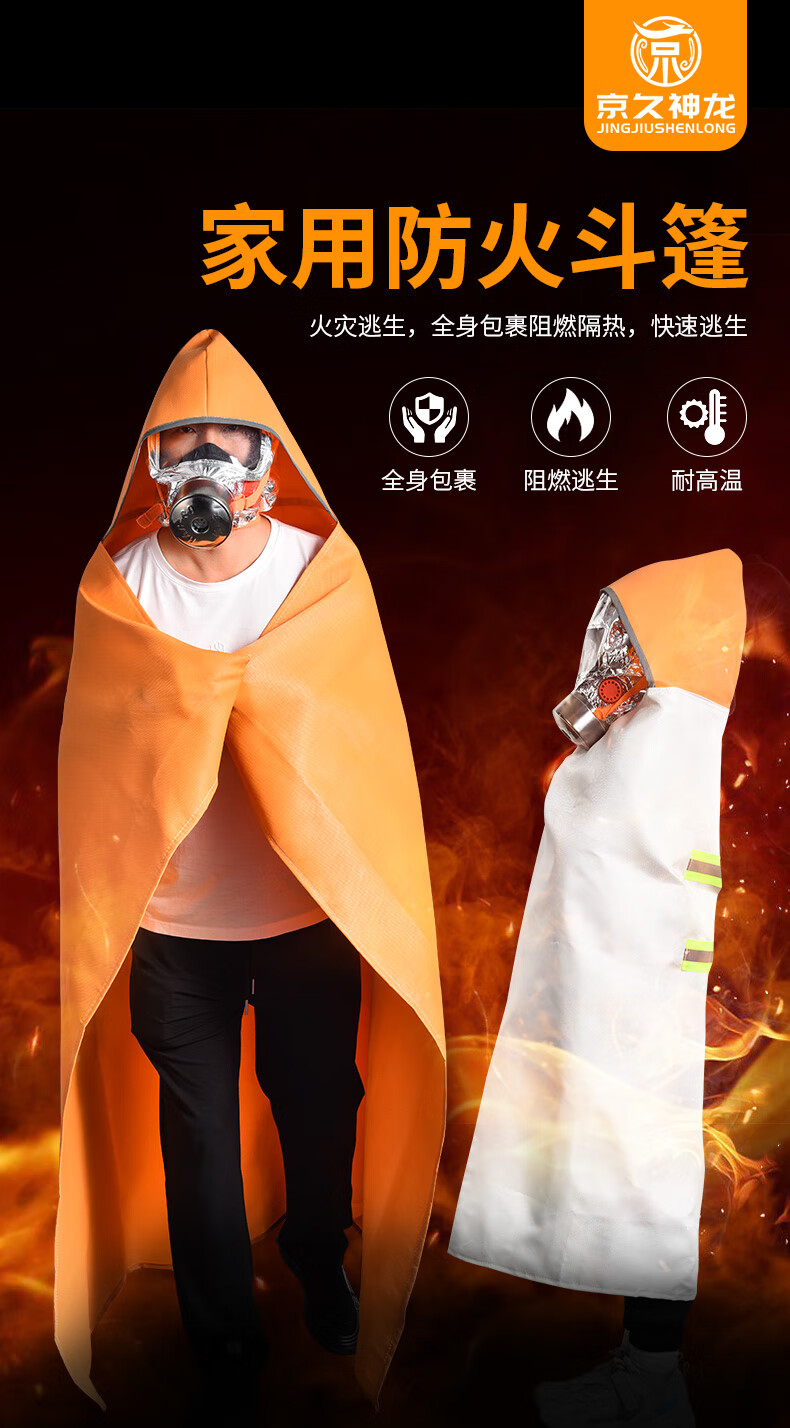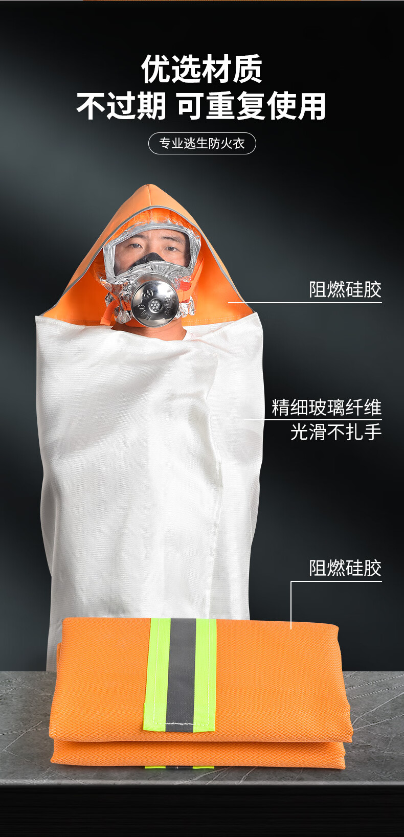 Fireproof cloak fire escape high-rise household self-rescue fireproof clothing high temperature resistant flame retardant fire blanket fireproof cloak adult silicone fireproof clothing fire escape cloak 1.2m 1.6m