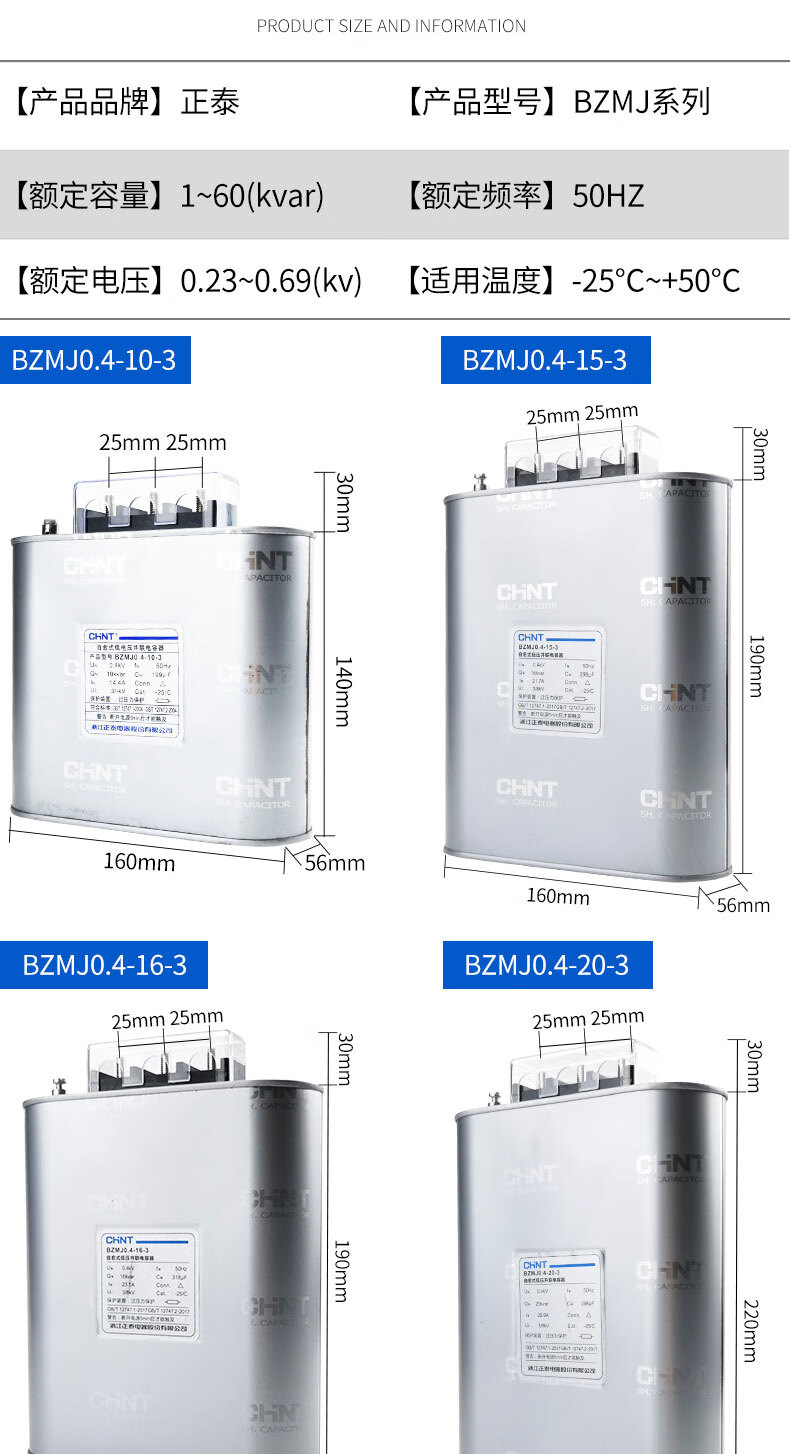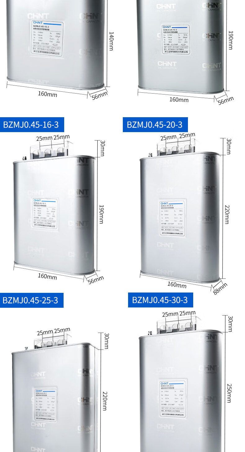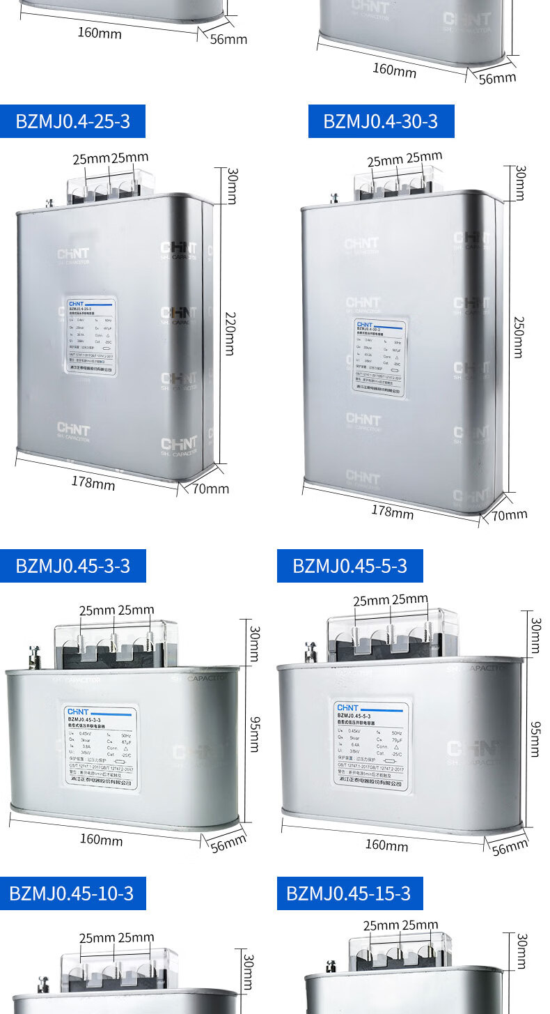 Chint Capacitor BZMJ0.45 0.4 self-healing low-voltage parallel power capacitor 450vBSMJ15 20 30 BZMJ0.45-3-3